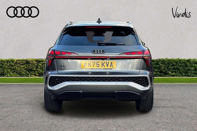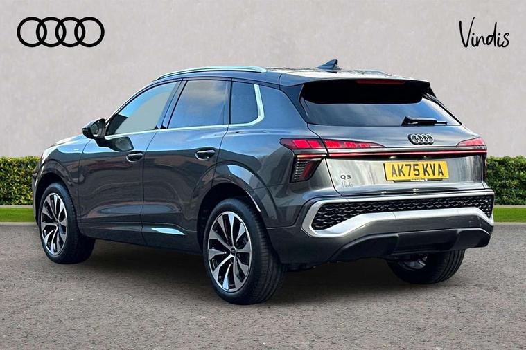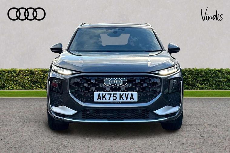 Adaptive cruise control, Audi connect emergency call and service, Audi connect remote and controls, Audi drive select (Balanced/Individual, effeciency, comfort and dynamic), Audi virtual cockpit plus - 11.9" display, Bluetooth interface, Camera based traffic sign recognition, Driver attention and fatigue monitor with driver monitoring, Front cross traffic assist, Lane departure warning with emergency assist, Panoramic curved display with 12.8" MMI navigation plus and MMI touch, Park assist plus with parking system and 360 display, Phonebox light with wireless charging, Reversing camera, Smartphone interface includes wireless Apple carplay/Android Auto, Start/stop system, Swerve assist and turn assist, Traffic sign based speed limiter, Voice control system with natural language interaction, Comfort suspension, Petrol Particulate Filter, 2 USB-C ports with charge and data functions, Audi sound system with 10 loudspeakers, subwoofer, 8 channel amplifier with 260 watts, DAB digital radio module, Acoustic glass for front door windows, Acoustic windscreen, Aluminium roof rails, Aluminium window trim, Audi Q3 lettering on the B-pillars, Auto dimming door mirrors, Auto dimming rear view mirror, Body colour door mirrors, Contrasting finish in volcano grey, Electrically folding, adjustable and heated door mirrors with integrated LED side indicators and kerb view function for passenger side, Full paint finish, Illuminated door sills with aluminium inserts at the front with S logo, LED daytime running lights, LED headlights plus with LED rear lights pro with continous light strip, illuminated Audi rings, rear, LED third brake light, Loading sill protector in stainless steel, Main beam assist, Privacy glass - dark tinted rear window, rear door and side windows, Projection light in the exterior mirrors - Projects a graphic element onto the ground, Q3 badging on the rear, Rain and light sensors, Rear side wing doors, Rear window, rear door windows and rear side windows in clear glass, Rear wiper, Sports bumpers, 3 seat bench in 2nd row, 3 spoke flat top and bottomed leather multi function sport steering wheel with gear shift paddles and "S" badging, 3-zone deluxe automatic air conditioning, 4 way lumbar support for the front seats - electric with horizontal and vertical adjustment in four directions, Black cloth headlining, Front and rear floor mats, Front and rear headrests, Front centre armrest, Heated front seats, Height and reach adjustable steering wheel, Interior storage compartment, Leather/artificial leather upholstery combination with S emblem + front sports seats, Luggage compartment lid, electrically opening and closing, Manual front seats with height adjustment, Rear seat bench plus with split folded 40:20:40, Single front passenger seat, Stainless steel pedals, Steering wheel operating unit, gloss black, Storage compartment in front centre console, Ambient lighting package pro - Q3, S line exterior styling pack - Q3, 3x3 point rear seatbelts, Convenience key with safelock, Driver and front passenger airbag with passenger airbag deactivation, Electromechanical parking brake, Electronic stabilisation control including ABS, ASR and EDL, First aid kit with warning triangle and high visibility vests, Front emergency brake assist, Hill hold assist, i - Size child seat mounting on the front passenger side and i - Size and top tether on the outer rear seats, Power operated child locks, Seatbelt monitoring, Three point automatic belts with belt tensioner and height adjustment, Tyre pressure loss indicator, Anti theft wheel bolts, Remote central locking, Thatcham approved category 1 anti theft alarm, Dark aluminium divergence inlay, Interior elements in dinamica microfibre, Interior trims in aluminium look, Tool kit and Jack,
