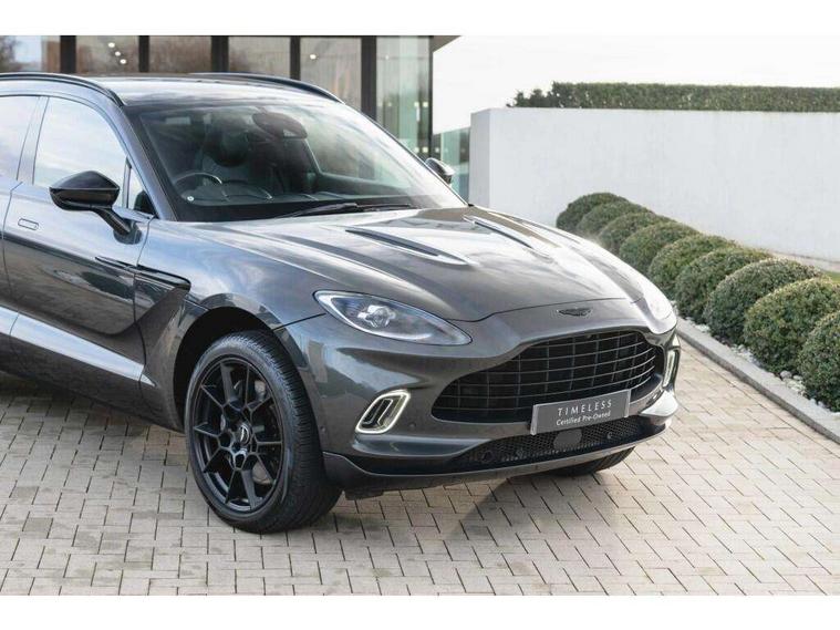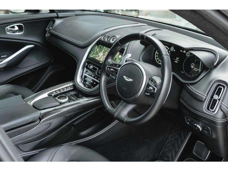 10.25" TFT centre display, 12.3" TFT instrument display, Adaptive cruise control, Adaptive drive modes, Apple car play/Android Auto, Blind spot monitoring, Bluetooth telephone connectivity, Brake pad wear indicator, Electric power assisted steering (EPAS), Forward collision warning, Front parking aid with visual indicator, Lane change warning, Lane departure warning system (LDW), Lane keep assist, Outside temperature display, Park assist system, Rear crossing traffic warning, Rear parking aid with visual indicator, Rotary dials, Rotary infotainment system interface, Satellite navigation system, SOS emergency call button, Speed limiter, Standard underbonnet, Stop/start system, Surround camera system with deploying rear camera, Traffic sign recognition, Voice control system, 9 speed automatic transmission, Active centre transfer case, Adaptive triple chamber air suspension, All Wheel Drive (AWD), Battery conditioning connector, Electric active roll control, Electric limited slip rear differential, Electronic adaptive damping system, AM/FM radio, Aston martin premium audio, Bluetooth audio streaming, DAB Digital radio, SD card slot, USB port, Acoustic laminated front windows, Active rear brake lights, Approach Illumination, Auto dimming interior rear view mirror, Automatic headlights, Automatic high beam - AHB, Bi LED headlights, Body colour mirror caps, Body colour side vent, Electric windows, Fixed panoramic glass sunroof, Heat insulating glass, Heated rear window, LED centre high mounted stop light, LED daytime running lights, LED rear fog light, Matte black mesh bonnet vents, Power foldback door mirrors, Rain sensing windscreen wipers, Standard paint protection film, 12V power sockets, 40:20:40 split folding rear seats, Ambient lighting, Anodised aluminium sill plaques with aston martin wings, Automatic climate control, Black loadspace carpet, Courtesy Light, Embossed - Aston martin wings, Front and rear door pockets, Front centre console storage cover, Front head restraints, Glovebox with electric locking, Heated seats, Isofix/I size rear outer, Load rails in load space, Load tie downs in load space, Lower front console storage, Map pocket on front seat storage, Rear head restraints, Sports plus seats, Stainless steel sill protector in load space, Twin cupholders in front and rear, Twin front centre armrest, Twin sunvisors with illuminated vanity mirrors, 3x3 point rear seatbelts, Airbags - Driver and front passenger and knee, Anti theft locking wheel bolts, Anti-lock braking system (ABS), Autonomous emergency braking, Door exit warning, Electric parking brake (EPB), Emergency brake assist, ESC (Electronic Stability Control), Front thorax airbags/Side curtain airbags, HDC - Hill descent control, High performance braking system, Hill start assist, Intelligent wet brake control, Rear thorax airbags, RSC - Roll stability control, Seatbelt pre-tensioners, Seatbelt status indicator, Torque vectoring brake, Traction control, Tyre pressure monitoring system, Warning triangle, Alarm/immobiliser, Keyless entry with start/stop button, Remote central locking, Seat perforaton elegant, Seat quilting elegant,