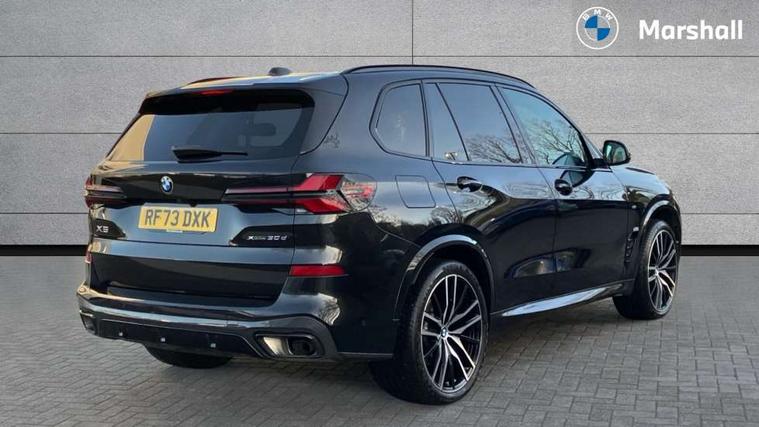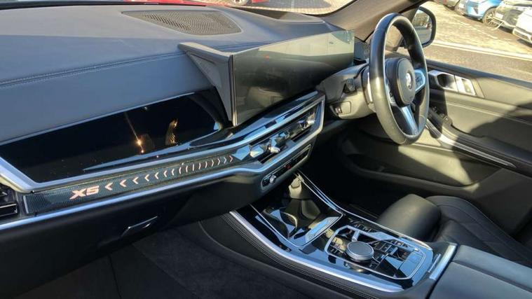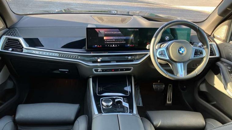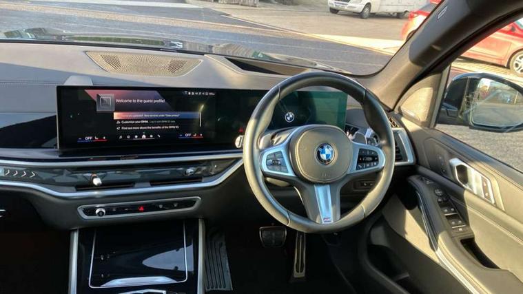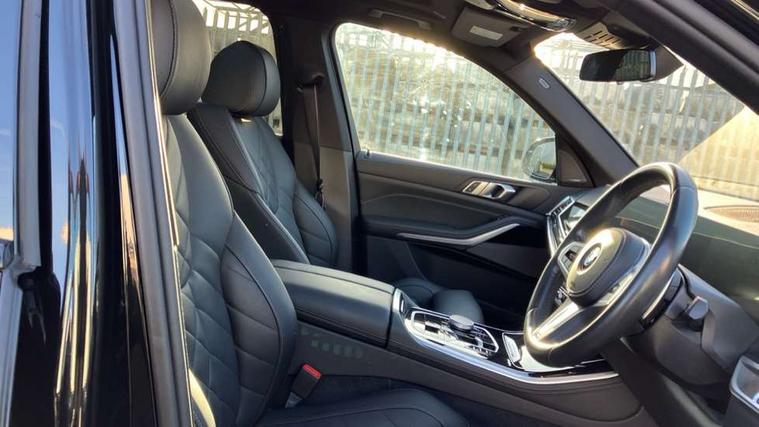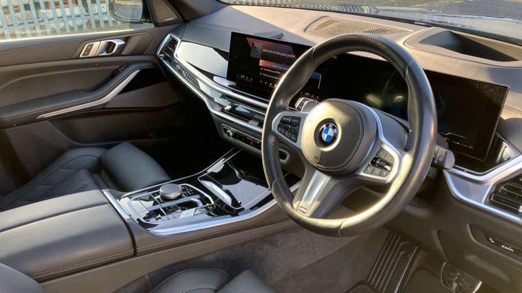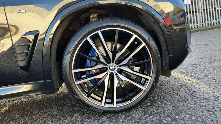 Attentiveness assist, Automatic tailgate operation, BMW ConnectedDrive online services, BMW live cockpit + with curved 12.3 instrument cluster/14.9 central display, nav/Tuner with diversity reception, RDS/4GLTE/remote software upgrade, BMW Recovery system, BMW Teleservices, Condition based service, Cruise control with brake assist, eCall emergency call system, Enhanced bluetooth with wireless charging, Integrated owner's handbook, PAS, Speed limiter, Wi-Fi hotspot, Drive performance control with ECO PRO comfort + sport mode, Eight speed steptronic sport automatic transmission and gearshift paddles on the steering wheel, Hi-Fi loudspeaker system, Adaptive LED Headlights, Front and rear electric windows, High beam assistant, High gloss black shadow line roof rails, LED daytime running lights, Rear side wing doors, Third brake light in rear spoiler, Variable intermittent rear wash/wipe, 12V - Power sockets with 2x centre console and 1x luggage compartment, 3 seat bench in 2nd row, Foldable rear centre armrest with 2 cupholders and storage compartment, Front and rear side armrest integrated into door trim, Headrests for all seats, Luggage compartment separating net, Single front passenger seat, Three spoke sport M leather steering wheel, Velour floormats, Ambient light interior pack - X5, Driving assistant pack with radar based driver assistance system - X5, Expanded exterior mirror pack - X5/X5 M, M aerodynamics pack - X5, 3 rear seatbelts, Active protection, Airbags - driver/front passenger, rear and side, first and second row seats head airbags, front passenger seat airbag deactivation + knee airbag, Anti-lock braking system (ABS), Automatic Stability Control (ASC), Brake energy regeneration, Cornering brake control (CBC), Crash sensor activating central locking release, hazard warning lights, fuel cut off, interior lighting + activation of safety battery terminal clamp, DSC - Dynamic Stability Control, Dynamic Traction Control - DTC, Electromechanical parking brake with automatic drive away release and auto hold function, Electronic brake force distribution, Hill start assistant, M Sport blue painted brake calipers with 'M' designation, Mechanical child proof lock on rear doors, Tyre pressure monitoring system, Tyre pressure sensors, Ventilated front and rear disc brakes, Warning triangle and first aid kit, Closing system with central locking, Comfort access system, Locking wheel bolts, Sensatec instrument panel,