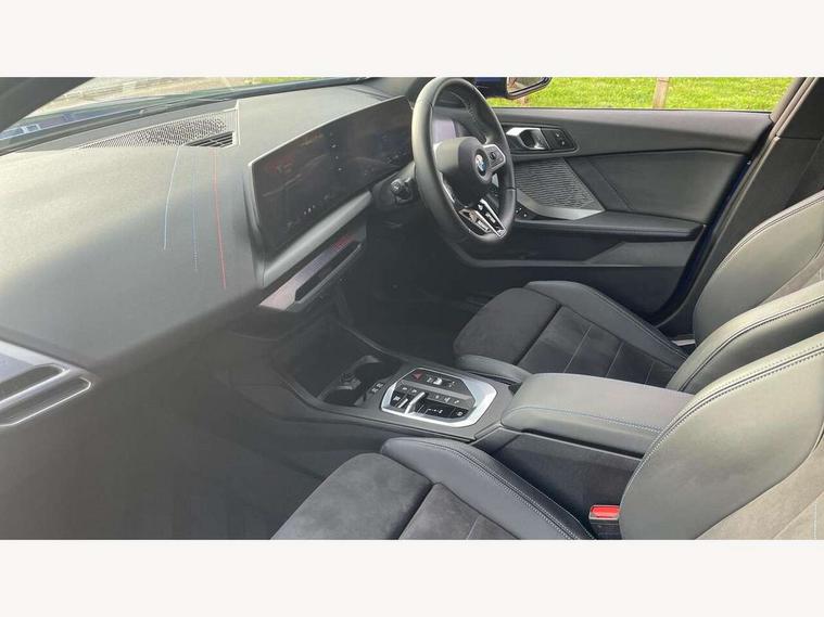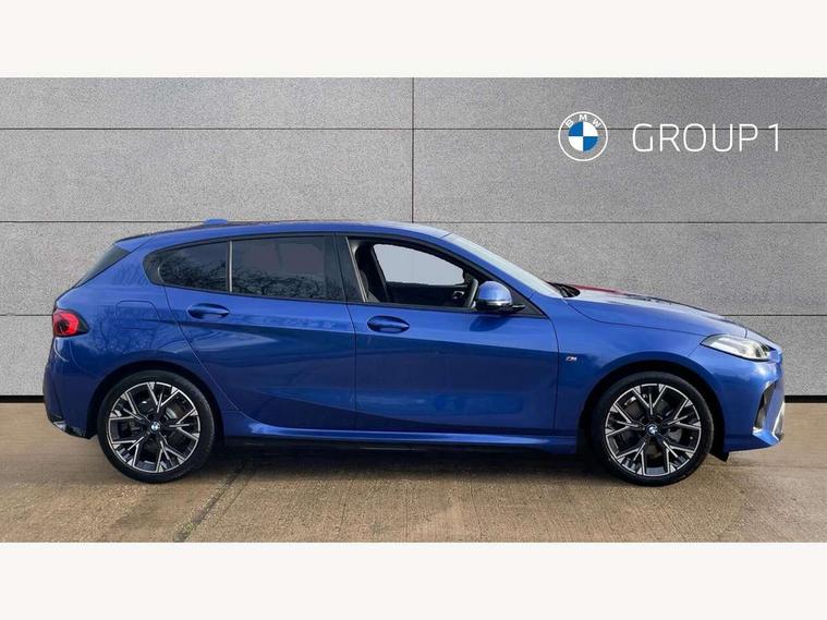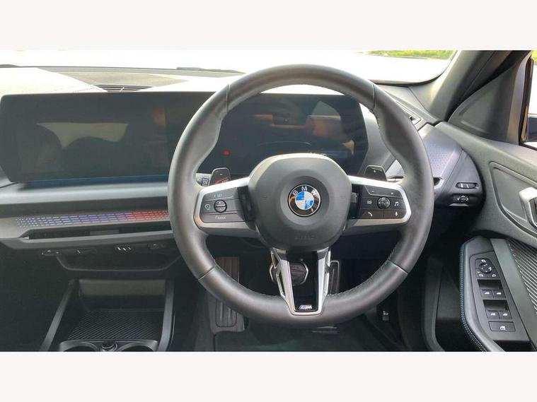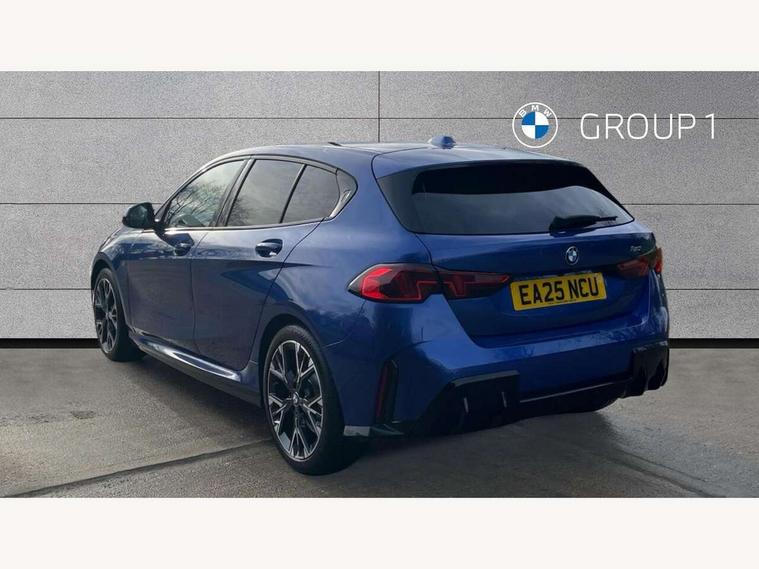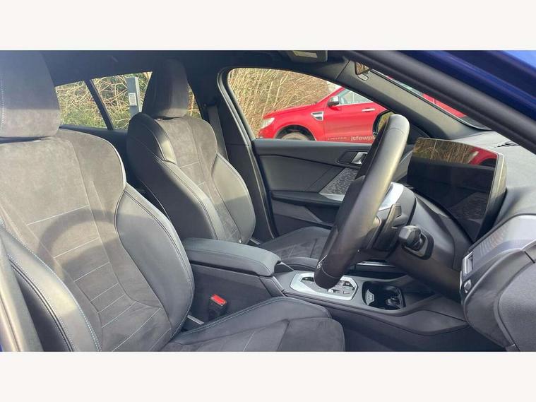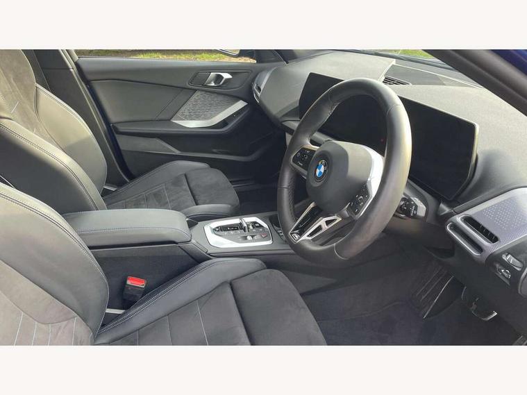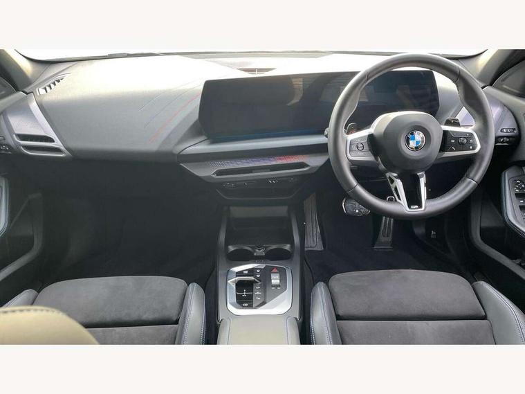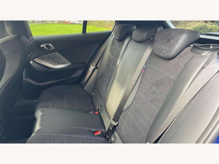 Active guard plus, Attentiveness assist, Bluetooth / WiFi interface for wireless connection of mobile terminal devices and audio streaming, BMW ConnectedDrive online services, BMW Live cockpit plus, BMW Teleservices, Check Control warning system for monitoring of lights and door/luggage compartment open warning, Eco pro mode, Electric power steering with Servotronic steering optimised at all speed ranges, Evasion assistant, Flat airvents in instrument panel with adjustable slats, Front and rear parking sensors, Front axle single joint with specific axle kinematics to minimise drive influences on steering + provide increased rigidity agile driving behaviour, Gearshift time display in manual mode, Integrated owners handbook, Left turn warning with brake function, My modes (Personal / Efficient / Sport), Oil sensor for level and grade, On board computer, Optimum shift indicator, Park assist including reversing assistant, lateral parking aid and reversing assist camera, Personal e-SIM, Personal Profile, Pull away assistant, Rigidly mounted rear subframe - Multi link construction with separate spring / damper configuration and excellent driving characteristics, Speed limit Info including no-overtaking indicator, Speed limiter, 49 litre fuel tank, Aluminium lightweight construction, Anti roll bar front and rear, Balancer shaft, Double VANOS twin scroll turbocharging system, Drive Performance Control, Electronic differential lock, Electronic selector lever, High precision injection, M Adaptive suspension, Petrol Particulate Filter, Steptronic transmission with double clutch, Twin tube gas filled shock absorbers with degressive characteristic curve, VALVETRONIC engine management, DAB Digital radio, Auto dimming rear view mirror, Automatic windscreen wipers and automatic headlight, Body colour door handles, Body colour mirror caps, Body colour roof trims, Chrome 'M' logo side designation, Chrome exhaust twin tailpipes round 90mm in left, Chrome kidney grille frame with Satin Aluminium struts, Direction indicator side lights in exterior mirrors, Electrically adjustable exterior mirror with mirror adjustment switch on drivers armrest and aspheric on driver side, convex on passenger side, Exterior M sport design elements, Fading support, Folding side mirrors with auto dimming/folding wing mirrors with auto dimming, Follow me home headlights, Front and rear bumper system with replaceable deformation elements, Front and rear electric windows with open and close fingertip control, anti trap facility and comfort closing, Front bumper panel with M specific design in vehicle colour with inserts in black high gloss, Front door sill finishers in black plastic with M designation in metallic look, Green tinted heat protection glazing, Heated rear window, High gloss black exterior mirrors, High gloss shadowline window frame, Recess cover mirror frames and B/C pillar embelisher trim, High level third brake light, Integrated front windscreen with washer jets, LED daytime running lights, LED eyebrow turn indicators, LED front fog lights, LED Headlights, Lightweight engineering, M identification on the sides, Matt black air guide grilles, Matt black wheel arch trim, Model badge on tailgate right, Nearside reverse light in rear light cluster, Preparation for high beam assistant, Rain sensor, Rear bumper panel with M-specific design in vehicle colour with inserts in black high gloss, Rear fog lights, Rear side wing doors, Rear window wiper, Shark fin antenna, Side sill covers with M specific design in body colour, Trailer stabilisation logic, Visible VIN plate, Welcome lighting, 12V power socket in front centre console with blanking plug, 3 rear seat head restraints, 3 seat bench in 2nd row, 3 spoke sports leather steering wheel with black leather and stitching, pearl chrome decorative finish, specific M Badge, Anthracite front and rear floor mats, Anthracite headlining, Black boot net with lashing eyes, Cargo function on 2nd seat row, Child seat ISOFIX attachment for two outer rear seats and front passenger seat with anchorage points, Conditioned based service, Driver and front passenger backrest net on rear, Driver and front passenger seat heating, Driver side folding compartment in instrument panel, Folding rear clothes hook, Footrest and pedals in black plastic, Four grab handles integrated in roof lining, Front and rear door pockets with bottle holders, Front and rear side armrest integrated into door trim, Front armrest with storage compartment, Gearshift paddles on steering wheel, Glove compartment, Height adjustable front head restraints, Luggage compartment for bag hooks on left and right, foldable luggage compartment liner and four lashing eyelets, Manual adjust steering wheel, Multi-function controls for steering wheel, Rear seat backrest with manual 60:40 split folding with 3 top tether clips integrated on rear of seat panels, Single front passenger seat, Storage compartment in centre console, Storage compartment in luggage compartment, Stowage of the parcel shelf in luggage compartment trim, Sun visors with vanity mirrors and insert tab, Two front centre console cupholders, Type C two USB ports in rear centre console, Upper retaining strap integrated into backrest rear panels, Connected pack professional - 1 Series, Interior lights pack - 1 Series, M Sport exterior styling aerodynamics pack - 1 Series, 2 tone horn, 3 point seatbelts on all seats, front pyrotechnic belt tensioners, stopper and belt force limiters, rear coded belt buckles, Airbags - Front driver/passenger, front and rear curtain head protection, front side, manual deactivation of front passenger airbag, Anti lock braking system (ABS) with brake assist, BMW emergency call, Brake drying, Braking readiness, Child proof locking system in rear door, Comfort modes, Cornering brake control, Crash sensor activating of airbags, Unlocking doors, hazard warning lights, interior light, safety battery terminal, Driver and front passenger seat belt sec