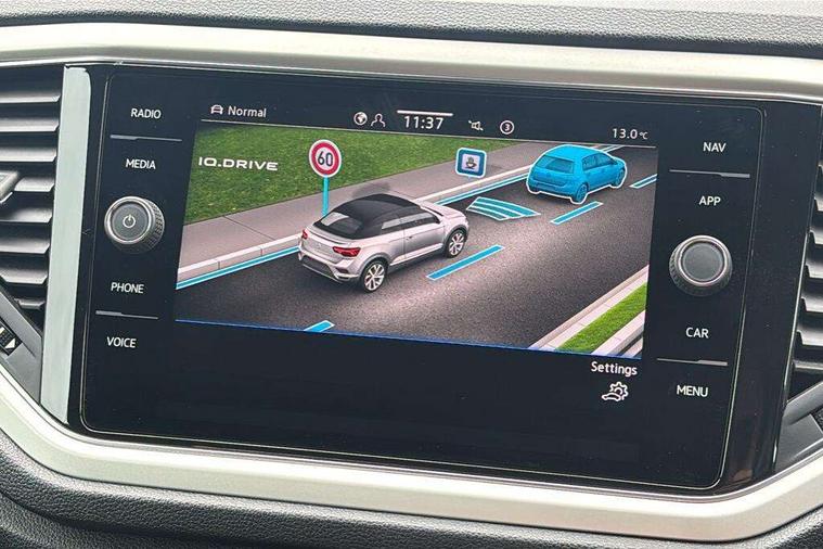 8" colour touch screen, Adaptive cruise control, Bluetooth telephone and audio connection for compatible devices, Brake pad wear indicator, Car information display, Car-Net Security and Service, Driver alert system with fatigue detection, Driver tips and journey analysis, Dynamic road sign display, Emergency call service, Lane assist with warning text instrument cluster, Mobile phone interface, Modified key software - reduce switch off time for key status change to Long no motion, Multifunction computer with visual gear change recommendation for fuel consumption, Navigation system discover media including streaming and internet, Online services, Power assisted speed sensitive steering, Speedo and rev counter, electronic odometer, trip, service interval display, digital clock and fuel gauge, Start/stop system with brake energy recovery, Tailgate/trunk lid release from outside, Warning sound and light for front seatbelts unfastened, Wired and wireless app connect, Bluetooth - Simultaneous pairing of 2 compatible mobile devices, DAB Digital radio, Diversity antenna for FM reception, Music playback - MP3, WMA and AAC files, SMS functionality - read, compose and send SMS messages using touch-screen display, Title and cover art display, USB-C Interface and USB charging socket, WeConnect plus, Auto dimming interior rear view mirror, Automatic coming/leaving home lighting function and daytime running lights, Automatic hazard lights activation under emergency braking, Body colour rear roof spoiler, Body coloured bumpers and radiator grille with chrome trim and front fog lamps with chrome bezel, Body coloured exterior mirror housings and door handles, Chrome effect left and right trapezoid exhaust tailpipe fascia surround, Chrome trim on upper and lower radiator grille, Dusk sensor, Electrically power adjustable, heated, folding, auto dimming, front passenger exterior door mirror lowering function, Front and rear electric windows, Heat insulating glass windscreen, High level 3rd brake light, LED rear number plate lights, LED tail lamp rear comination lamps, Power operated canvas convertible top, Rain sensor, Rear exhaust tailpipe, Rear fog lamp, Volkswagen roundel, Windscreen wiper with intermittent wipe light, 12V socket in centre console storage area, 2 front reading lights, 3 spoke leather wrapped multifunction steering wheel, 50/50 rear seat bench split folding rear seat backrests, Activated charcoal canister for intensified evaporation system, Black door lower parts with chrome trim, Chrome plated surround to light, mirror and window switch, Climate control - 2 zone electronic air conditioning with automatic air recirculation and allergy filter, Entry aid easy entry (Front folding seats), Front + rear carpet mats, Front centre armrest, Front comfort seats with manual height adjustment, Front cupholders x 2, Front seat back storage pockets, Glove Compartment with light, Height/reach adjust steering wheel, Illuminated vanity mirrors in sun visors with air bag label on sun visor and b-pillar, Instrument lighting, white adjustable panel illumination, Interior light delay, Interior light in footwell, Isofix easy fit child seat preparation for 2 outer rear seats, Luggage compartment lighting, Rear head restraints, Standard pedal cluster, Storage compartments in driver and front passenger doors, White ambient lighting, 2 x 3-point rear seatbelts, ABS, Autonomous emergency braking, Driver and front passenger safety-optimised head restraints, Drivers and front passengers airbags with passengers deactivation switch, Drivers seatbelt reminder, Electronic parking brake with auto hold, Electronic stability control (ESC) includes ASR, EDL, EDTC and trailer stabilisation function, Front assist with city emergency braking and pedestrian monitoring, Pedestrian monitoring, Predictive pedestrian protection, Rigid safety cell with front and rear crumple zones, Side airbag/thorax airbag system, for front passengers, Single tone horn, Three point height adjust front seatbelts + pretensioners, Tyre pressure loss indicator, Tyre pressure monitor, Ventilated front and rear disc brakes, Volkswagen roadside assistance, Alarm with interior protection and deactivation via infotainment system, Electronic engine immobiliser, Dashboard unicolour out of hard material including decorative insert 1st line different colours chooseable, Silver silk decorative inserts in dash and front door panels,