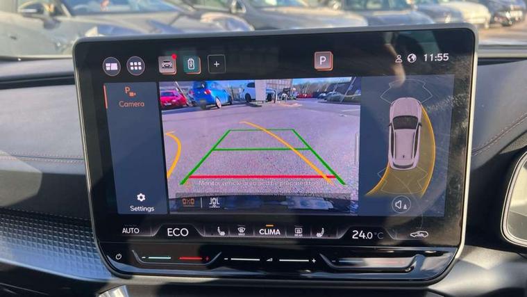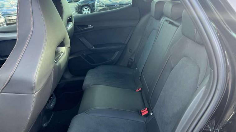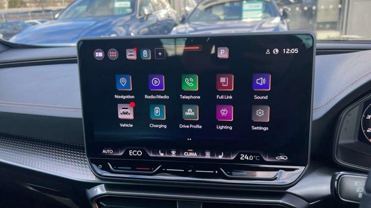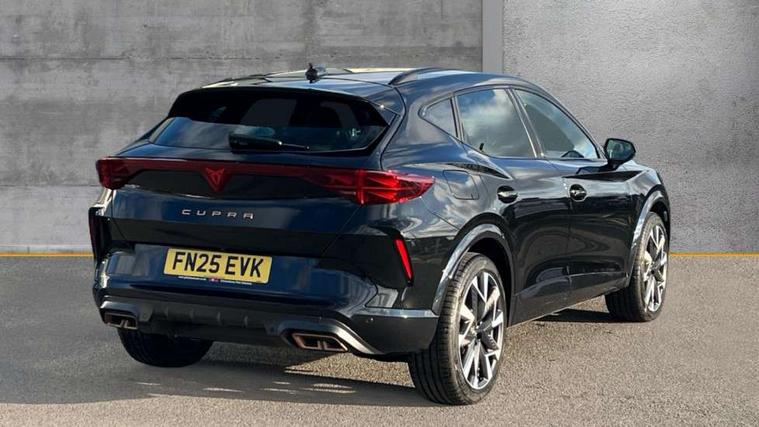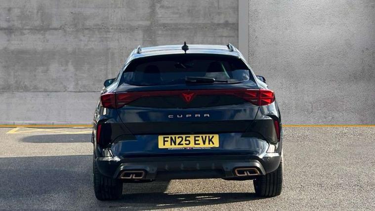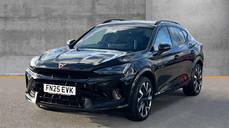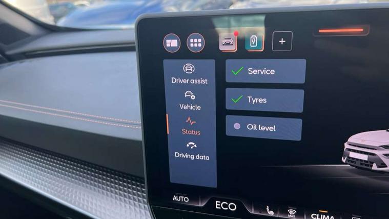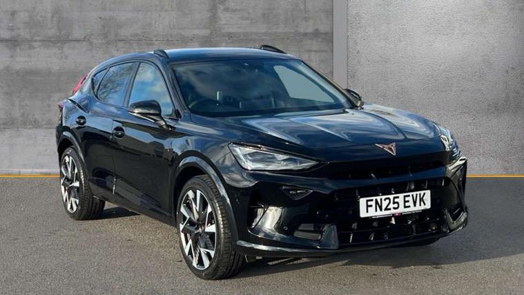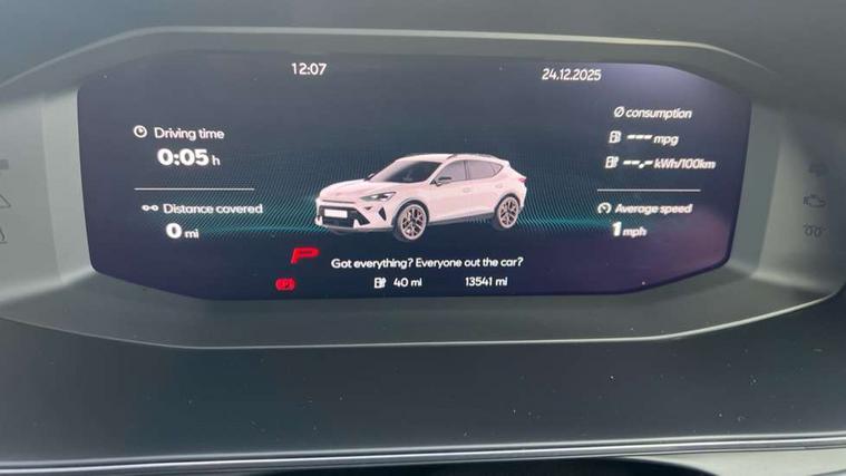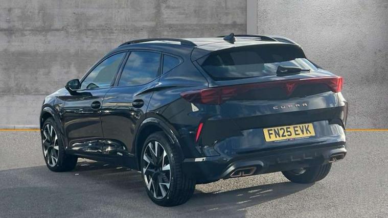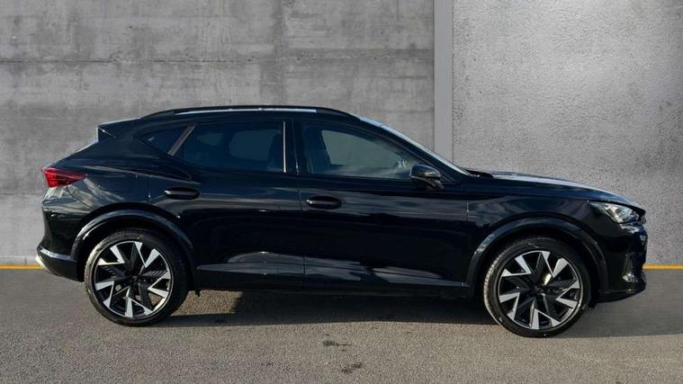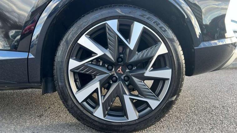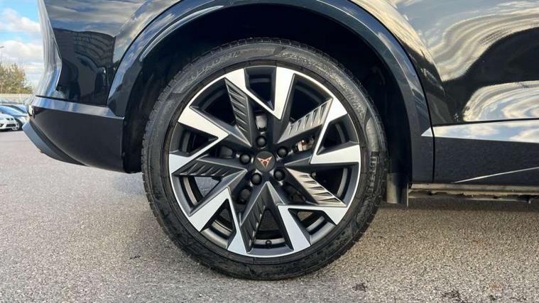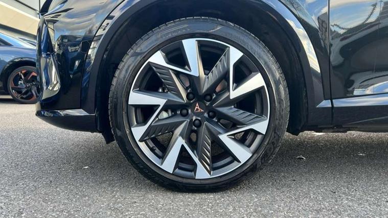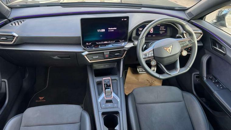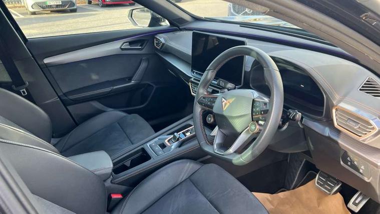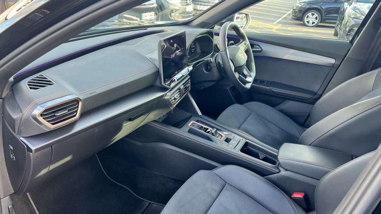 10.25" digital cockpit and configurable dashboard, Adaptive cruise control with follow-to-stop and speed limiter, Advanced driver alert system, Driving profile selection, Dynamic road sign display, Emergency steering support with turn assist, Forward collision warning with automatic braking, Front and rear parking sensors, Full link phone integration, Lane assist, Progressive steering, Rear view camera, RPM, trip computer, outside temp gauge, instrument light brightness, low fuel warning light, lights on reminder, gearshift indicator, Service interval indicator, Start/stop system with regenerative braking, Virtual pedal and electric tailgate, Voice control system, Wired Android Auto, Wireless apple carplay, Wireless phone charger, 10 amp mode 2 charging cable, 32 amp mode 3 charging cable, CUPRA sport suspension, Electronic locking differential and dynamic traction support, 2 front and 2 rear USB type C sockets, Media system with navigation, 12.9" touchscreen display, voice control, DAB, steering wheel mounted controls, Auto dimming rear view mirror, Body colour door handles, Body coloured bumpers, Dark grey wing mirror, Daytime running light with automatic headlight control and coming home feature, Door panel ambient lighting, Dynamic headlight range control, Electric front/rear windows, Electrically adjustable heated and folding door mirrors with memory function, Gloss black roof rails and window surrounds, High beam assist, LED 3rd brake light, LED front fog lamps with cornering function, LED Headlights, LED Taillights with dynamic indicator, Rain sensing wipers, Rear diffuser with copper simulated exhaust pipes, Rear fog lights, Rear side wing doors, Rear wash/wipe, Tinted rear windows, Welcome lights (within exterior mirror housing), 12V socket, 2 front and 2 rear reading lights, 3 seat bench in 2nd row, 60/40 split rear bench seat with armrest and mechanical seat release, Black headlining, Black interior roof lining, Cupra sports pedals, Dust/pollen filter, Electrically adjustable driver's seat with memory and lumbar support, Front and rear head restraints, Front centre armrest, Heated front seats, Heated supersports multifunction leather steering wheel with satellite buttons and gear shift paddles, Height/reach adjust steering wheel, Illuminated aluminium doorsteps, Illuminated interior front door sills, Illuminated sunvisor with mirror, Isofix, Leather dashboard, door insert and side trim panel, LED smart wraparound lighting, PVC/Dinamica microfiber upholstery + bucket seats, Satellite steering wheel, Single front passenger seat, Storage pockets on rear of front seats, Three zone climate control with control panel in rear, 3 point seatbelts on all rear seats, ABS, Brake control system - ESC and brake booster, Child proof door locks, Driver and front passenger airbags with front passenger airbag de-activation, Electronic parking brake, Front and rear disc brakes, Front side curtain airbags, Hill hold control, Public e-call, Seat belt reminder for front and rear seats, Tyre pressure monitoring system, Anti theft alarm system, KESSY Advanced - Keyless start, keyless entry with SAFELOCK, Locking wheel bolts, Copper and aluminium interior detailing, 19" Sandstorm machined sport black and silver alloy wheels, Breakdown and tool kit,