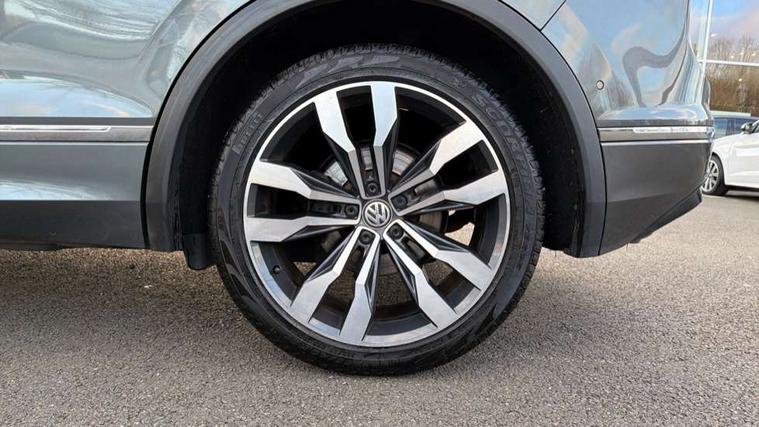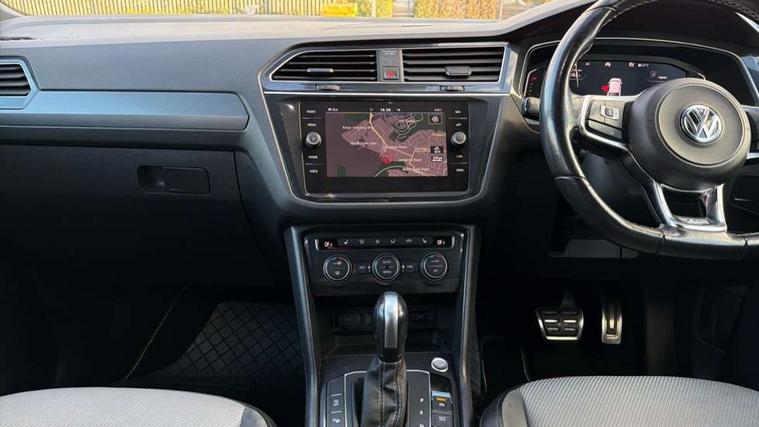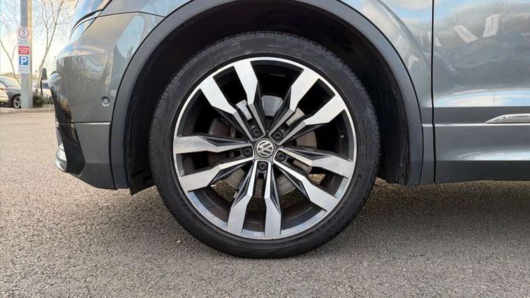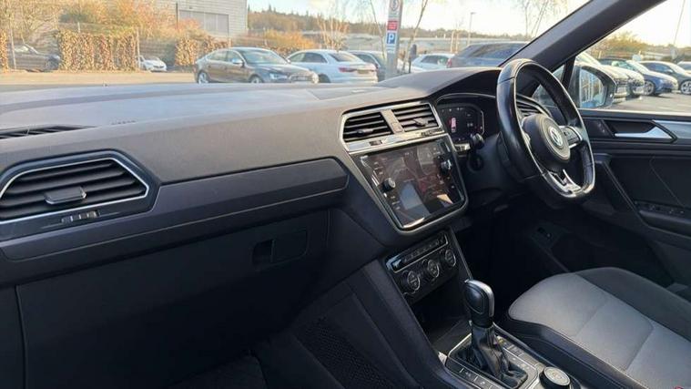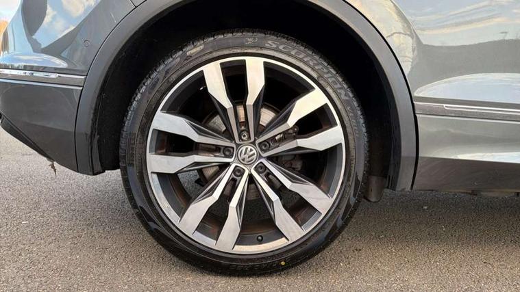 2D/3D map view, Active information display, Adaptive cruise control, App-Connect, Area view with park assist steering and front and rear parking sensors, Bluetooth phone integration system, Car information display, Coasting function, Distance control assist, Drive mode selector, Driver alert system with fatigue detection, Driver profile selection, Front assist, radar sensor controlled distance monitor, city emergency braking + predictive pedestrian protection, Fully electric tailgate + keyless entry and start, Instrument cluster, Lane assist, Lights on warning, Multifunction computer with visual gear change recommendation for fuel consumption, Outside temperature display, Progressive power assisted steering, Service interval indicator, Speed limiter, Start/Stop function, Warning sound and light for doors and tailgate open, Battery regeneration during braking, Diesel particulate filter, Misfuel prevention device for diesel engine, XDS electronic differential lock for improved traction and handling, 2 x USB connection + USB charging socket, 4 X 20 watt output, DAB Digital radio, SD card slot, Simultaneous pairing of 2 compatible mobile devices, SMS functionality - read, compose and send SMS messages using touch-screen display, Title and cover art display, 3D effect cherry red LED rear tail lights, Aluminium decorative inserts in dash and door panels, Auto dimming interior mirror, Automatic activation of hazard warning lights, Body colour door handles, Body colour door mirrors, Body colour rear spoiler, Body colour side skirt, Body coloured bumpers, Chrome side window surrounds, Chrome trimmed radiator grille, Coming/leaving home lighting function, Dusk sensor + auto driving lights, Electric panoramic sunroof with sunblind, Electrically heated and foldable door mirrors, door mirror puddle lights and reverse activated kerb view adjustment on passenger's door mirror, Front and rear electric windows, Heated rear window, High level 3rd brake light, LED headlights with dynamic light assist daytime running lights and cornering front fog lights, LED rear number plate lights, Piano black front air intake and rear diffuser, R Line body kit, R Line side sills, Rain sensor windscreen wipers, Rear tinted glass from B-pillar backwards approx 65% tinted, Rear windscreen washer and wiper with interval delay, Side skirts and rear bumper with chrome insert, Silver front underbody protection and rear diffuser, Silver roof rails, Trailer Stability Programme, Unique R Line badging, Windscreen wipers/ intermittent wipe + 4 position delay, 12V socket in centre console storage area, 2 cup holders in front, 3 rear headrests, 3 spoke multi-function leather steering wheel and gearknob, 3 zone climate control, 4 load lashing points, 40:20:40 split folding rear seats, Bag hook in luggage compartment, Black headlining, Foldable front passenger seat backrest, Front + rear carpet mats, Front centre armrest with 12v socket, Front centre armrest with storage + rear 2 air vents, Front seat back storage pockets, Front seat R Line logo with rear seat backrest, Front seatback folding tables, Height/reach adjust steering wheel, Illuminated driver/passenger vanity mirrors, Illuminated scuff plates, Instrument lighting white adjustable panel illumination, Interior light with delay, Isofix Preparation 2 Rear child seats, Leather gear knob, Load through provision with 2 cupholders when folded, Lockable cooled glovebox, Luggage compartment lighting, Map pockets on front seats, Passenger seat height adjuster, Removable luggage cover, Sliding/reclining rear seats, Stainless steel pedals, Storage compartment in driver's door, Storage compartment in passenger's door, Storage compartment in rear doors, Storage compartments in luggage area left and right, Storage tray on dashboard, Sunglasses storage, Unique R Line door sill protectors, Variable boot floor, height adjustable and removable, Ambient lighting pack - Tiguan, R Line styling pack - Tiguan, 3 rear 3 point seatbelts, ABS+EBD+Brake assist, Active bonnet, Active pedestrian safety system, Curtain airbags, Driver/Front Passenger airbags, Driver/Passenger whiplash optimised head restraints, Drivers knee airbag, DTC - Drag torque control, Electronic parking brake with auto hold, ESC with EDL, ASR, EDTC and trailer stabilisation function, First aid kit, Front seat side impact airbags, Front side airbags, Front ventilated disc brakes and rear disc brakes, Head airbag system, Height adjustable front 3 point seatbelts + pretensioners, Hill hold control, Passenger airbag deactivate switch, Passenger knee airbag, Pre crash preventive occupant protection, Rear side airbags, Rigid safety cell with front and rear crumple zones, Two tone horn, Warning sound and light for front seat belts if unfastened, Warning triangle, Alarm with interior protection, Electronic engine immobiliser, Remote central locking with 2 remote folding keys, Chrome door trim inserts, Dark grey decorative inserts in dash and door panel, Piano black decorative inserts in centre console, 20" Suzuka alloy wheels with mobility self sealing tyres + anti theft wheel bolts, Steel space saver spare wheel,