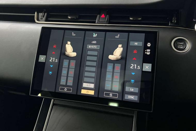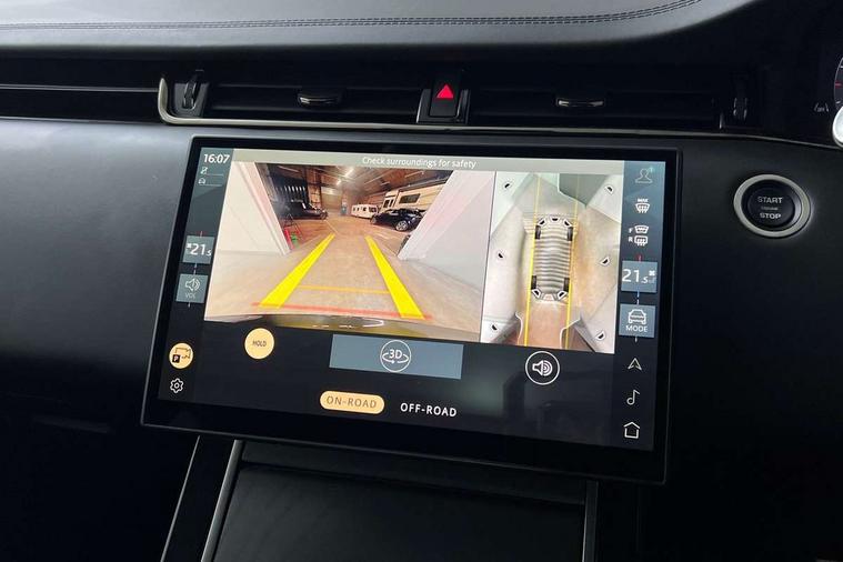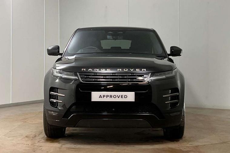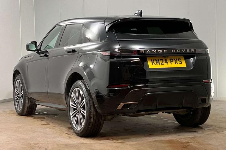 11.4" touch screen, 3D 360 degree surround camera with wade sensing, Adaptive cruise control, Android Auto, Apple car play, Blind spot assist, Bluetooth connectivity, Brake pad wear indicator warning light, Driver condition monitor, eCall emergency system, Eco mode, Electronic power assisted steering (EPAS), Front and rear parking aid, Head up Display, InControl remote, Interactive driver display, Land Rover InControl apps, Lane keep assist, Pivi pro connected includes diamond pivi variant, smart settings, connected navigation pro, nuance speech licence, Powered tailgate/boot lid, Rear collision monitor, Rear traffic monitor, Traffic sign recognition with adaptive speed limiter, Voice control system, Wireless device charging, All terrain progress control, Configurable dynamics, Electric rear axle drive, Home charging cable, Large fuel tank, Passive suspension, Public charging cable, Terrain Response 2, Digital Audio Broadcast radio-DAB, Steering wheel mounted controls, Acoustic laminated windscreen, Auto headlights, Automatic headlight levelling, ClearSight interior rear view mirror, Electric windows with one touch open/close and anti trap, Flush deployable exterior door handles, Front and rear recovery eyes, Front fog lights, Heated rear window with timer, Heated washer jets, Heated windscreen, Pixel LED headlights with signature DRL and LED tail Lights, Power fold, auto-dimming, heated door mirrors with approach lights and auto dimming driver side, Rain sensing windscreen wipers, Range rover branding illuminated metal tread plates in loadspace and row 1 with brand name script and metal in row 2, Rear animated directional indicators, Rear fog lights, Rear side wing doors, Rear wiper, Side repeater indicators in mirror, Sliding panoramic roof with powered sunblind, Tailgate spoiler, Third brake light, Winter wiper park position, 14 way driver memory electric front seats with 2 way manual headrests + 4 way lumbar support, bolsters, 40:20:40 split folding rear seats with centre headrest and armrest, Ambient interior lighting, Bright metal pedals, Cabin Air Purification plus, Configurable cabin lighting, Customer configurable single point entry, Electrically adjustable steering column with memory function and easy entry/exit, Front and rear cupholders, Heated and cooled front seats, Heated rear seats, Heated steering wheel, Isofix system on outer rear seats, Overhead lighting console, Overhead stowage for sunglasses, Passive front head restraints, Premium carpet mats, Rear air vents, Rear head restraints, Satin chrome gearshift paddles, Single passenger seat, Sunvisors with illuminated vanity mirrors, Twin sliding front centre armrest, Online pack with data plan - Evoque, Power socket pack 2 - Evoque, 3 rear 3 point seatbelts, Anti-lock braking system (ABS), Brake hold function, Customer configurable autolock, DSC - Dynamic Stability Control, Electronic brake force distribution, Electronic parking brake, Electronic traction control, Emergency braking, Front and rear seatbelt reminder, Hill descent control, Hill launch assist, Low traction launch, Occupant protection assist, Passenger seat occupant detector, Power operated child locks, Roll stability control, Six airbags - Driver and passenger airbags/driver knee airbag/front side airbag and curtain airbags, Torque vectoring brake, Tyre pressure monitoring system, Alarm, Immobiliser, Intrusion sensor, Keyless entry, Locking wheel nuts, All season tyres,
