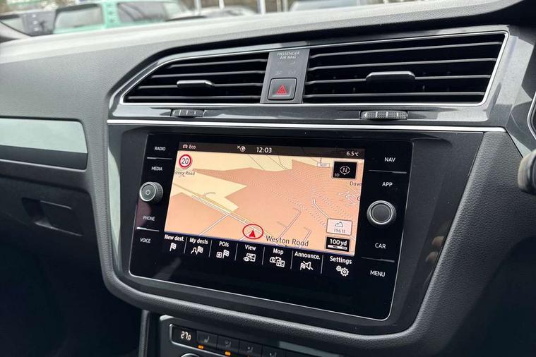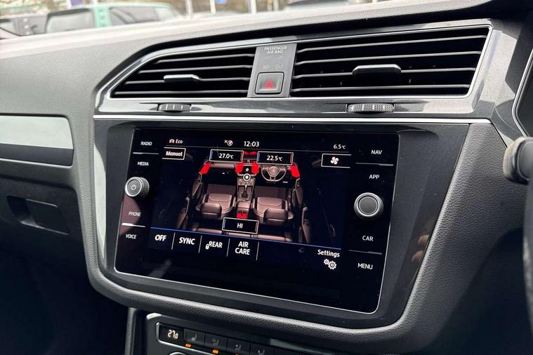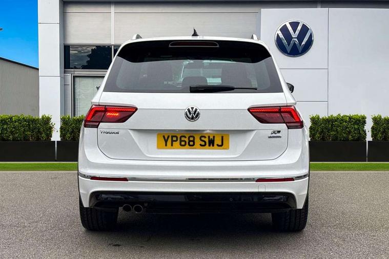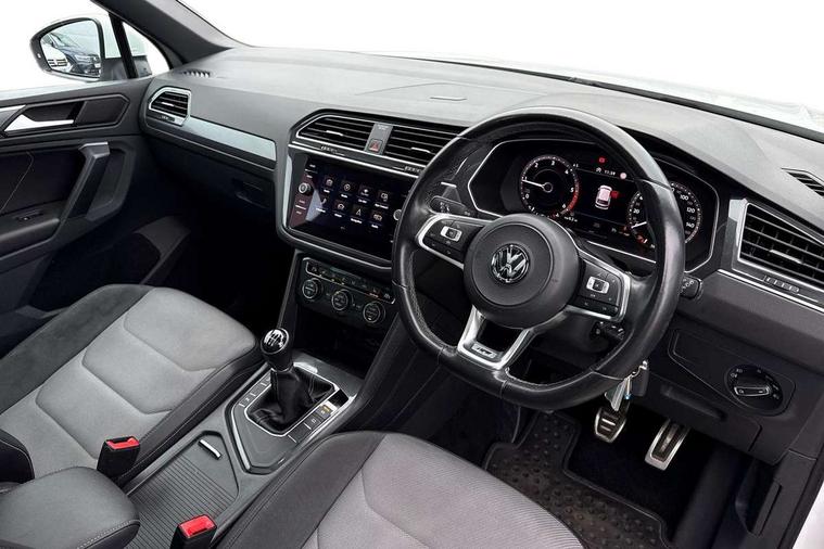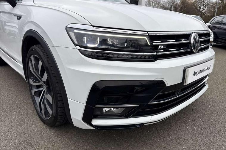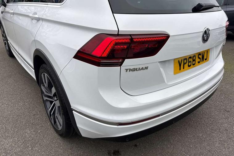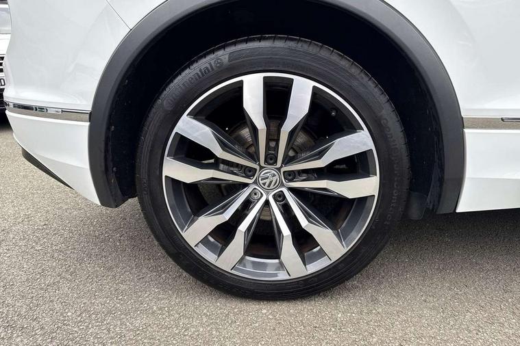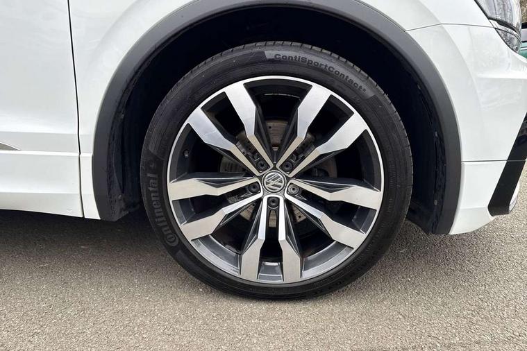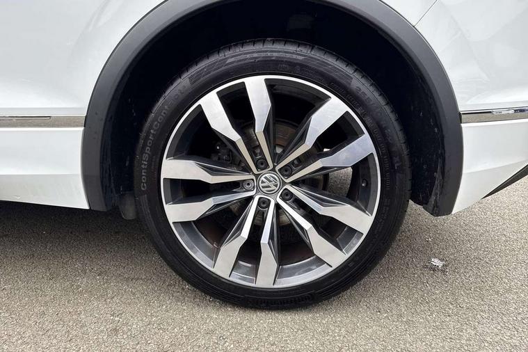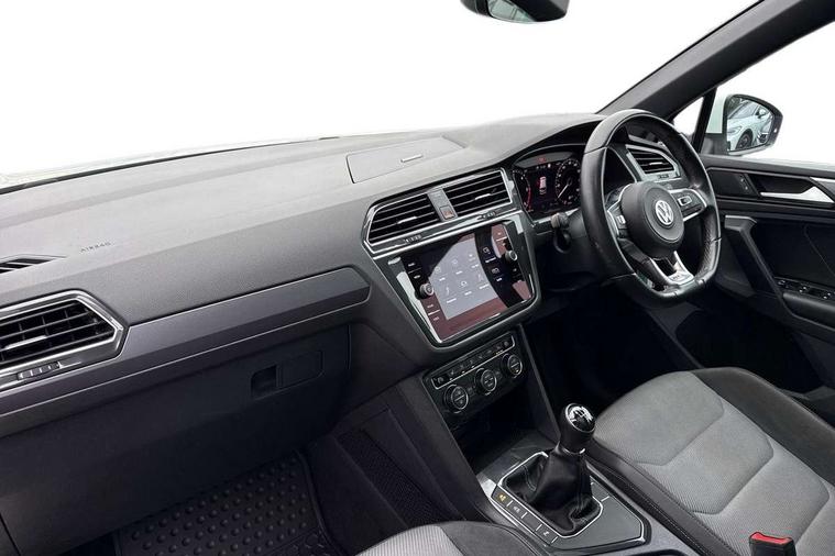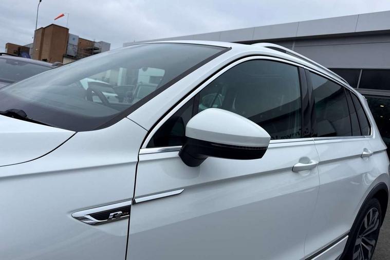 App-Connect, Active information display, Adaptive cruise control, Bluetooth phone integration system, Distance control assist, Driver profile selection, Fatigue detection system, Instrument cluster, Lane assist, Low washer fluid warning light, Outside temperature display, Progressive power assisted steering, Service interval indicator, Speed limiter, Warning lights, Diesel particulate filter, XDS electronic differential lock, 2x USB sockets in front, Aux-in socket, DAB Digital radio, MP3 compatible single CD player, SD card slot, Auto dimming interior mirror, Automatic activation of hazard warning lights, Body colour door handles, Body colour door mirrors, Body colour rear spoiler, Body colour side skirt, Body coloured bumpers, Chrome side window surrounds, Chrome trimmed radiator grille, Coming/leaving home lighting function, Dusk sensor + auto driving lights, Electric folding door mirrors, Electric heated + adjustable door mirrors, Electric panoramic sunroof with sunblind, Front and rear electric windows, Heated rear window, LED headlights with dynamic light assist daytime running lights and cornering front fog lights, LED rear lights, Piano black rear diffuser, R Line body kit, Rain sensor windscreen wipers, Rear windscreen washer and wiper with interval delay, Silver roof rails, Silver under body guard, Tinted windows (B pillar backwards), Windscreen wipers/ intermittent wipe + 4 position delay, 12V Accessory socket in centre console, 3 rear headrests, 3 zone climate control, 4 load lashing points, 40:20:40 split folding rear seats, Bag hook in luggage compartment, Black headlining, Driver + front passenger lumbar support, Foldable passenger seatback, Front + rear carpet mats, Front centre armrest with 12v socket, Front centre armrest with storage + rear 2 air vents + cupholders, Front seatback folding tables, Height/reach adjust steering wheel, Illuminated driver/passenger vanity mirrors, Illuminated scuff plates, Interior light with delay, Isofix Preparation 2 Rear child seats, Leather gear knob, Leather multifunction steering wheel, Load through provision with 2 cupholders when folded, Lockable cooled glovebox, Luggage compartment lighting, Luggage compartment side storage, Map pockets on front seats, Passenger seat height adjuster, Rear cupholders, Removable luggage cover, Sliding/reclining rear seats, Stainless steel pedals, Storage compartment in driver's door, Storage compartment in passenger's door, Storage compartment in rear doors, Storage tray on dashboard, Sunglasses storage, Variable boot floor, Ambient lighting pack - Tiguan, 3 rear 3 point seatbelts, ABS+EBD+Brake assist, Active bonnet, Active pedestrian safety system, Curtain airbags, Driver/Front Passenger airbags, Driver/Passenger whiplash optimised head restraints, Drivers knee airbag, DTC - Drag torque control, Electronic parking brake with auto hold, ESP with EDL + ASR, First aid kit, Front assist including city emergency braking, Front side airbags, Head airbag system, Height adjustable front 3 point seatbelts + pretensioners, Hill hold control, Passenger airbag deactivate switch, Passenger knee airbag, Pre crash system, Rear side airbags, Seatbelt warning lamp and buzzer, Two tone horn, Warning triangle, Alarm with interior protection, Electronic engine immobiliser, Remote central locking with 2 remote folding keys, Aluminium decorative inserts, Chrome door trim inserts, 20" Suzuka alloy wheels + anti theft wheel bolts, Steel space saver spare wheel,