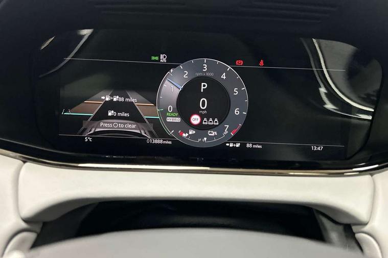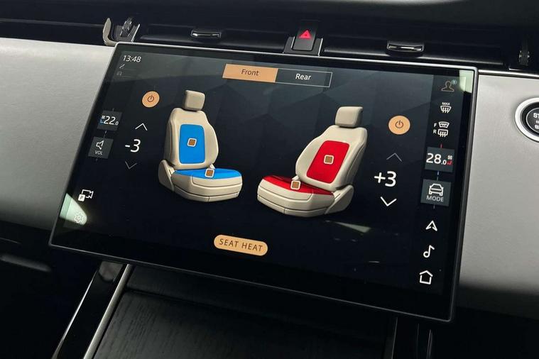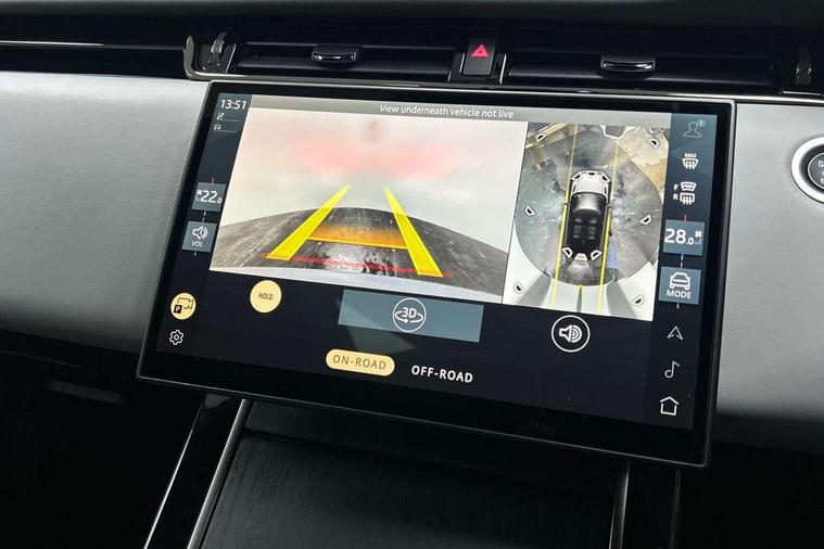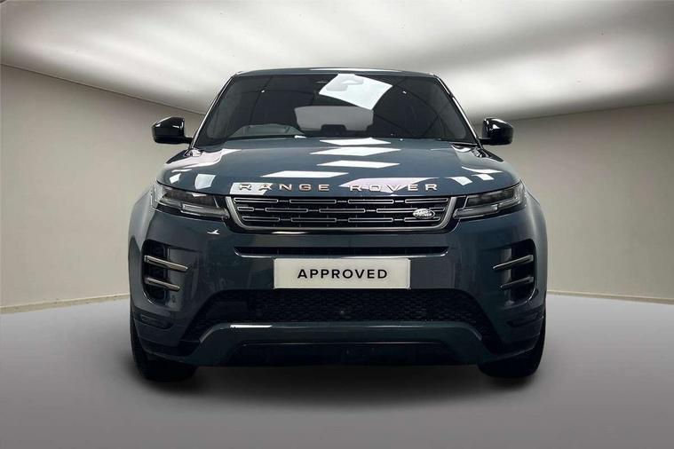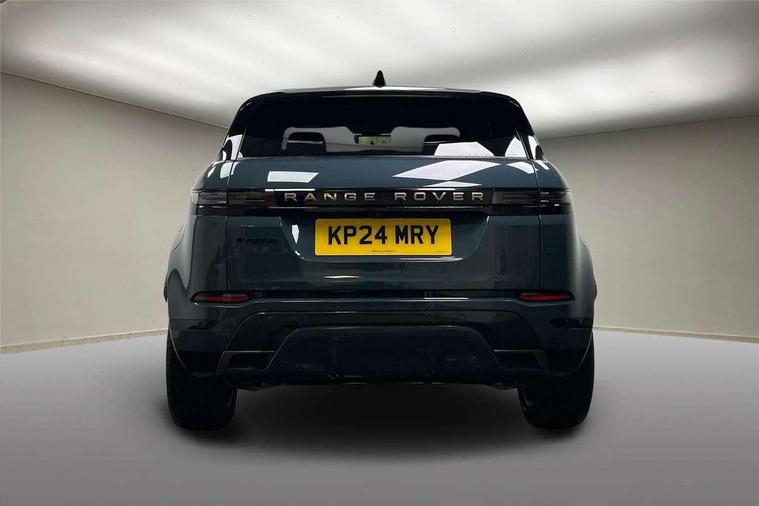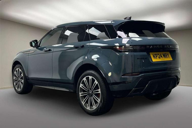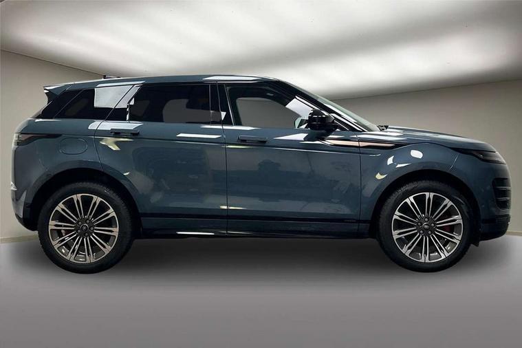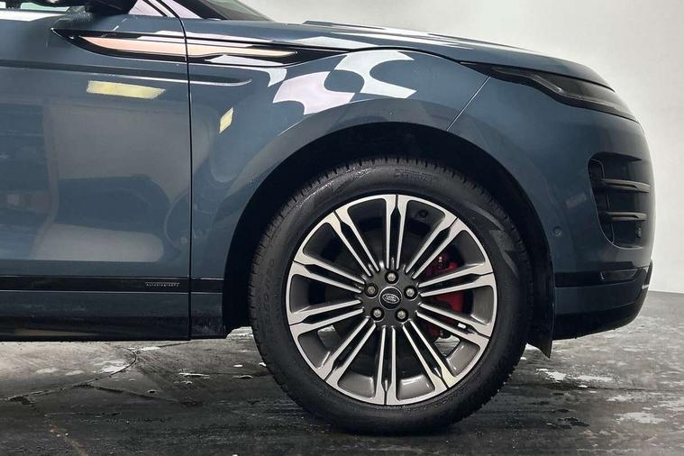 11.4" touch screen, 3D 360 degree surround camera with wade sensing, Adaptive cruise control, Android Auto, Apple car play, Blind spot assist, Bluetooth connectivity, Brake pad wear indicator warning light, Driver condition monitor, eCall emergency system, Eco mode, Electronic power assisted steering (EPAS), Front and rear parking aid, Head up Display, InControl remote, Interactive driver display, Land Rover InControl apps, Lane keep assist, Pivi pro connected includes diamond pivi variant, smart settings, connected navigation pro, nuance speech licence, Powered tailgate/boot lid, Rear collision monitor, Rear traffic monitor, Traffic sign recognition with adaptive speed limiter, Voice control system, Wireless device charging, All terrain progress control, Configurable dynamics, Electric rear axle drive, Home charging cable, Large fuel tank, Passive suspension, Public charging cable, Terrain Response 2, Digital Audio Broadcast radio-DAB, Steering wheel mounted controls, Acoustic laminated windscreen, Auto headlights, Automatic headlight levelling, ClearSight interior rear view mirror, Electric windows with one touch open/close and anti trap, Flush deployable exterior door handles, Front and rear recovery eyes, Front fog lights, Heated rear window with timer, Heated washer jets, Heated windscreen, Pixel LED headlights with signature DRL and LED tail Lights, Power fold, auto-dimming, heated door mirrors with approach lights and auto dimming driver side, Rain sensing windscreen wipers, Range rover branding illuminated metal tread plates in loadspace and row 1 with brand name script and metal in row 2, Rear animated directional indicators, Rear fog lights, Rear side wing doors, Rear wiper, Side repeater indicators in mirror, Sliding panoramic roof with powered sunblind, Tailgate spoiler, Third brake light, Winter wiper park position, 14 way driver memory electric front seats with 2 way manual headrests + 4 way lumbar support, bolsters, 40:20:40 split folding rear seats with centre headrest and armrest, Ambient interior lighting, Bright metal pedals, Cabin Air Purification plus, Configurable cabin lighting, Customer configurable single point entry, Electrically adjustable steering column with memory function and easy entry/exit, Front and rear cupholders, Heated and cooled front seats, Heated rear seats, Heated steering wheel, Isofix system on outer rear seats, Overhead lighting console, Overhead stowage for sunglasses, Passive front head restraints, Premium carpet mats, Rear air vents, Rear head restraints, Satin chrome gearshift paddles, Single passenger seat, Sunvisors with illuminated vanity mirrors, Twin sliding front centre armrest, Online pack with data plan - Evoque, Power socket pack 2 - Evoque, 3 rear 3 point seatbelts, Anti-lock braking system (ABS), Brake hold function, Customer configurable autolock, DSC - Dynamic Stability Control, Electronic brake force distribution, Electronic parking brake, Electronic traction control, Emergency braking, Front and rear seatbelt reminder, Hill descent control, Hill launch assist, Low traction launch, Occupant protection assist, Passenger seat occupant detector, Power operated child locks, Roll stability control, Six airbags - Driver and passenger airbags/driver knee airbag/front side airbag and curtain airbags, Torque vectoring brake, Tyre pressure monitoring system, Alarm, Immobiliser, Intrusion sensor, Keyless entry, Locking wheel nuts, All season tyres,