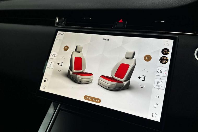 11.4" touch screen, 3D 360 degree surround camera with wade sensing, Adaptive cruise control, Android Auto, Apple car play, Blind spot assist, Bluetooth connectivity, Brake pad wear indicator warning light, Driver condition monitor, eCall emergency system, Eco mode, Electronic power assisted steering (EPAS), Front and rear parking aid, InControl remote, Interactive driver display, Land Rover InControl apps, Lane keep assist, Pivi pro connected includes diamond pivi variant, smart settings, connected navigation pro, nuance speech licence, Powered tailgate/boot lid, Rear collision monitor, Rear traffic monitor, Tailgate, Traffic sign recognition with adaptive speed limiter, Voice control system, Wireless device charging, All terrain progress control, Diesel exhaust fluid (DEF) large tank, Efficient Driveline, Large fuel tank, Terrain Response 2, Digital Audio Broadcast radio-DAB, Steering wheel mounted controls, Acoustic laminated windscreen, Auto headlights, Auto high beam assist, Automatic headlight levelling, Electric windows with one touch open/close and anti trap, Flush deployable exterior door handles, Front and rear recovery eyes, Heated rear window with timer, Heated washer jets, Heated windscreen, LED headlights with signature DRL and LED tail Lights, Power fold, auto-dimming, heated door mirrors with approach lights and auto dimming driver side, Rain sensing windscreen wipers, Rear animated directional indicators, Rear fog lights, Rear side wing doors, Rear wiper, Side repeater indicators in mirror, Tailgate spoiler, Third brake light, Winter wiper park position, 12 way driver memory and 10 way passenger electric front seats with 2 way manual headrest + 4 way lumbar support, 40:20:40 split folding rear seats with centre headrest and armrest, Ambient interior lighting, Bright metal pedals, Carpet mats, Chrome tread plates with range rover branding Includes stainless steel loadspace scuff plate with etched graphic, Customer configurable single point entry, Front and rear cupholders, Heated front seats, Heated steering wheel, Isofix system on outer rear seats, Manually adjustable steering column, Overhead lighting console, Overhead stowage for sunglasses, Passive front head restraints, Rear air vents, Rear head restraints, Satin chrome gearshift paddles, SE Grained leather upholstery, Single passenger seat, Standard steering wheel with Moonlight Bezel, Sunvisors with illuminated vanity mirrors, Twin sliding front centre armrest, Power socket pack 2 - Evoque, 3 rear 3 point seatbelts, Anti-lock braking system (ABS), Brake hold function, Customer configurable autolock, DSC - Dynamic Stability Control, Electronic brake force distribution, Electronic parking brake, Electronic traction control, Emergency braking, Front and rear seatbelt reminder, Hill descent control, Hill launch assist, Low traction launch, Occupant protection assist, Passenger seat occupant detector, Power operated child locks, Roll stability control, Six airbags - Driver and passenger airbags/driver knee airbag/front side airbag and curtain airbags, Torque vectoring brake, Tyre pressure monitoring system, Alarm, Immobiliser, Intrusion sensor, Keyless entry, Locking wheel nuts, All season tyres,