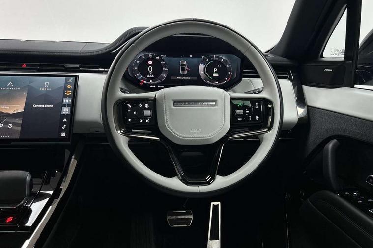 13.1" Touchscreen, 3D 360 degree surround camera with wade sensing, Adaptive cruise control with steering assist, Android Auto, Apple car play, Blind spot assist, Bluetooth connectivity streaming, Driver condition response, Eco mode, Front and rear parking aid, Interactive Driver display instrument cluster, Lane departure warning system, Lane keep assist, Push button start, Rear collision monitor, Rear traffic monitor, Remote, Traffic sign recognition with adaptive speed limiter, Trip computer, Wireless device charging, 8 speed automatic transmission, Adaptive dynamics, All wheel drive system, Automatic access height, Home charging cable, Public charging cable, Terrain Response 2, Twin speed transfer box, DAB Radio (Digital Audio Broadcasting), Incontrol protect - SOS emergency call with automatic collision detection, optimised assistance call and Incontrol remote app essential, Pivi pro connected, USB/aux input socket, Adaptive brake lights, Automatic headlight levelling, Automatic headlights, Centre high mounted stop light, Electric heated/power fold memory door mirrors with approach lights and auto dimming driver side, Electric windows with one touch open/close and anti trap, Flush deployable exterior door handles, Follow me home lighting, Front and rear recovery eyes, Headlight power wash, Heated rear window, Heated washer jets, Heated windscreen, Illuminated aluminium treadplates with Range Rover script, Integrated twin tailpipes, LED tail lights, Metal load space scuff plates, No badges, Rain sensing windscreen wipers, Rear animated directional indicators, Rear fog lights, Rear side wing doors, Rear wash/wipe, Remote window closing, Side repeater indicators in mirror, Trailer stability assist, Winter wiper park position, 3 seat bench in 2nd row, 60:40 seats with power recline and loadthrough, Air quality sensor, Auto air recirculation, Bright metal foot pedals, Centre console with armrest, Customer configurable single point entry, Driver's footrest, Easy boot loading, Ebony console door armrests and seatbelts, Electric adjustable steering column, Front and rear cupholders, Front door storage space, Front head restraints, Front map lights, Front seat back map pockets, Front stowage pocket, Front/rear passenger grab handles, Gearshift paddles, Heated steering wheel, Isofix child seat preparation, Loadspace cover, Loadspace Hook, Loadspace light, Loadspace mounting provisions, Lockable glovebox, Luggage tie-downs in loadspace, Multifunction steering wheel, Pollen filter, Power socket, Rear centre armrest, Rear head restraints, Rear ISOFIX, Single front passenger seat, Three 12V accessory power outlets, Upper secondary glovebox, Online pack with data plan - Range Rover Sport, 3 point seatbelts on all seats, Anti-lock braking system (ABS), Brake pre-fill technology, Configurable autolock, Cornering brake control (CBC), DSC - Dynamic Stability Control, EBD - Electronic brakeforce distribution, Electric parking brake, Electronic traction control, Emergency braking, Front seatbelt pretensioners, Front side airbags, Height adjustable front seatbelts, Hill descent control, Hill launch assist, Low traction launch, Occupant protection assist, Passenger seat occupant detector with front airbags, Power operated child locks, Roll stability control, Seatbelt warning, TPMS (Tyre pressure monitoring system), Immobiliser, Intrusion sensor, Keyless entry, Locking wheel nuts, Perimetric and volumetric anti theft alarm, Remote locking,