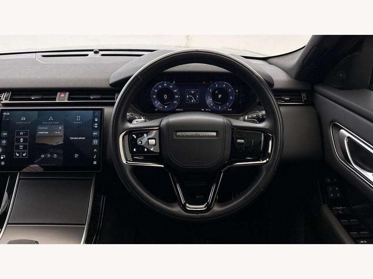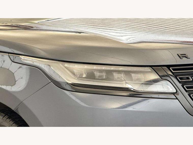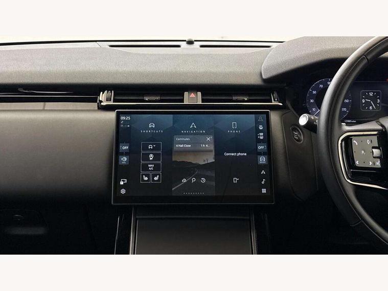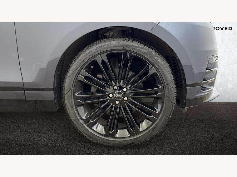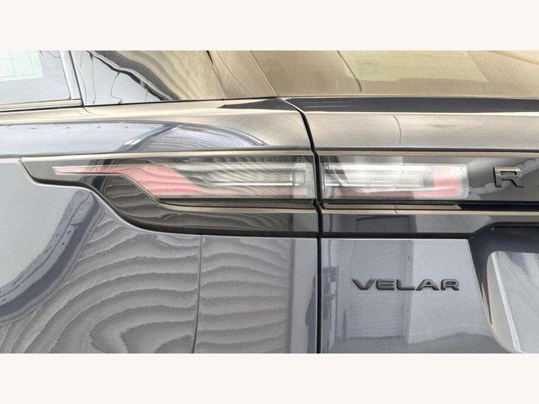 Adaptive cruise control with steering assist, Android Auto, Apple CarPlay, Blind spot assist, Bluetooth connectivity, Brake pad wear indicator warning light, Driver condition monitor, eCall emergency call system, Front and rear parking aid, InControl remote, Land Rover InControl apps, Lane keep assist, Pivi pro with connected navigation, Rear collision monitor, Rear traffic monitor, Service indicator, Speed proportional electronic power assisted steering (EPAS), Traffic sign recognition with adaptive speed limiter, Trip computer, Voice control system, 8 speed automatic transmission, Adaptive dynamics, All terrain progress control, Open differential with torque vectoring by braking, Single speed transfer box, DAB radio, Steering wheel mounted controls, 3rd brake light, Acoustic laminated windscreen, Auto dimming interior rear view mirror, Automatic headlamp levelling, Automatic headlights, Black roof rails, Body coloured bumpers, Boot protection plate, Electric windows with one touch open/close and anti trap, Flush deployable exterior door handles, Follow me home headlights, Heated rear window with timer, Heated washer jets, Metal front tread plates, Metal load space scuff plates, Pixel LED headlights with signature DRL, Power fold, auto-dimming, heated door mirrors with memory and approach lights, Rain sensor windscreen wipers, Rear animated directional indicators, Rear fog lights, Rear side wing doors, Rear wash/wipe, Tailgate/boot lid spoiler, Trailer stability assist, Velar badge, 3 seat bench in 2nd row, Ambient lighting, Bright metal pedals, Carpet mats, Driver/passenger sunvisors with illuminated vanity mirrors, Ebony morzine headlining, Electrically adjustable steering column, Heated steering wheel, Isofix system on outer rear seats, Loadspace cover, Overhead lighting console, Overhead stowage for sunglasses, Passive front headrests, Rear air vents, Rear centre headrest, Single front passenger seat, Twin front cupholders, Twin sliding front centre armrest, Online pack with data plan - Velar, Power socket pack 2 - Velar, 355mm Front and 325mm Rear brakes, 3x3 point rear seatbelts, Anti-lock braking system (ABS), Cornering brake control, Curtain airbags, Customer configurable autolock, Door side intrusion beams, Driver airbag, DSC - Dynamic Stability Control, Electronic brake force distribution, Electronic parking brake, Electronic traction control, Emergency braking, Front and rear seatbelt reminder, Hill descent control, Hill launch assist, Low traction launch, Passenger airbag, Power operated child locks, Rear airbags, Roll stability control, Side airbags, Tyre pressure monitoring system (TPMS), Global lock and unlock switch on driver door, Immobiliser, Intrusion sensor, Keyless entry, Lock only switch on front passenger door, Locking wheel nuts, Perimetric alarm, Remote central locking,
