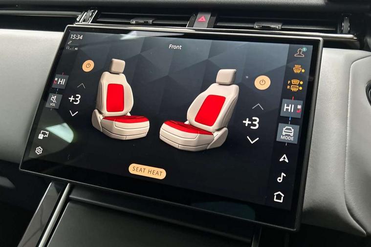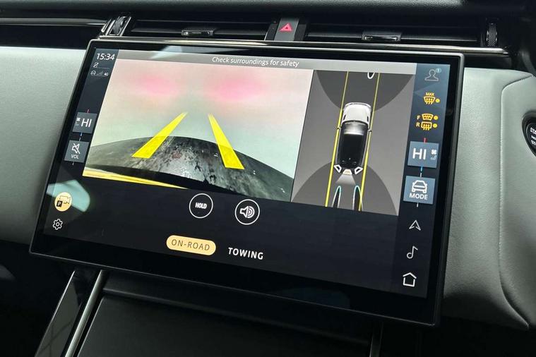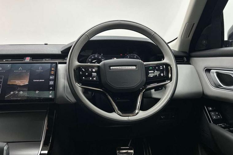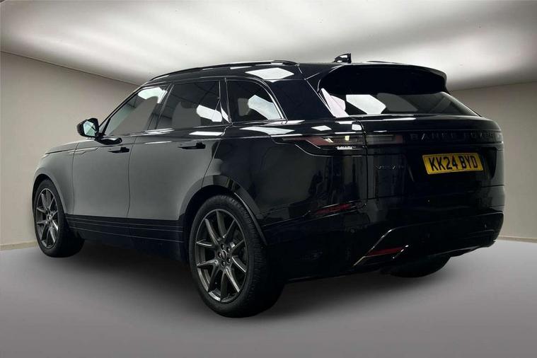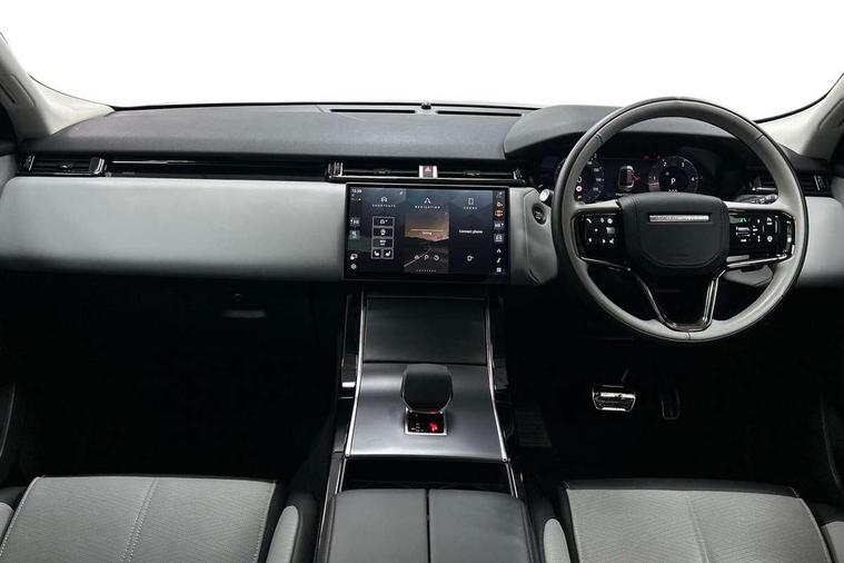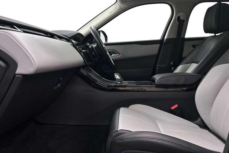 Adaptive cruise control with steering assist, Android Auto, Apple CarPlay, Blind spot assist, Bluetooth connectivity, Brake pad wear indicator warning light, Driver condition monitor, eCall emergency call system, Front and rear parking aid, InControl remote, Land Rover InControl apps, Lane keep assist, Pivi pro with connected navigation, Rear collision monitor, Rear traffic monitor, Service indicator, Speed proportional electronic power assisted steering (EPAS), Traffic sign recognition with adaptive speed limiter, Trip computer, Voice control system, Wireless device charging, 8 speed automatic transmission, Adaptive dynamics, All terrain progress control, Electronic air suspension, Open differential with torque vectoring by braking, Single speed transfer box, DAB radio, Steering wheel mounted controls, 3rd brake light, Acoustic laminated windscreen, Auto dimming interior rear view mirror, Automatic headlamp levelling, Automatic headlights, Body coloured bumpers, Boot protection plate, Electric windows with one touch open/close and anti trap, Flush deployable exterior door handles, Follow me home headlights, Heated rear window with timer, Heated washer jets, Heated windscreen, Metal front tread plates, Metal load space scuff plates, Pixel LED headlights with signature DRL, Power fold, auto-dimming, heated door mirrors with memory and approach lights, Rain sensor windscreen wipers, Rear animated directional indicators, Rear fog lights, Rear side wing doors, Rear wash/wipe, Tailgate/boot lid spoiler, Trailer stability assist, Velar badge, 3 seat bench in 2nd row, Ambient lighting, Bright metal pedals, Carpet mats, Driver/passenger sunvisors with illuminated vanity mirrors, Ebony morzine headlining, Electrically adjustable steering column, Extended leather upgrade, Heated steering wheel, Isofix system on outer rear seats, Loadspace cover, Overhead lighting console, Overhead stowage for sunglasses, Passive front headrests, Rear air vents, Rear centre headrest, Single front passenger seat, Twin front cupholders, Twin sliding front centre armrest, Online pack with data plan - Velar, Power socket pack 2 - Velar, 380mm front brakes and 325mm rear brakes, 3x3 point rear seatbelts, Anti-lock braking system (ABS), Cornering brake control, Curtain airbags, Customer configurable autolock, Door side intrusion beams, Driver airbag, DSC - Dynamic Stability Control, Electronic brake force distribution, Electronic parking brake, Electronic traction control, Emergency braking, Front and rear seatbelt reminder, Hill descent control, Hill launch assist, Low traction launch, Passenger airbag, Power operated child locks, Rear airbags, Roll stability control, Side airbags, Tyre pressure monitoring system (TPMS), Global lock and unlock switch on driver door, Immobiliser, Intrusion sensor, Keyless entry, Lock only switch on front passenger door, Locking wheel nuts, Perimetric alarm, Remote central locking, All season tyres,