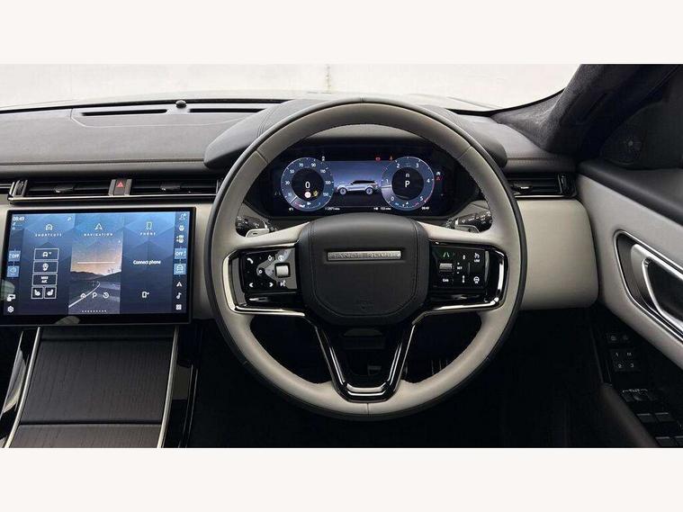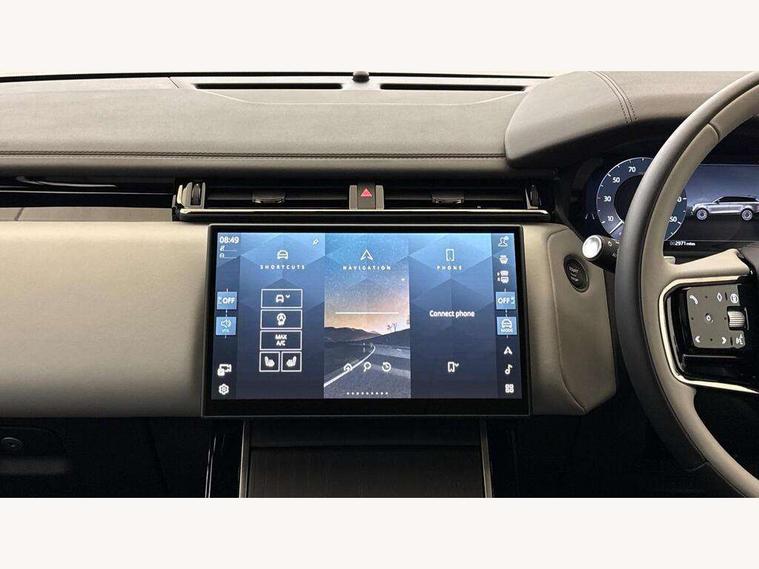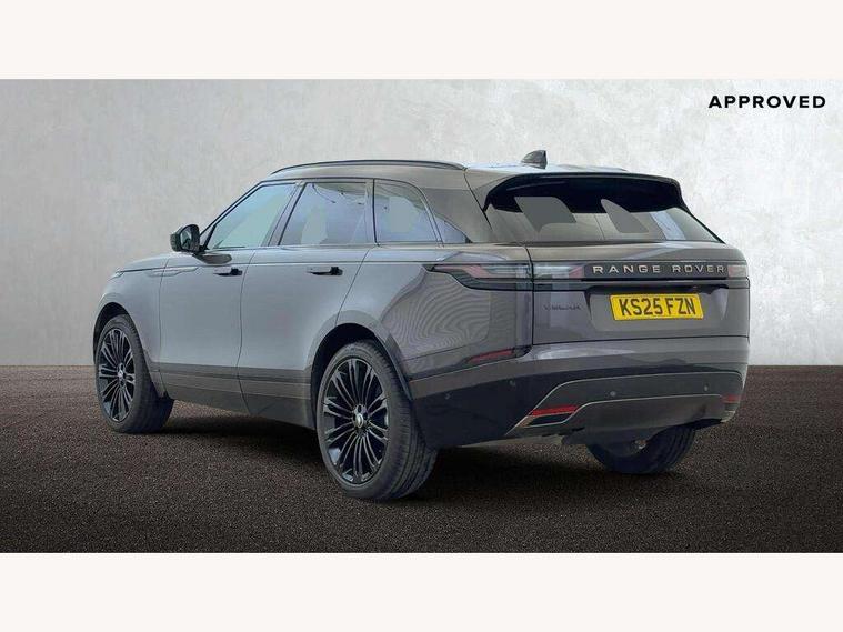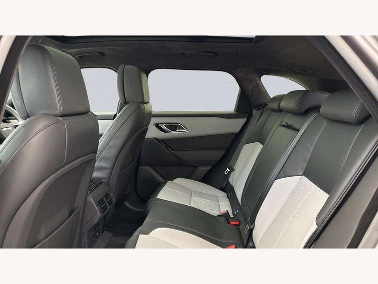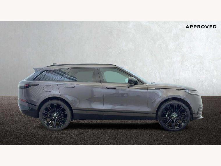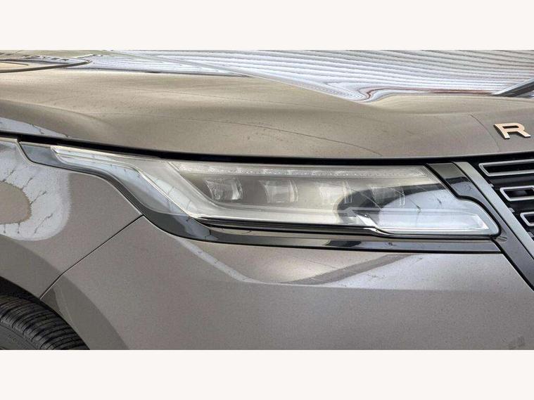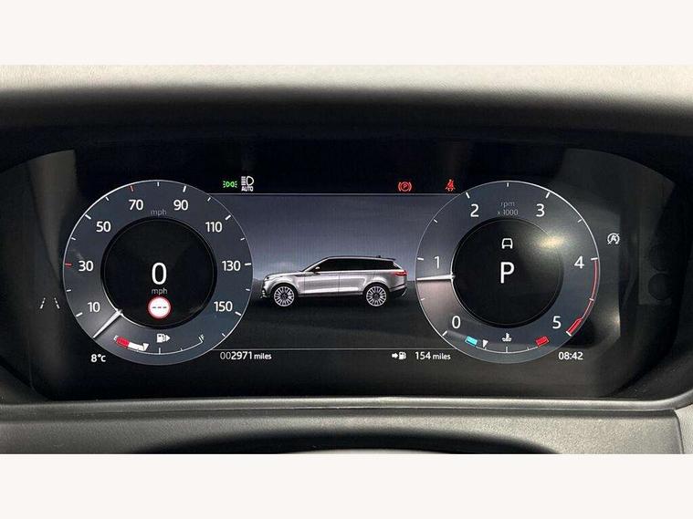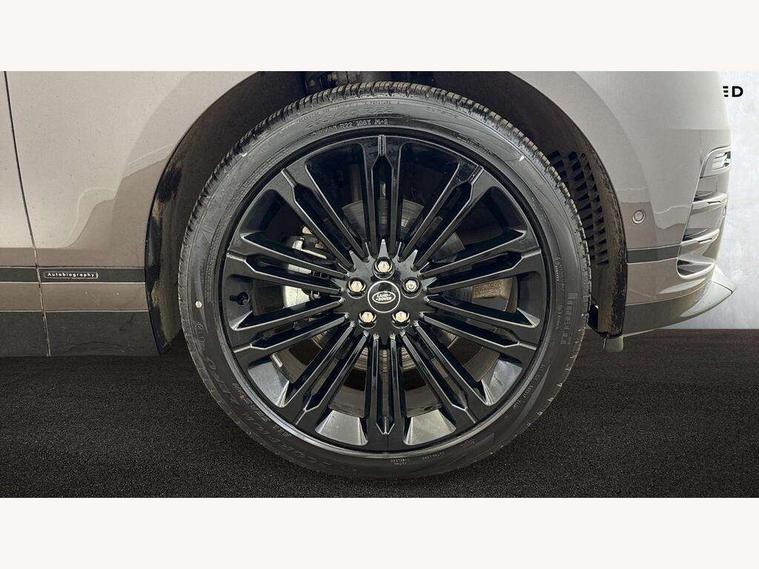 3D surround camera includes forward traffic detection and vehicle guidance, Adaptive cruise control with steering assist, Android Auto, Apple CarPlay, Blind spot assist, Bluetooth connectivity, Brake pad wear indicator warning light, Driver condition monitor, eCall emergency call system, Front and rear parking aid, InControl remote, Land Rover InControl apps, Lane keep assist, Pivi pro with connected navigation, Rear collision monitor, Rear traffic monitor, Service indicator, Speed proportional electronic power assisted steering (EPAS), Traffic sign recognition with adaptive speed limiter, Trip computer, Voice control system, Wade Sensing, Wireless device charging, 8 speed automatic transmission, Adaptive dynamics, All terrain progress control, Electronic air suspension, Open differential with torque vectoring by braking, Single speed transfer box, Terrain Response 2 with dynamic program, DAB radio, Steering wheel mounted controls, 3rd brake light, Acoustic laminated windscreen, Auto dimming interior rear view mirror, Autobiography badge, Automatic headlamp levelling, Automatic headlights, Body coloured bumpers, Boot protection plate, Contrast bonnet in burnished copper & rear lettering, Electric windows with one touch open/close and anti trap, Flush deployable exterior door handles, Follow me home headlights, Heated rear window with timer, Heated washer jets, Heated windscreen, Metal load space scuff plates, Pixel LED headlights with signature DRL, Power fold, auto-dimming, heated door mirrors with memory and approach lights, Rain sensor windscreen wipers, Rear animated directional indicators, Rear fog lights, Rear side wing doors, Rear wash/wipe, Tailgate/boot lid spoiler, Trailer stability assist, Velar badge, 3 seat bench in 2nd row, Ambient lighting, Bright metal pedals, Carpet mats, Driver/passenger sunvisors with illuminated vanity mirrors, Ebony suedecloth headlining, Electrically adjustable steering column, Full extended leather upgrade, Heated steering wheel, Isofix system on outer rear seats, Loadspace cover, Overhead lighting console, Overhead stowage for sunglasses, Passive front headrests, Rear air vents, Rear centre headrest, Single front passenger seat, Twin front cupholders, Twin sliding front centre armrest, Online pack with data plan - Velar, Power socket pack 2 - Velar, 380mm front brakes and 325mm rear brakes, 3x3 point rear seatbelts, Anti-lock braking system (ABS), Cornering brake control, Curtain airbags, Customer configurable autolock, Door side intrusion beams, Driver airbag, DSC - Dynamic Stability Control, Electronic brake force distribution, Electronic parking brake, Electronic traction control, Emergency braking, Front and rear seatbelt reminder, Hill descent control, Hill launch assist, Low traction launch, Passenger airbag, Power operated child locks, Rear airbags, Roll stability control, Side airbags, Tyre pressure monitoring system (TPMS), Global lock and unlock switch on driver door, Immobiliser, Intrusion sensor, Keyless entry, Lock only switch on front passenger door, Locking wheel nuts, Perimetric alarm, Remote central locking, All season tyres,
