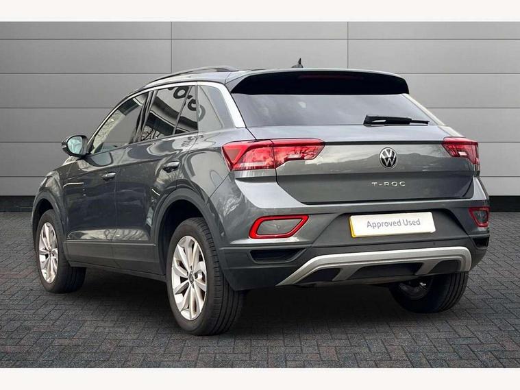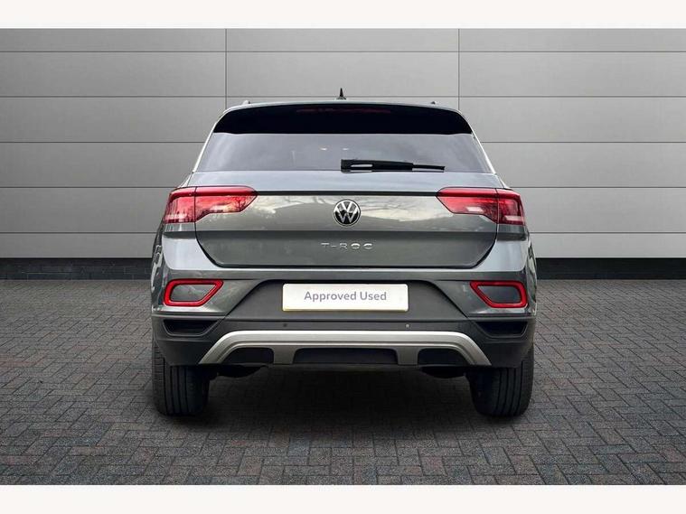 Advanced driver attention and drowsiness monitor, Dynamic road sign display, Emergency call service, Lane keeping system Lane Assist, Mobile phone interface, Modified key software - reduce switch off time for key status change to Long no motion, Online services, Park assist including front and rear parking sensors, Power assisted speed sensitive steering, Rear view camera, Service interval indicator, Tailgate/trunk lid release from outside, Think blue trainer driver tips and journey analysis, Warning sound and light for front seatbelts unfastened, Wireless app connect, Battery regeneration during braking, Front shock absorption, Rear shock absorption chassis with increased ride height, Start/stop function with battery regeneration, DAB Digital radio, Diversity antenna for FM reception, Music playback - MP3, WMA and AAC files, Premium USB cable in choice of either Apple or Android smartphone compatibility, SD card slot, Simultaneous pairing of 2 compatible mobile devices, Title and cover art display, We Connect and We Connect Plus functionality, Auto dimming interior rear view mirror, Automatic hazard lights activation under emergency braking, Automatic headlight control with LED separate daytime running lights with coming/leaving home function, Black roof rails, Body coloured bumpers and radiator grille with chrome trim and front fog lamps with chrome bezel, Body coloured exterior mirror housings and door handles, Electrically adjustable and heated door mirrors, Extended roof spoiler, Exterior mirrors aspherical on driver side, convex on front passenger side, External USB type C socket and charging sockets, Front windscreen wiper with intermittent wipe and 4 position delay, Heated rear window, LED 3rd brake light, LED rear combination lamps, LED rear number plate lights, Power windows with comfort operation and circuit breaker, Privacy glass for rear side windows and rear window, Rain sensor, Rear exhaust tailpipe, Rear fog light on one side and reversing lights on both sides, Rear side wing doors, Rear wash/wipe with intermittent wipe setting, Remote electrically foldable door mirrors, puddle lights and reverse activated passenger's door mirror, 12V power socket in centre console, 3 rear head restraints, 3 seat bench in 2nd row, 4 load lashing points in luggage compartment, Air care climatronic air conditoning system with active combination filter and 2-zone temperature control, Black stitching for floor mats, Ceramique roof liner, Cloth upholstery, Door and side trim panel in cloth, Drawer under drivers seat, Driver/front passenger seat height adjustment, Front centre armrest, Front comfort sports seats, Front cupholders x 2, Front reading light, Front seat back storage pockets, Glove compartment door with light, Instrument lighting, white adjustable panel illumination, Interior ambient lighting and surround lighting, Interior light delay, Isofix child seat preparation, Leather gearshift handle, Load-through provision with cup holder when folded down ('Unsplit rear seat bench, split folding backrest, with centre armrest), Luggage compartment lighting, Lumbar support for driver's and front passengers seat, Non-folding front passenger seat backrest, Single front passenger seat, Storage compartment in left and right luggage area, Storage compartment in rear doors, Storage compartments in driver and front passenger doors, Sunvisors with illuminated vanity mirrors, Variable boot floor, height adjustable and removable, Driver assistance pack without proactive passenger protection - T-Roc Life/Match, 3 point height adj front seatbelts + pretensioners, 3 point seatbelts in outer rear with ECE label, ABS, Child locks on rear doors, City emergency braking and pedestrian monitoring, Driver and front passenger airbag with front passenger airbag deactivation, Driver and front passenger safety-optimised head restraints, Drivers seatbelt reminder, Electronic parking brake, Electronic Stability Control (ESC) inc EDL (Electronic Differential Lock) and ASR (Traction Control), Front and rear passengers curtain airbag system including front side airbags, Front disc brakes, Hill start assist, Predictive pedestrian protection, Rear disc brakes, Two tone horn, Tyre pressure loss indicator, Volkswagen roadside assistance, Alarm with interior protection, Keyless locking and starting system keyless access with safelock, Pewter matt decorative inserts for intrument panel, centre console and door panels at the front, Trims for alloy wheels,