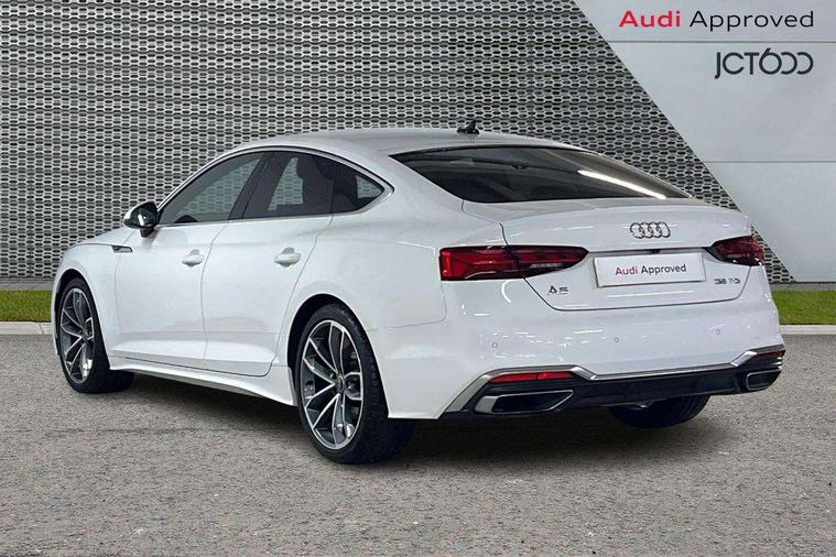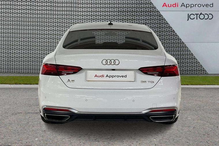 Audi connect safety and service (e-call), Audi drive select (Auto, Comfort, Dynamic, Efficiency and Individual), Audi smartphone interface, Audi virtual cockpit - 12.3" full colour digital instrument cluster, vehicle/engine speed, Radio/media information+Driver assistance systems, Automatic start-stop system with coasting functionality and efficiency programme, Bluetooth interface, Camera based traffic sign recognition, Electro-mechanical power steering, Email, calendar and text messages displayed via MMI, Front and rear parking sensors, Lane departure warning, MMI nav+ with MMI touch - 10.1" high resolution MMI display, touch sensitive, 3D map, route/country info, dynamic route guide, personal route assist, Power operated tailgate, Rear view camera, Service interval indicator, Voice control system, Diesel particulate filter, Sports suspension lowered by 23mm, 8 passive loudspeakers, CD player, DAB digital radio reception, Two additional USB ports for rear passenger in rear centre console, Two SDXC card slots, Auto dimming door mirrors, Auto dimming rear view mirror, Body colour bumpers, Body colour door handles, Body colour front spoiler lip, Body colour side sill trim, Body coloured door mirrors, Electric adjustable heated door mirrors, Electric folding door mirrors, Electric front windows, Front fog lights, Honeycomb structure radiator grille in grained matt black, Kerb-view function for passenger side, LED headlights and rear lights with LED daytime running lights, LED side indicator lights integrated into door mirrors, LED third brake light, Matt aluminium silver tailpipe trim, Privacy glass, Rain and light sensors, Rear side wing doors, Rear wiper, S line badges on front wings, S line front and rear bumpers with side skirts, S Line rear diffuser in matt anthracite black with trim strip in matt aluminium silver, Side air inlets in grained matt black with matt aluminium silver inlay, Variable front intermittent wipers, Windscreen with acoustic glazing, 3 seat bench in 2nd row, 3 spoke high multifunction leather sport steering wheel with paddle shfit and S badging perforated leather grips, 4 way electric lumbar support for driver and front passenger, 40/20/40 split folding 3 seater rear bench seat, Adjustable steering column, Black cloth headlining, Black perforated leather gearknob, Contrast stitching on seats, steering wheel and gear lever gaiter, Deluxe 3 zone electronic climate control, Front centre armrest, Front head restraints, Front/rear floor mats, Heated front seats, Illuminated door sill trim with S logo, ISOFIX child seat mounting and top tether, Luggage compartment mat, Manual seat adjustment, Rear centre armrest, Rear headrests, Single front passenger seat, Stainless steel pedals and footrest, Sunvisors with vanity mirrors, LED interior light pack - A5/RS5, 3x3 point rear seatbelts, 6 airbags - Driver, front passenger, curtain and side airbags, Attention and drowsiness assist, Electromechanical parking brake, Electronic Stabilisation Control (ESC) including ABS, ASR and EDL, Front passenger airbag deactivation, Height adjustable front seatbelts, Hill hold assist, Manual child lock in rear doors, Multi collision brake assist, Pop-up bonnet for pedestrian protection, Pre sense city, Seatbelt monitoring, Tyre pressure warning, Variable restraint system, Warning triangle and first aid kit, Anti theft alarm system, Anti theft wheel bolts, Immobiliser, Keyless Go, Remote central locking, Matt brushed aluminium inlays, Tool kit, Tyre repair kit,