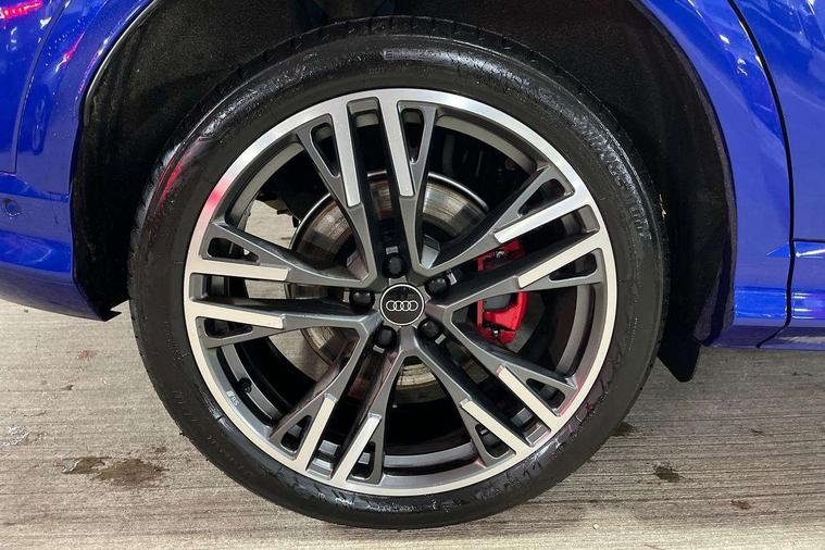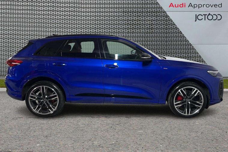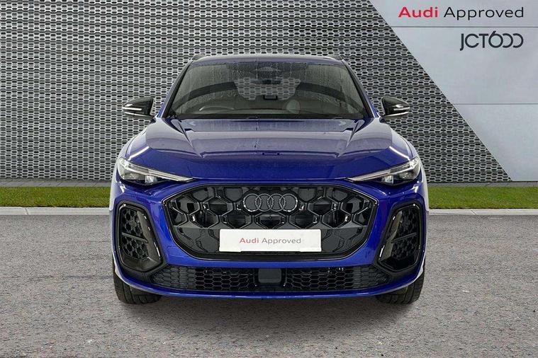 Adaptive cruise control, Advanced driver attention alert, Audi application store, Audi connect emergency call and service, Audi drive select, Audi smartphone interface, Audi virtual cockpit plus with 11.9" OLED colour display, Camera based traffic sign recognition, Fatigue monitor, Front cross traffic intersection assist, Lane change assistant with exit warning system, rear cross traffic alert and rear turn assist, Lane departure warning with emergency assist, MMI 10.9" front passenger touch display, MMI navigation plus with high resolution 14.5" OLED touchscreen colour display, Park assist plus, Parking system plus with 360 display, PAS, Reversing camera, Swerve assist and turn assist, Top view camera, Traffic sign based speed limiter, 2 USB-C ports in both the front and rear, Audi sound system impressive sound with 8 loudspeakers including centre speaker and subwoofer, 6-channel amplifier with a total output of 180 watts, DAB Digital radio, Smartphone compartment with wireless charging, Active digital light signatures - Six additional combinations of active daytime running light signature, Auto dimming rear view mirror, Black roof rails, Coming/leaving home lighting function, Electrically adjustable heated and folding + automatically dimming exterior mirrors, Exhaust tailpipes in dark chrome, Front and rear electric windows, Front door sill trims with aluminium inlays, illuminated with 'S' logo, Full body paint finish, Grill frame, inlay and front air inlets in matt anthracite chrome, Headlight cleaning system, Heated rear window, High beam assist, High gloss window surrounds, LED rear lights pro incl. dynamic rear indicators and illuminated light strip with animated coming and leaving home function, Logo projection light in exterior mirrors, Matrix LED headlights, Memory function for door mirrors, Privacy glass, Projection third brake light for rear window in LED, Radiator grille in phantom black, Rear and side windows with heat insulating glass, Rear honeycombe grille in matt black with inlay in matt anthracite chrome, Rear side wing doors, Rear wash/wipe, S Line badge on the front wings, Towbar preparation, Windscreen with acoustic glazing, 3 rear head restraints, 3 seat bench in 2nd row, 3 spoke leather steering wheel with multi-function buttons with touch control, flattened on top and bottom, with S badging and contrast stitching, 4 way electric lumbar support for driver and front passenger, 40:20:40 split folding rear seat bench with centre armrest and cup holders, Comfort centre armrest, Deluxe 3 zone electronic climate control, Dinamica microfiber/leather upholstery with diamond stitching, Electrically adjustable front seats with memory function for driver's side, Front and rear floor mats, Front sport seats with integrated head restraints, Headlining in black cloth, Heated front seats, i-Size child seat mounting on the front passenger side and outer rear seats, i-Size and top tether on the outer rear seats, Interior trim in aluminium look, Luggage compartment lid, electrically opening and closing, Manual steering column adjustment, S embossed logo on front sport seats, Single front passenger seat, Softwrap in Dinamica, Stainless steel pedals and footrest, Steering wheel grips in perforated leather and shift paddles, Ambient lighting package plus - Q5, Black styling package plus - Q5, Storage and luggage compartment pack - Q5, 3x3 point rear seatbelts, ABS, Acoustic vehicle alerting system, Convenience key with safelock, Driver and front passenger airbag with passenger airbag deactivation, Electric child safety locks, First aid kit with warning triangle and high visibility vests, Front emergency brake assist, Front side airbags with head airbag system and front interaction airbag, Hill hold assist, Occupant detection in rear seat area, Proactive passenger protection system for front, sides and rear, Red brake calipers, Side airbags in front and rear with head airbag system and front interaction airbag, Tyre pressure loss indicator, Anti theft alarm, Anti-theft wheel bolts, Remote control key with SAFELOCK and keyless go, Accent surfaces and control buttons in gloss black, Black dashboard with contrast stitching, Steel grey seat stitching, Upper and lower interior elements in dinamica microfiber, Tyre repair kit,