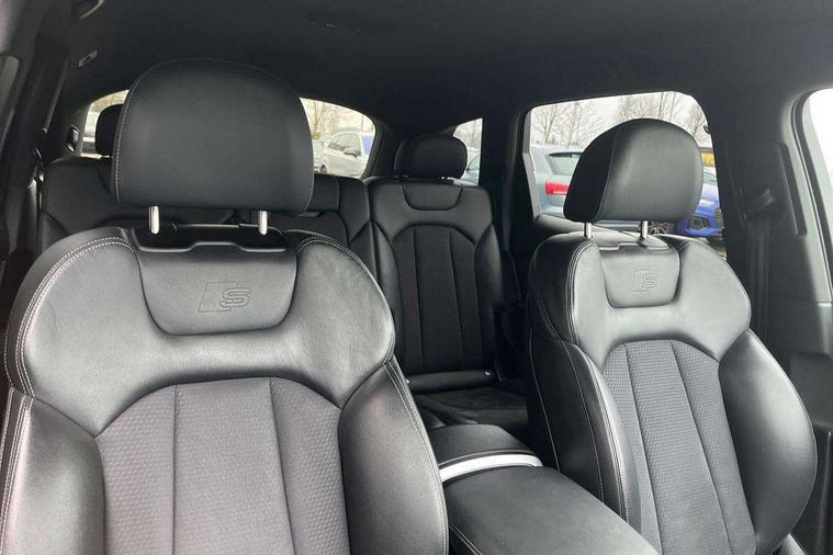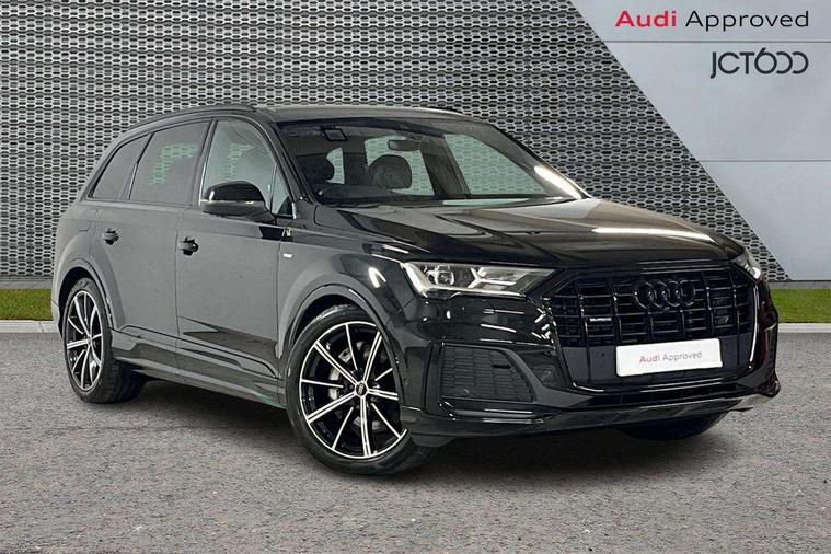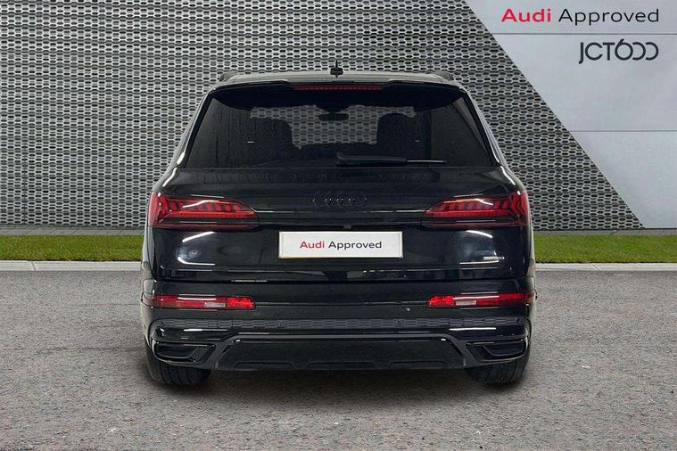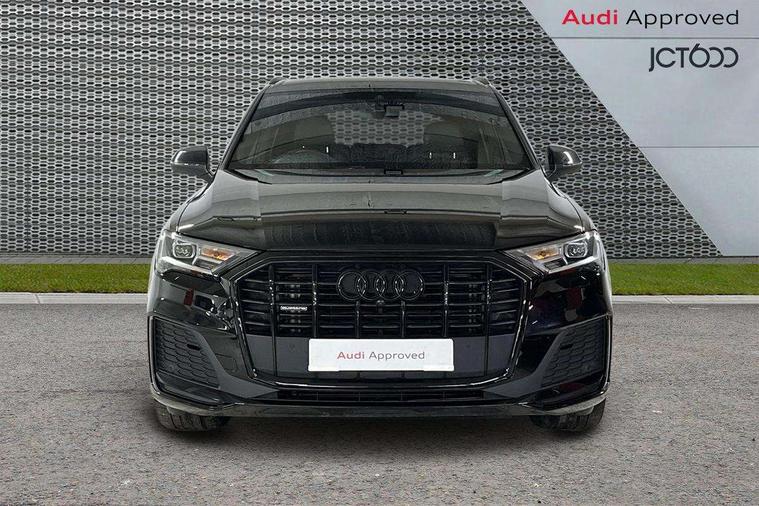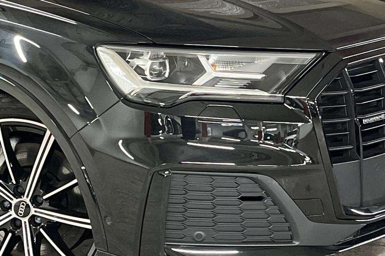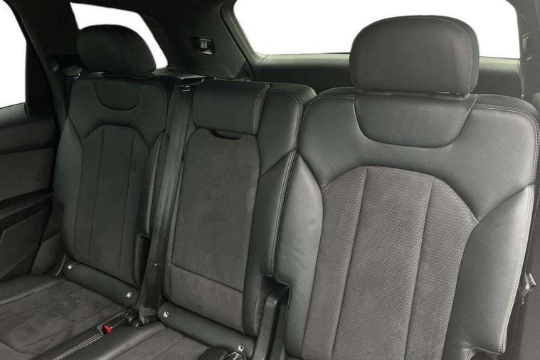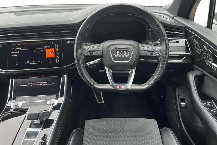 Audi connect safety and service (e-call), Audi connect with Amazon Alexa Integration, Audi drive select (Auto, Comfort, Dynamic, Efficiency, Individual, Off-road and All road), Bluetooth interface, Camera based traffic sign recognition, Electromechanical steering, MMI navigation plus with MMI touch screens includes 10.1" and 8.6" screens with haptic feedback, Natural voice recognition, Parking system plus with 360 degree display (front, rear and side sensors) - acoustic and visual park assist system, Power operated tailgate, Rear view camera, Smartphone interface includes wireless Apple carplay/Android Auto, Start/stop system, 48V Mild hybrid technology, Adaptive air sports suspension, Quattro all wheel drive with self locking centre differential, Audi music interface - front 2 USB-C ports with charger and data functions, Audi sound system with 6 channel amplifier, 180 watt amplifying capacity and 10 loudspeakers including subwoofer, DAB digital radio module, 3rd brake light, Audi matrix LED headlights with dynamic front and rear indicators, Auto dimming frameless rear view mirror, Black roof rails, Bumpers in contrast paint scandium grey finish includes door trim and wheel arch trim strips, inlays in door strip contain quattro embossing, Electrically adj heated/folding + automatically dimming exterior mirrors with memory + automatic kerb side function for passenger side exterior mirror, Heat insulating glass in windshield, Integrated LED indications in door mirrors, LED daytime running lights, LED rear tail lights, Privacy glass - dark tinted rear and rear side windows from B-pillar backwards, Rear side wing doors, Rear wiper, 2 seat bench in 3rd row, 3 seat bench in 2nd row, 4 zone deluxe automatic climate control, 7 seat layout with ISOFIX points for the front passenger seat and rear passenger seat, Black cloth headlining, Comfort front centre armrest, Electric adjustable front seat with 4 way lumbar support, driver memory functionality, Folding rear seats, Front head restraints, Front/rear floor mats, Heated front seats, Illuminated door sill trims with S logo, LED interior ambient lighting, Luggage compartment cover, Luggage compartment sill protection in stainless steel, Rear head restraints, Single front passenger seat, Stainless steel pedals, Sunvisors with illuminated vanity mirrors, Titanium black styling pack - Q7/SQ7, 3 point seatbelts on all rear seats, Audi pre sense front, Child locks on rear doors, Driver and front passenger, front side and curtain airbags, Electromechanical parking brake, Electronic Stabilisation Control (ESC) including ABS, ASR and EDL, Extended pedestrian protection measures, Hill hold assist, Seatbelt monitoring, Tyre pressure loss indicator, Warning triangle and first aid kit, Anti theft alarm, Anti-theft wheel bolts and wheel loosening detection, Keyless Go, Remote central locking, Polished oak trim with grey finish inlay, Tool kit, Tyre repair kit,