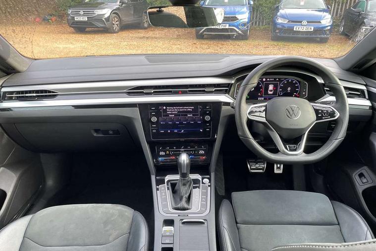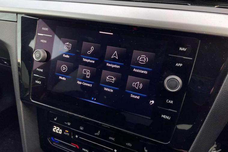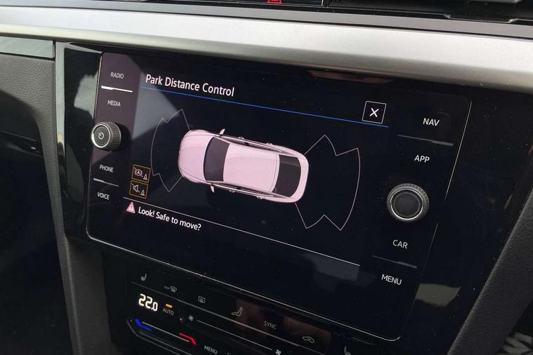 Adaptive cruise control (ACC) with speed limiter, front assist (reacting vehicles pedestrian and cyclists) and follow to stop, App connect including wireless Apple CarPlay, Camera for warning system, Digital cockpit with 10.25" high resolution TFT display screen with customisable menus and information, Driver alert system with fatigue detection, Driver profile selection including ECO function, Dynamic road sign display, eCall - Emergency call service for SOS calls to emergency response, Emergency assist, Hands free boot opening, Press and drive key, Progressive steering, Speedo and rev counter, electronic odometer, trip, service interval display and exterior temperature gauge, Travel assist - Lane keeping assist and traffic jam assist, Voice activation for telephone and navigation, Start/stop function with battery regeneration, Premium USB cable in choice of either Apple or Android smartphone compatibility, Auto dimming interior rear view mirror, Automatic headlights, Body colour door handles, Body colour side skirt, Body coloured top and matt black lower door mirrors with integrated indicators, Chrome plated radiator grille inserts and light switch surrounds, Chrome side window surrounds, Dynamic headlight range control, Electric folding door mirror, adjustable, heated with front passenger exterior mirror lowering function, Front and rear electric windows, Front and rear stainless steel door sill protection, Front windscreen washers and wipers with 4x interval delay, Heat insulating side and rear windows, Heated rear windscreen, Heated windscreen washer jets, High level 3rd brake light, LED rear combination lamp with dynamic indicators, LED rear number plate lights, Panoramic sunroof with tilting and sliding including integrated roller blind, R Line design body coloured bumpers, Rain sensor, Rear fog lamp on one side and reversing lamp on both sides, Rear side wing doors, Rear tinted glass from B pillar backwards, approx 65% tinted, Rear wash/wipe, Tailpipes behind rear bumper, 12V socket in front centre console, 12V socket on rear of front centre armrest, 3 rear head restraints, 3 seat bench in 2nd row, 30 colours options interior ambient lighting, 60:40 split folding rear seat backrests with centre armrest, Air care climatronic 3 Zone electronic air conditioning with automatic air recirculation, Black roof lining, Chrome trim on upper and lower air vents extending across cockpit, Driver and front passenger sunvisor with vanity mirror, Front + rear carpet mats, Front cupholders x 2, Front footwell illumination, Front sports comfort seats, Glovebox, Heated front seats, Height/reach adjust steering wheel, Isofix child seat preparation easy fit for two outer rear seats, Luggage compartment lighting, Removable luggage compartment cover, Single front passenger seat, Split folding front seat backrest with front centre armrest, Stainless steel pedals, Two LED front reading light, 3 rear three point seatbelts, ABS+EBD+Brake assist, Child locks on rear doors, Driver airbag and front passenger airbags with deactivation switch including driver knee airbags, Electronic parking brake, Electronic stability control (ESC) and Electromechanical brake booster, Front disc brakes, Front side airbags with curtain airbags, Hill start assist, Pro active occupant protection to detect critical situations with elevated accident potential from the front, Rear disc brakes, Three point height adjust front seatbelts + pretensioners, Two tone horn, Tyre pressure loss indicator, Warning buzzer for seatbelts if unfastened, Warning triangle, Alarm with interior protection with deactivation via infotainment system, Electronic engine immobiliser, Keyless entry system including start/stop button on centre console, Aluminium decorative inserts, Chrome trim on lower doors in front and rear, Leatherette insert on door and side trim panel in foam film, Piano black decorative inserts in centre console,