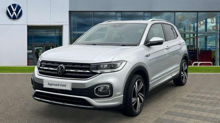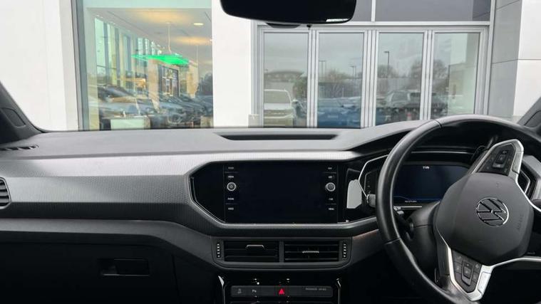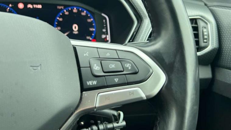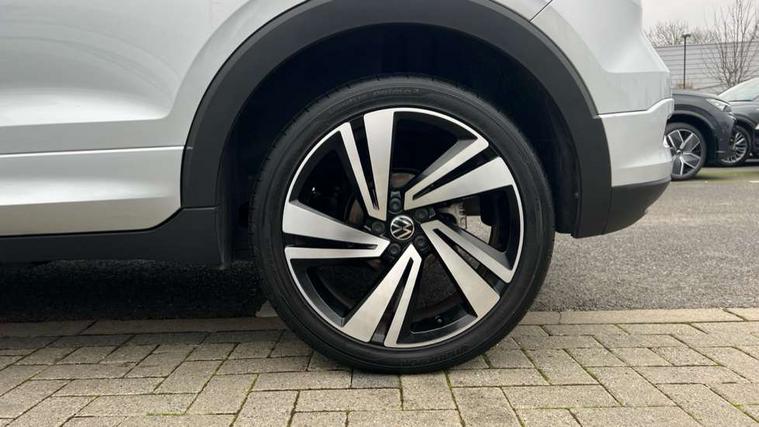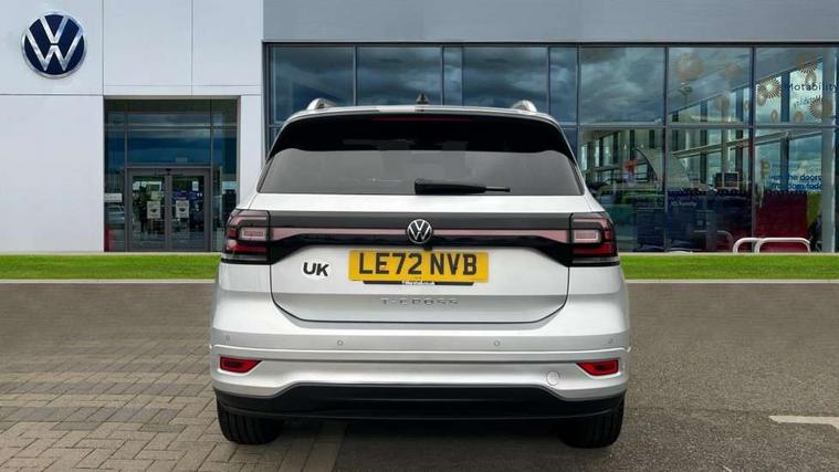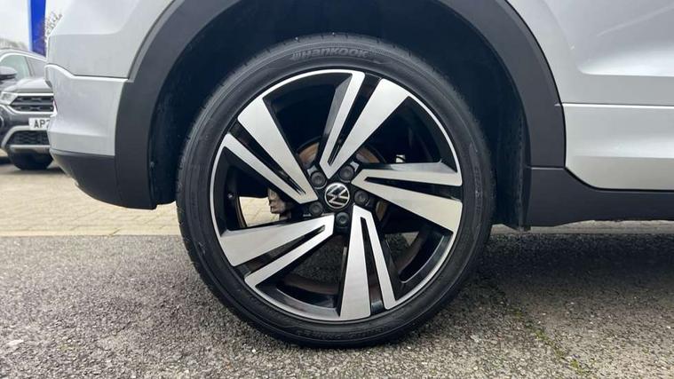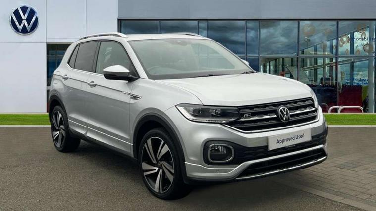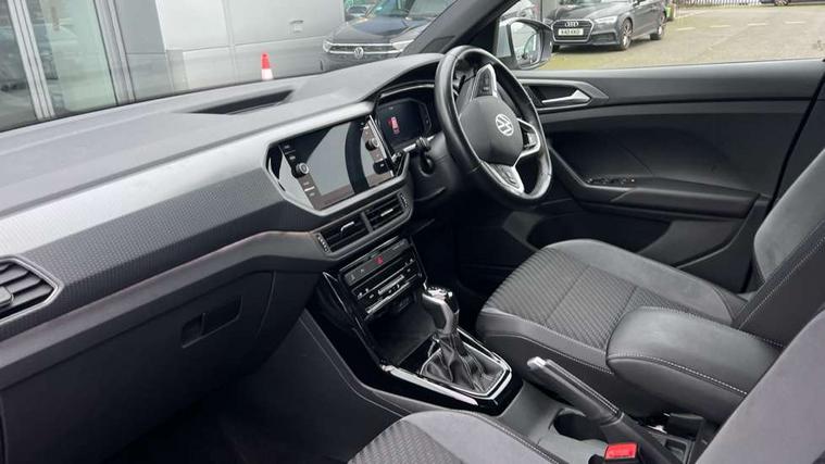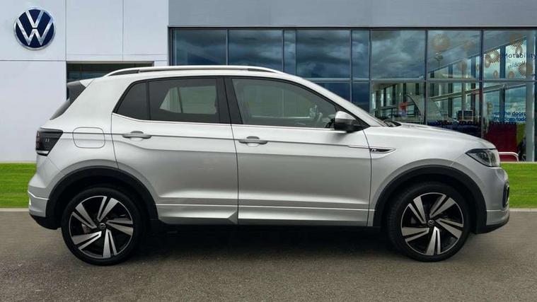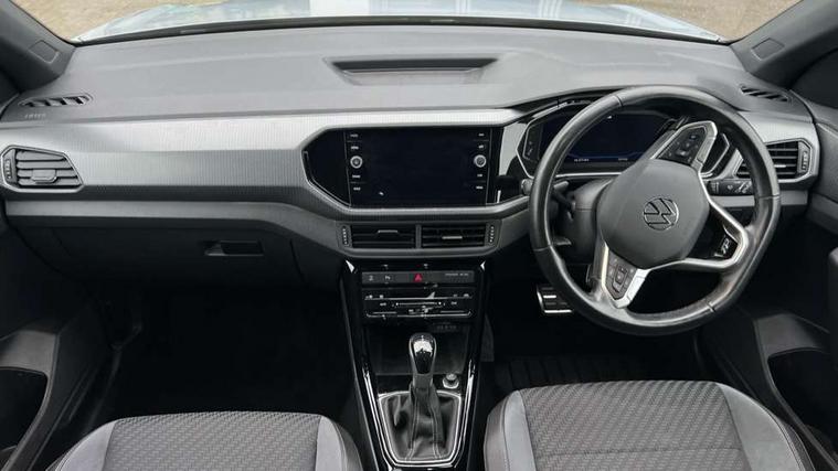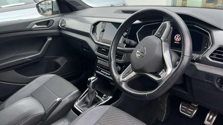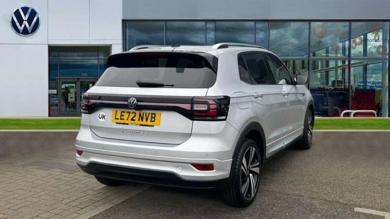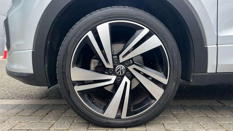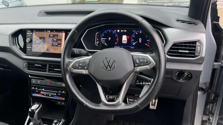 'Lights On' Reminder warning buzzer, 2D/3D map view, Active info display - 10.25" High resolution TFT dash display screen, Adaptive cruise control including front assist, forward collision warning, autonomous emergency braking, speed limiter, Blind spot monitoring, Bluetooth telephone and audio connection for compatible devices, Car information display, Driver alert system, eCall emergency call system, Lane assist, Low washer fluid warning light, Multifunction computer with visual gear change recommendation for fuel consumption, Operating permit alteration, Power assisted speed sensitive steering, Speed limit display, Speedo, rev counter, electronic odometer, trip, service interval display, exterior temperature and fuel gauge, Stop/start system, Warning sound and light for doors and tailgate open, Warning sound and light for front seatbelts unfastened, We connect plus preparation, Wireless Car net app connect with Apple CarPlay, combined functionality of Apple CarPlay/Android Auto and MirrorLink, Battery regeneration during braking, Misfuel prevention device, 2x USB connection with USB charging sockets and in rear centre console, DAB Digital radio receiver, Diversity antenna for FM reception, Multi device interface (MDI) with USB connection, Music playback - MP3, WMA and AAC files, Premium USB cable for Apple or Android smartphone compatibility, Simultaneous pairing of 2 compatible mobile devices, SMS Functionality, Three route options - Fast, Short, Eco, Title and cover art display, Automatic hazard lights activation under emergency braking, Body colour door handles, Body colour door mirrors with integrated indicators, Body colour rear roof spoiler, Body coloured bumpers, Dusk sensor + automatic driving lights, Electrically foldable, adjustable and heated door mirrors with reverse activated kerb view adjustment on passenger's side, Front and rear electric windows, Front fog lights with static cornering function, Galvanised body, Heated rear window, LED third brake light, Lower door sills and door pillars in black, Radiator grille with chrome trim and chrome bezel front fog lamp, Rear fog light on one side, reversing light on both sides, Rear lights incorporating LED technology, Rear side wing doors, Rear tinted glass 65% approx light absorbing from B pillar backwards, Rear window aerial, Rear windscreen washer and wiper with interval delay, Reflectors in all doors, Silver roof rails, Stainless steel door sill protection, Tailgate with integrated roof spoiler, Unique R Line badging, Windscreen wipers/ intermittent wipe + 4 position delay, 12V Accessory socket in centre console, 2 Front and rear reading lights incorporating LED technology, 2 Zone electronic climate control with automatic air recirculation, 3 rear head restraints and 3 rear three point seat belts with ECE label, 3 seat bench in 2nd row, 60/40 split folding rear seat backrest, Ambient lighting and sourround lighting, Black headlining, Branded points of interest, Brushed stainless steel pedals, Carbon flag cloth upholstery, Drawer under drivers seat, Driver and front passenger sunvisor with vanity mirror, Driver's sunvisor with ticket holder, Dust and pollen filter, Front and rear carpet mats with contrast stitching, Front centre armrest with storage compartment, Front footwell illumination, Front seat back storage pockets, Front seat R Line logo with rear seat backrest, Front sports seat with height and lumbar adjustment, Glovebox, Heating and fresh air system with 4 stage blower, Height/reach adjust steering wheel, Instrument lighting white adjustable panel illumination, Interior light with delay, Isofix child seat preparation for 2 rear child seats, Leather trimmed three spoke multifunction steering wheel with contrast stitching and aluminium inserts with R Line logo, Luggage compartment cover, Luggage compartment lighting, Moveable and foldable Rear bench seat, Scuff plates in door apertures, Steering wheel paddle shift, Storage compartment in drivers and front passengers door, Variable boot floor, R Line styling pack - T-cross, 3-point seat belts in front with electric tensioner + height adjustment, Anti-lock Braking System (ABS) with Hydraulic Brake Assist (HBA), Automatic post collision braking system, Driver and front passenger safety-optimised head restraints, Drivers and Front Passengers airbags with front passengers airbag deactivation switch, ESC with EDL, ASR, EDTC and trailer stabilisation function, Front and rear curtain airbags, Front seat side impact airbags, Hill start assist, Pre crash preventive occupant protection, Proactive passenger protection system in combination with front assist, Rear door child safety locks, Rigid safety cell with front and rear crumple zones, Single torn horn, Tyre pressure loss indicator, Volkswagen roadside assistance, Alarm with interior protection and deactivation via infotainment system, Child security locks in rear doors, Electronic engine immobiliser, Remote tailgate unlocking using key fob, Race decorative inserts in dash and doors, 18" Nevada black alloy wheels, Breakdown kit,