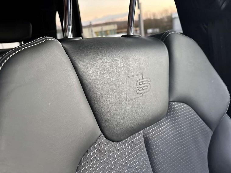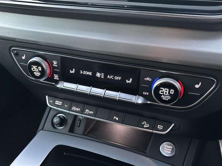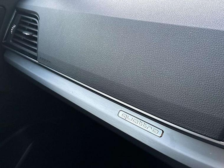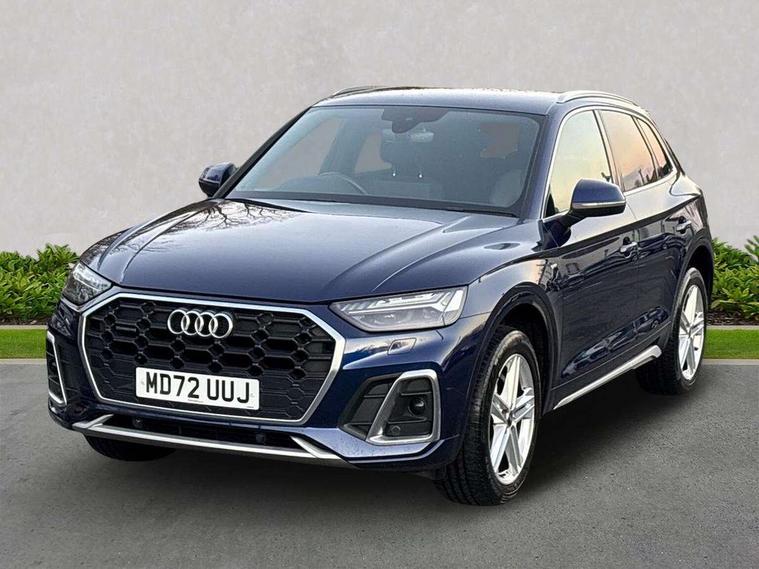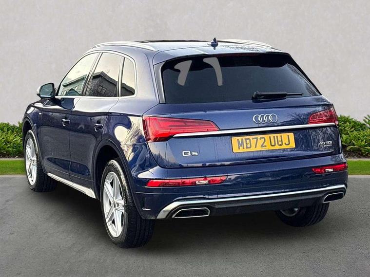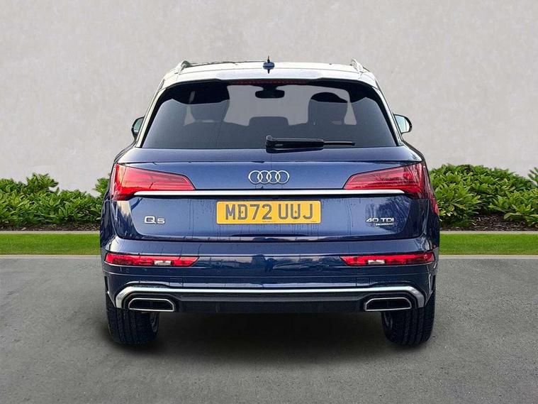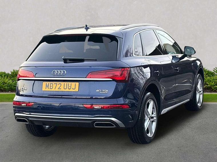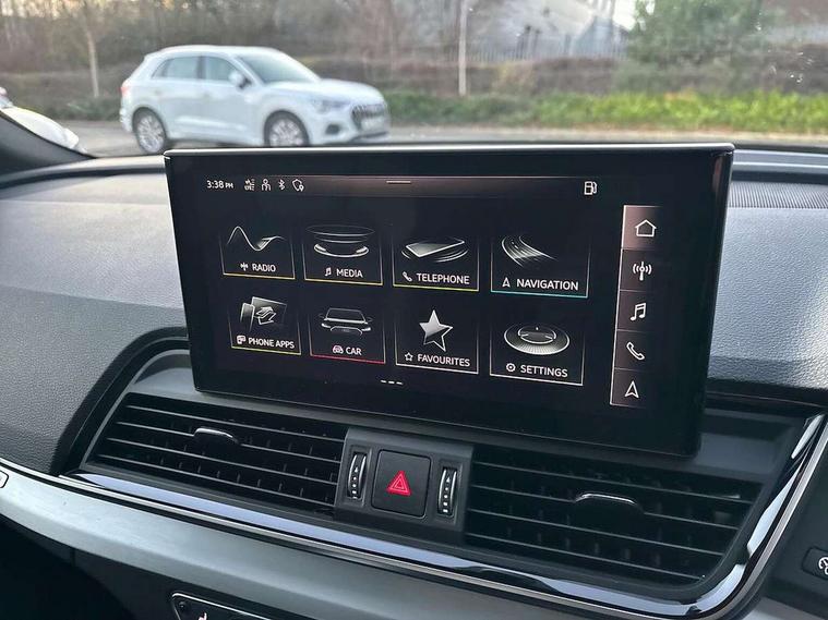 Acoustic front and rear parking sensor, Audi connect safety and service (e-call), Audi connect with Amazon Alexa Integration, Audi drive select, Audi virtual cockpit plus with 12.3" screen and three different layout designs, Audi wireless smartphone interface, Automatic start-stop system with coasting functionality and efficiency programme, Bluetooth interface, Electro - mechanical power assisted steering, MMI navigation plus with 10.1" touch screen, Power tailgate, Reversing camera, Service interval indicator, Voice control system with Audi hotword activation "Hey Audi", Diesel particulate filter, Quattro on demand, S line sports suspension, 2 x USB charging port with aux input socket, 8 loudspeakers, DAB Digital radio, Acoustic windscreen, Aluminium roof rails, Audi matrix LED headlights with dynamic front and rear indicators, Auto dimming door mirrors, Auto dimming frameless rear view mirror, Automatic headlight adjustment, Automatic headlights and windscreen wipers, Body colour bumpers, Body colour door mirrors, Body colour rear diffuser with matt aluminium silver surrounds, Body colour underbody protection, Chrome plated exhaust trims, Daytime running lights, Door sills in Selenite silver, Electric adjustable/heated/folding door mirrors, Front air inlet surrounds in aluminium, Front and rear electric windows, Front radiator grille in honeycomb design, Headlight washers, High level LED brake light, Lower bumpers painted in contrast Manhattan grey, Rear chrome trim strip below lights, Rear privacy glass and rear side windows, Rear side wing doors, Rear wiper, Roof bars, S Line badges on the front wings, S Line front and rear bumpers, S Line rear spoiler, S Line side skirts, 3 rear headrests, 3 spoke leather multifunction steering wheel with S badging perforated leather grips, 40:20:40 split folding 3 rear bench seat in 2nd row with rear centre armrest, Black cloth headlining, Comfort front centre armrest, Contrast stitching on seats, steering wheel and gear lever gaiter, Deluxe 3 zone electronic climate control, Front/rear floor mats, Gear lever in black leather, Heated front seats, Height adjustable front head restraints, Height/reach adjustable steering column, Illuminated door sill trims with S logo, Luggage compartment cover, Manual seat adjustment with 4-way electric lumbar support, Removable luggage compartment floor, Single front passenger seat, Stainless steel pedals, Sunvisors with vanity mirrors, High gloss pack - Q5, LED interior light pack - Q5, 3 point seatbelts on all seats, 6 airbags - Driver, front passenger, curtain and side airbags, Electrically operated child locks on rear doors, Electromechanical parking brake, Electronic stabilisation control including ABS, ASR and EDL, First aid kit with warning triangle and vests, Front passenger airbag deactivation, Hill descent control, Hill hold assist, ISOFIX child seat mounting for front passenger seat and ISOFIX child seat mounting with Top Tether for outer rear seats, Multi collision brake assist, Pop-up bonnet for pedestrian protection, Pre sense city, Seat belt force limiter, Seatbelt monitoring, Tyre pressure warning, Anti theft alarm, Anti-theft wheel bolts, Keyless Go access/ignition system, Remote central locking, Air vents inserts and centre console in gloss black, Matt brushed aluminium inlays,