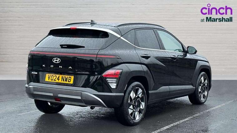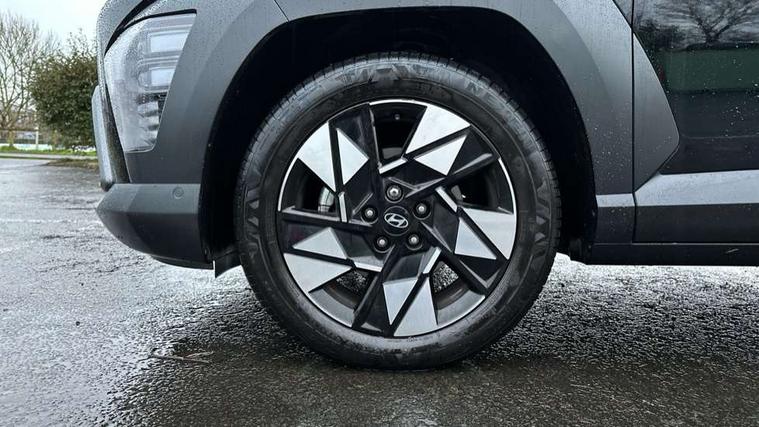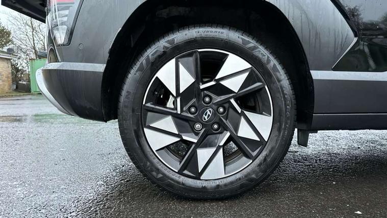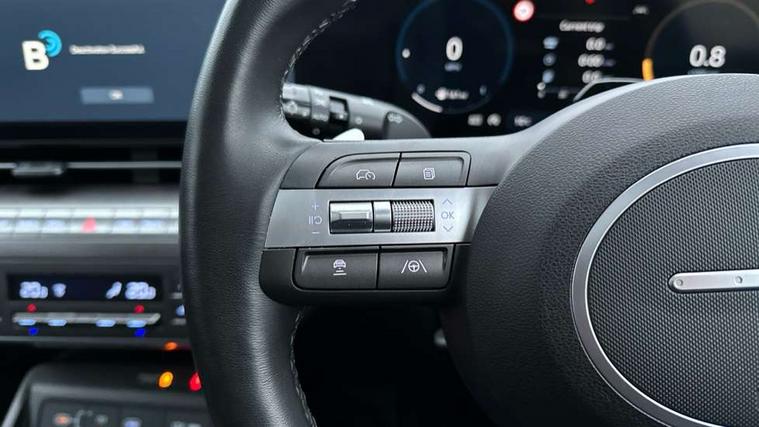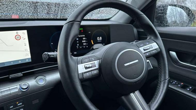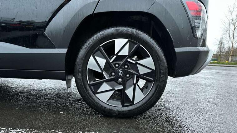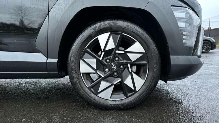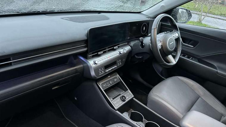 12.3" touchscreen centre console display satellite navigation with bluelink, live services and mapcare, Blind spot collision avoidance assist, Blind spot view monitor, Bluetooth connectivity with voice recognition, Digital clock, Driver status monitor (DSM), Driver supervision instrument cluster with 12.3" LCD display, eCall emergency call system, Feature on demand - Enabled, Forward collision avoidance assist (FCA 1.5) - Car, pededstrian, cycle and junction turning, Front parking sensor, HDA - Highway Drive Assist Level 1.5, Height adjustable power tailgate, Intelligent speed limit assist, Lane follow assist, Lane keep assist, Leading vehicle departure alert (LVDA), Parking Collision Avoidance Assist-Reverse (PCA-R), Parking distance warning - side, Parking system with rear camera and guidance system, PAS, Rear cross traffic collision avoidance (RCCA), Rear parking sensor, Roadside assistance, Safe exit warning (SEW), Smart cruise control with stop and go functionality, Surround view monitor, Windscreen washer fluid sensor and warning indicator, Wireless phone charging pad, Wireless Smartphone Integration includes Apple CarPlay and Android auto, 2 front USB C and 2 rear USB C charging points, Bose Premium Audio system with 7 premium speakers + subwoofer, DAB Digital radio, Steering wheel audio, phone and cruise controls, Auto dimming rear view mirror, Automatic headlights with dusk sensor, Automatic windscreen wipers with rain sensor, Black painted wheel arch Inserts, Body colour bumpers, Body colour exterior door handles, Body coloured door mirrors, Door mirror LED indicator lights, Electric front windows with anti-trap mechanism and one touch control, Electric rear windows, Electric sunroof, Electrically adjustable and heated door mirrors, Horizon centre LED DRL, LED projector headlights, LED upper and lower rear lights, Power folding door mirrors, Privacy glass - Rear windows and tailgate, Rear side wing doors, Rear skid plate - silver, Rear spoiler with integrated LED brake light, Rear wiper, Roof rails, Solar glass with front door glass and windscreen, Tinted glass in front and rear doors, Windscreen auto defog function, 12V power outlet in front console, 2 zone climate control, 3 seat bench in 2nd row, 40/20/40 split folding rear seat, Adjustable head restraints, Ambient lighting, Driver and passenger front seat pockets, Driver's seat electric adjustments, Driver's seat lumbar support, Driver/passenger sunvisors and illuminated vanity mirrors, Floor mats, Front passenger's seat electric adjustments, Heated front seats, Heated rear seats, Heated steering wheel, Height/reach adjustable steering column, Isofix rear child seat fastenings, Leather upholstery, Leather wrapped steering wheel, LED centre interior light, LED front interior light, Luggage compartment LED lightning, Luggage net, Luggage shelf, Metal paint effect interior door handles, Parcel shelf, Rear centre armrest, Rear centre console with air vents, Shift by wire SBW, Single front passenger seat, Ventilated front seats, Vertical adjustment rear head restraints, Trailer wiring package - Kona, Airbag - front, front side, curtain and centre front airbag, Anti-lock brake system (ABS), Childproof rear door locks, Downhill brake control, EBD + Brake Assist, Electric parking brake, Electronic stability control, Fasten seatbelt reminder, Fixed 3 point for second row centre passenger seatbelt, Front seatbelt pretensioners, Height adjustable front seatbelts, Hill start assist control (HAC), Passenger airbag deactivate switch, Rear seat alert, Traction control, Tyre pressure monitoring system, Alarm/immobiliser, Deadlocks, Folding key, Locking wheel nuts, Remote central locking, Smart key with keyless entry and engine start/stop button, Five year annual vehicle health checks, 18" Alloy wheels, Temporary mobility kit (TMK),