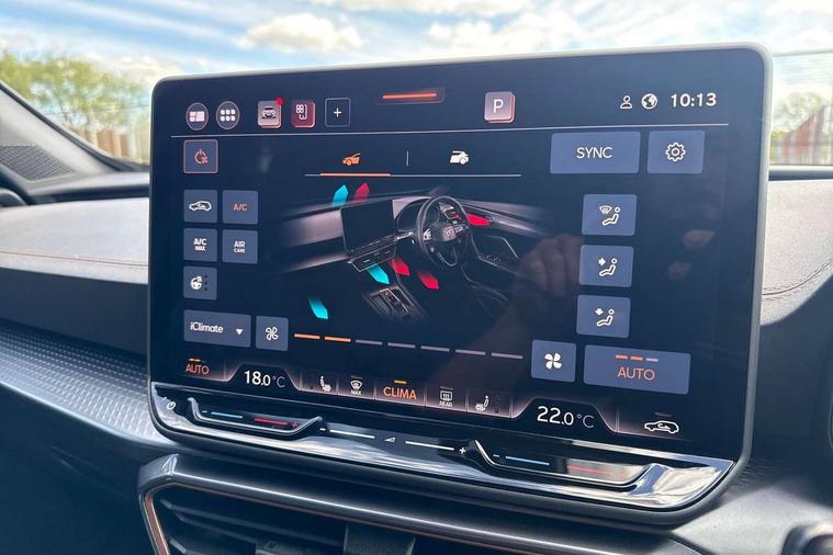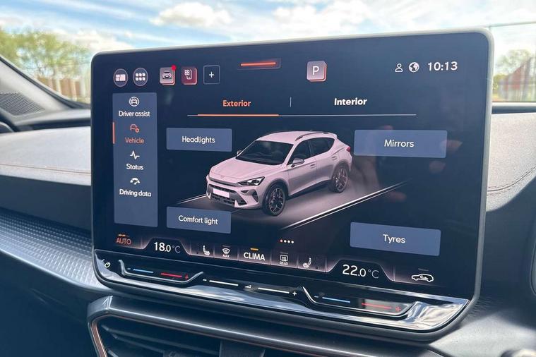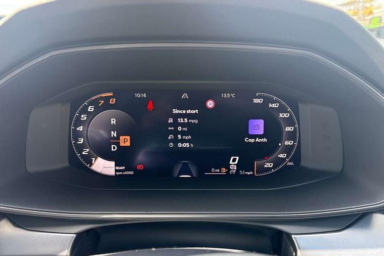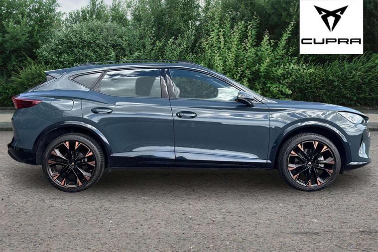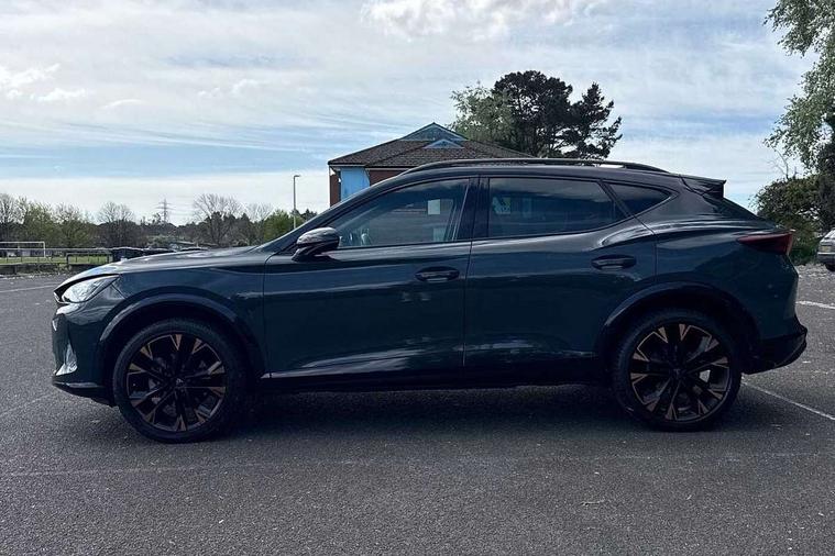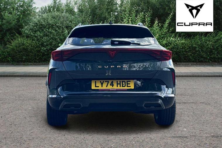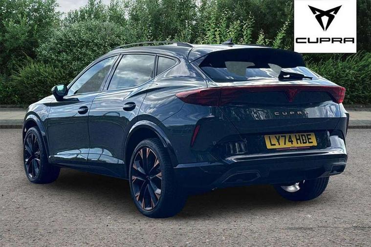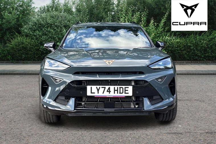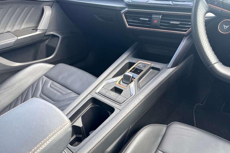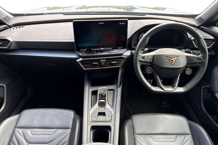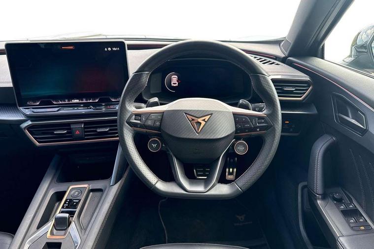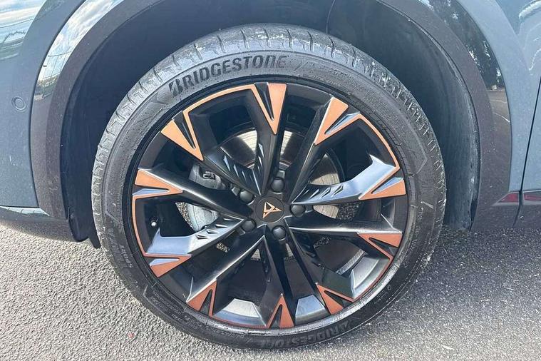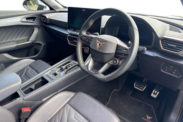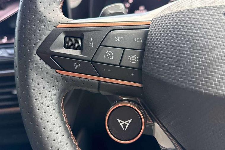 10.25" digital cockpit and configurable dashboard, Adaptive cruise control with follow-to-stop and speed limiter, Advanced driver alert system, Advanced lane assist with semi-automatic vehicle control in a medical emergency and traffic jam assist, Driving profile selection, Dynamic road sign display, Emergency steering support with turn assist, Forward collision warning with automatic braking, Full link phone integration, Intelligent park assist, Progressive steering, RPM, trip computer, outside temp gauge, instrument light brightness, low fuel warning light, lights on reminder, gearshift indicator, Service interval indicator, Side and exit assist, Start/stop system with regenerative braking, Top view camera, Virtual pedal and electric tailgate, Voice control system, Wired Android Auto, Wireless apple carplay, Wireless phone charger, CUPRA sport suspension, Electronic locking differential and dynamic traction support, 2 front and 2 rear USB type C sockets, Media system with navigation, 12.9" touchscreen display, voice control, DAB, steering wheel mounted controls, Auto dimming rear view mirror, Body colour door handles, Body coloured bumpers, Dark grey wing mirror, Daytime running light with automatic headlight control and coming home feature, Door panel ambient lighting, Dynamic headlight range control, Electric front/rear windows, Electrically adjustable heated and folding door mirrors with memory function, Gloss black roof rails and window surrounds, High beam assist, LED 3rd brake light, LED front fog lamps with cornering function, LED Headlights, LED Taillights with dynamic indicator, Rain sensing wipers, Rear diffuser with black simulated exhaust pipes, Rear fog lights, Rear side wing doors, Rear wash/wipe, Tinted rear windows, Welcome lights (within exterior mirror housing), 12V socket, 2 front and 2 rear reading lights, 3 seat bench in 2nd row, 60/40 split rear bench seat with armrest and mechanical seat release, Black headlining, Black interior roof lining, Cupra sports pedals, Dust/pollen filter, Electrically adjustable front seats with lumbar support and memory function, Front and rear head restraints, Front centre armrest, Heated front seats, Heated supersports multifunction leather steering wheel with satellite buttons and gear shift paddles, Height/reach adjust steering wheel, Illuminated aluminium doorsteps, Illuminated interior front door sills, Illuminated sunvisor with mirror, Isofix, Leather dashboard, door insert and side trim panel, LED smart wraparound lighting, PVC/Leather upholstery, Satellite steering wheel, Single front passenger seat, Storage pockets on rear of front seats, Three zone climate control with control panel in rear, Variable luggage/load compartment floor, 3 point seatbelts on all rear seats, ABS, Brake control system - ESC and brake booster, Child proof door locks, Driver and front passenger airbags with front passenger airbag de-activation, Electronic parking brake, Front and rear disc brakes, Front side curtain airbags, Hill hold control, Pre-crash front and rear seat belt tensioner, window closure and hazard lights, Public e-call, Seat belt reminder for front and rear seats, Tyre pressure monitoring system, Anti theft alarm system, KESSY Advanced - Keyless start, keyless entry with SAFELOCK, Locking wheel bolts, Copper and aluminium interior detailing,