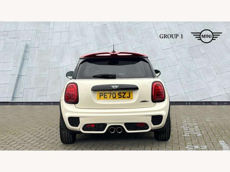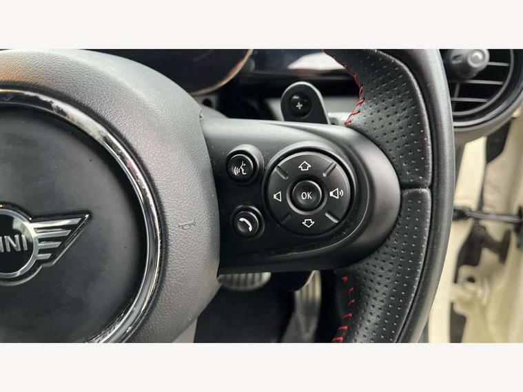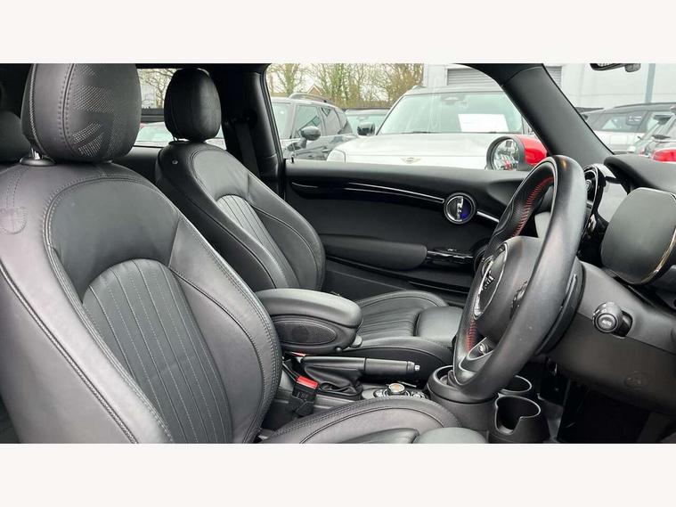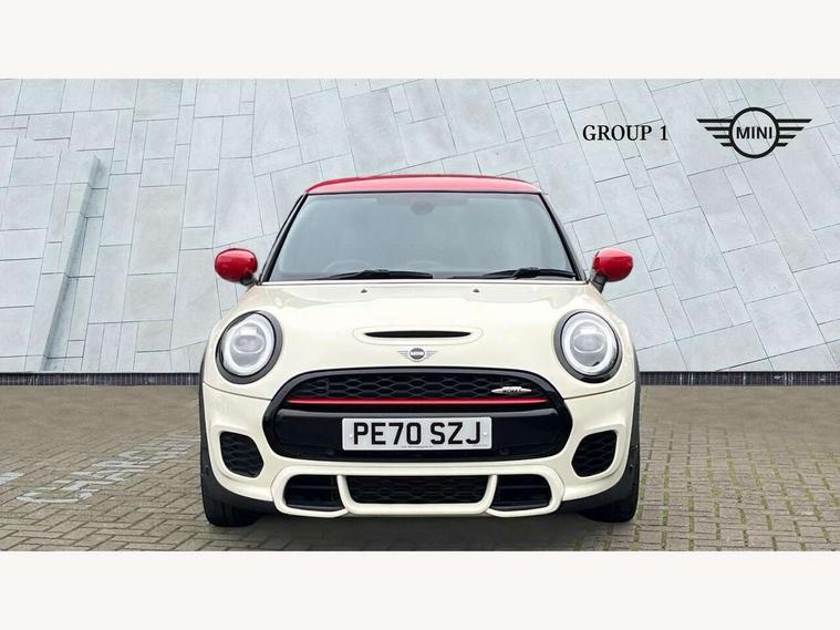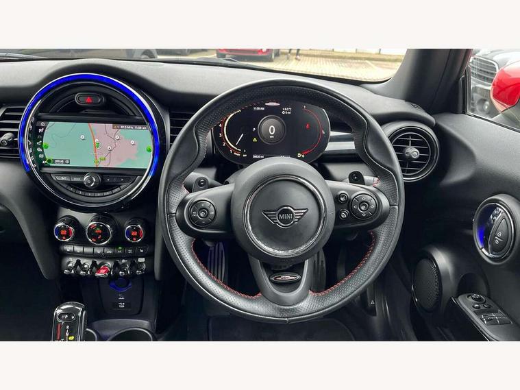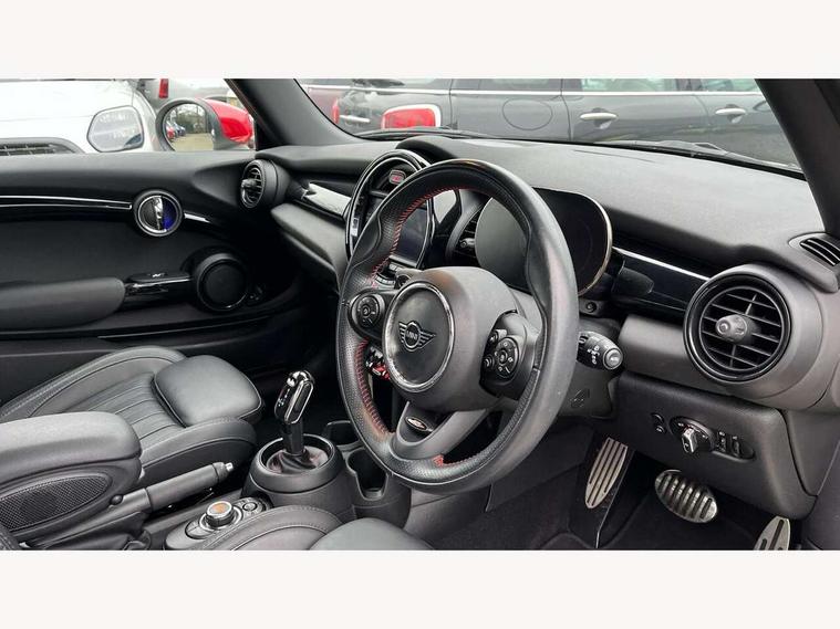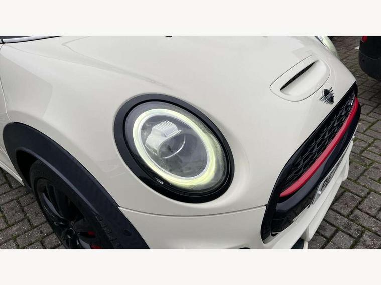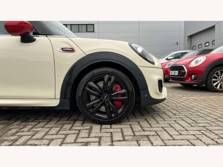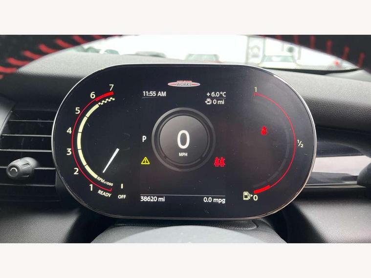 Automatic start/stop function with brake energy recuperation, Compatible mobile phone bluetooth with audio streaming, Electro-mechanical speed dependant steering assistance, Instrument cluster, MINI Driving Modes - centre toggle switch to control driving setting (sport, mid and green), Mini E-call, MINI TeleServices, On board computer, Service interval indicator, Double Vanos system, Eight speed steptronic sport transmission, with gearshift paddles, Fully variable valve control, Gear change indicator display, High precision injection, Performance Control, 6.5" touchscreen with LED ring, FM tuner and DAB digital radio, Automatic headlight activation switch, Bonnet scoop, Chrome door handles, Chrome plated fuel cap, Dynamic brake lights, Electric front+rear windows, Heated rear window, Heated windscreen washer jets, John Cooper Works - aerodynamic kit (front and rear apron, spoiler), front and rear sport bumpers and part-painted side sills with door sill finishers, John Cooper Works rear spoiler, LED headlight with closed ring and daytime driving lights, Metal look door sill finishers, Piano black border radiator grille with honeycomb structure in black matt and John Cooper Works logo with upper individual grille strut in chilli red, Piano black exterior, Rain sensor window wipers, Rear fog lights, Rear LED lights with union jack design, Rear window wiper, Side scuttle with MINI John Cooper Works logo in black high-gloss with red border, Sun/heat protection glass, Two central exhaust tailpipes with chrome finisher, White indicator lenses, 12V Accessory socket in centre console, 4 lashing eyes in luggage compartment, 60/40 split folding rear seat, Carbon Black colour line, knee roll and door armrests, Chrome interior highlights, Cupholders, Front and rear head restraints, Front and rear isofix with front passenger airbag deactivation, Glove compartment, Height and length steering column adjustment, Interior lighting with 12 basic colours selectable via toggle switch in roof, Internal chrome door handles, John Cooper Works Logo in seat, John Cooper Works sport leather steering wheel, Leather gearshift lever and handbrake gaiters, LED reading lights, vanity mirror lights, front foot well light and spotlight on front seats, Manual air conditioning, Mechanical seat adjustment, driver seat height adjust, forward/back and front seats backrest, Mini logo projection on floor from drivers exterior mirror, Multifunction steering wheel, Stainless steel pedals with rubber inserts, Storage compartments in doors, Sunvisors with vanity mirrors, 17" front sport brake with 4 piston fixed calliper, 3 point seatbelts on all four seats, 6 Airbags - front, side, head and seat belt tensioners, Anti-lock braking system (ABS), DSC - Dynamic Stability Control, Front and rear disc brakes, Hill start assist, Red brake callipers with John Cooper Works logo, Two tone horn, Tyre pressure monitoring system, Alarm system with tilt sensor, monitoring doors, bonnet interior and tailgate, Electronic vehicle immobiliser, Start/stop toggle with keyless go, Tool kit,