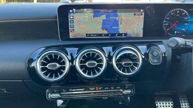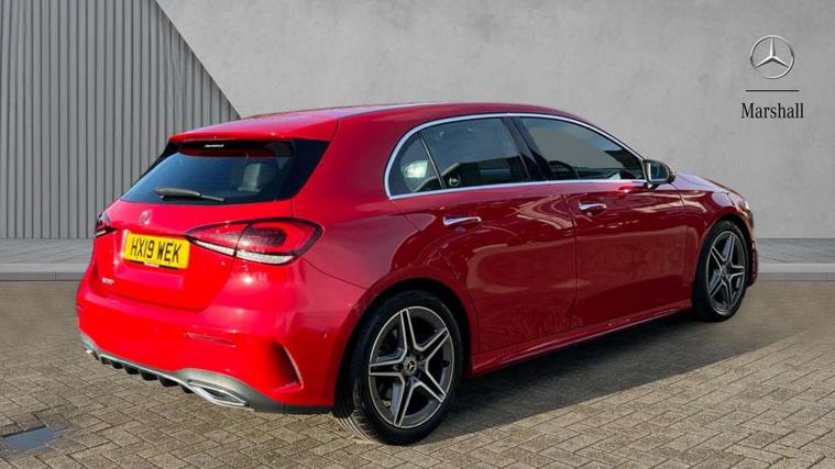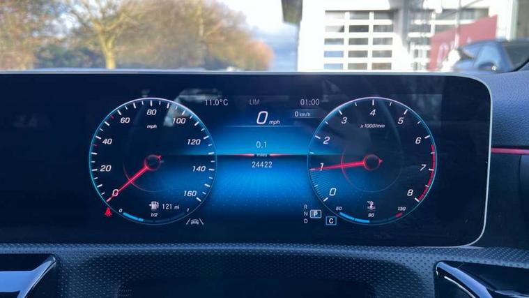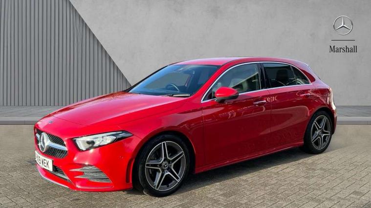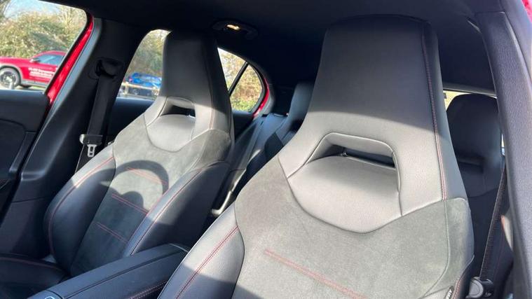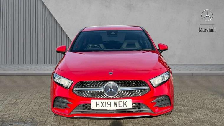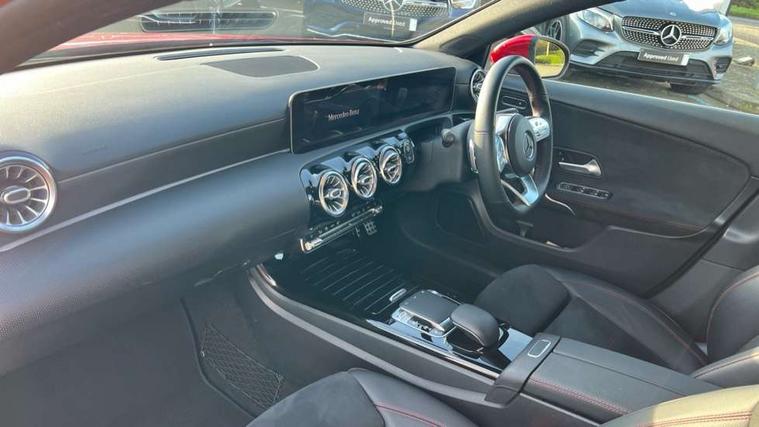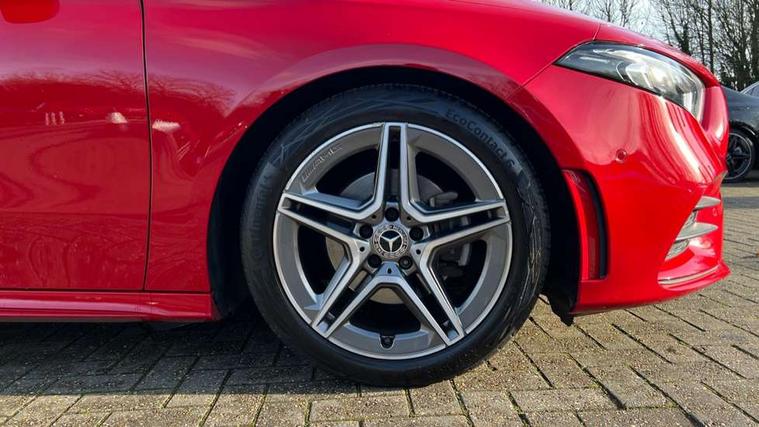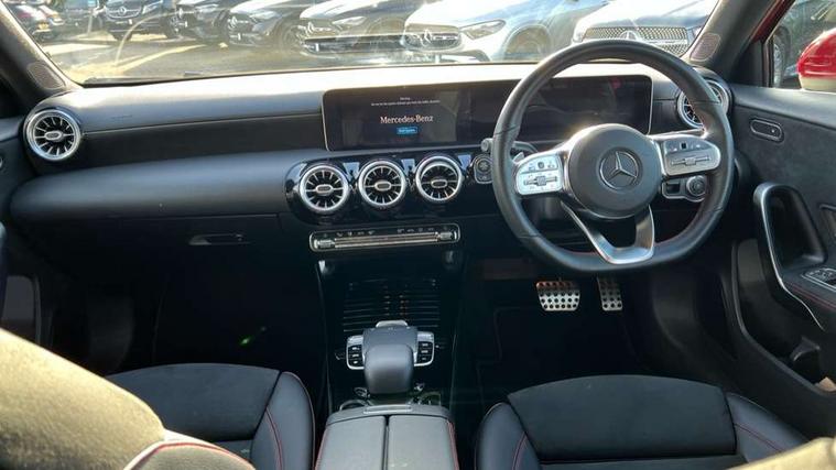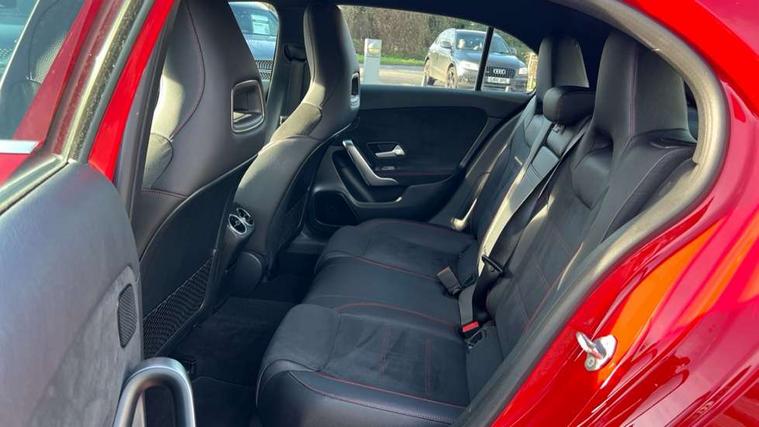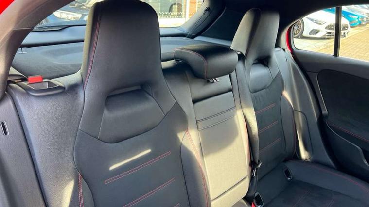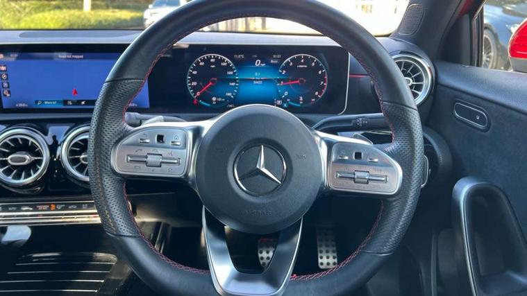 10.25" Digital instrument cluster display screen, 10.25" media display, 180 degree rear view camera with parking guidelines, Active lane keep assist, Active park assist with parktronic system including front and rear parking sensors, Attention assist, Brake pad wear indicator warning light, Direct steering, Direction indicators with lane change function, DYNAMIC SELECT with a choice of driving modes (ECO, Comfort, Sport, Sport+ and Individual), Fluid level warning indicator for fuel, oil, coolant and washer fluid, Hard-disk navigation, Lamp failure indicator, MBUX multimedia system with DAB digital radio and touchpad including satellite navigation, Mercedes me connect including emergency call system, accident recovery, breakdown management and maintenance, Outside temperature gauge, Radio aerial integrated into roof spoiler, Service indicator (ASSYST), Speed sensitive power steering, Stop/start system, Trip computer, Voice activation, Lowered comfort suspension, DAB Digital radio, Dual bluetooth interface, 2 USB ports (type C), Mid-range sound system, Adaptive brake lights, AMG front, rear apron and side skirts, Blue tinted glass, Body colour bumpers, Body colour door handles, Body colour side skirt, Body coloured door mirrors, Chrome beltline trim, Diamond radiator grille with chrome pins and silver louvre + chrome insert, Electric adjustable and heated door mirrors with integrated LED side indicators, Electric front windows, Electric rear windows, Exhaust system - Twin trapezoidal tailpipes in polished stainless steel, Headlamp assist automatic headlamp activation, Heated glass rear windscreen + timer control, LED high performance headlamps with integrated LED daytime running lights, LED tail lamp, LED third brake light, Rain sensor windscreen wipers, Rear fog lights, Rear wiper, 12V socket, 3 Spoke flat bottom leather multi function steering wheel with perforated leather in grip area, 40:20:40 split folding rear seats, Air vents surround and cruciform nozzle in silver chrome, AMG floor mats with red stitching, Artico man-made leather/Microfibre Dinamica upholstery with red contrast stitching, Auto Mercedes-Benz child seat recognition sensor, Black roof lining, Brushed stainless steel sports pedals with rubber studs, Controller on centre console with chrome surround, Cup holder and stowage compartment lighting, Front centre armrest with storage compartment, Front door sills with Mercedes benz lettering, Front footwell lights, Front reading lamps, Front seat backs luggage nets, Front seat cushion length adjustment, Front signal exit lamp, Front vanity lights, Gearshift paddles on steering wheel, Handle recess/closing light, Heated front seats, Height/reach adjustable steering column, Illuminated door sills, Illuminated glovebox, Interior lighting - 64 colour Ambient lighting, ISOFIX Child seat top tethers and anchor fixings, Load securing rings in luggage compartment, Luggage compartment cover, Manual height adjustable front seats, Oddments tray lighting, Rear armrest, Rear head restraints, Rear Reading Lamps, Seat occupancy sensor for front passenger seat, Sports seats with integrated headrests, Storage compartment under load area floor, Sunvisors with illuminated vanity mirrors, Touchpad, Touchpad illumination, Twin front cupholders, Two zone thermotronic luxury automatic climate control, Mirror package - A Class, Seat comfort pack - A Class, 3 rear 3 point seatbelts, ABS with Brake Assist, Active bonnet, Adaptive brake assist with hold function and hill start assist, Black seatbelts, Brake calipers with Mercedes-Benz lettering + perforated brake discs, Childproof locks manually operated for rear doors and electrically operated for rear power windows, Crash responsive emergency lighting, Driver and passenger head and side airbags, Drivers knee airbag, Dual stage driver/passenger airbags, Electronic parking brake, ESP curve dynamic assist, ESP with ASR, Front and rear seatbelt reminder, Tyre pressure monitoring system, Warning triangle and first aid kit, Window airbags, Alarm system/interior protection/immobiliser, Keyless go lock/unlock, Remote central locking and crash sensor with emergency opening function, 18" AMG 5 twin spoke light alloy wheels in titanium grey with highsheen finish, Tirefit sealant kit,
