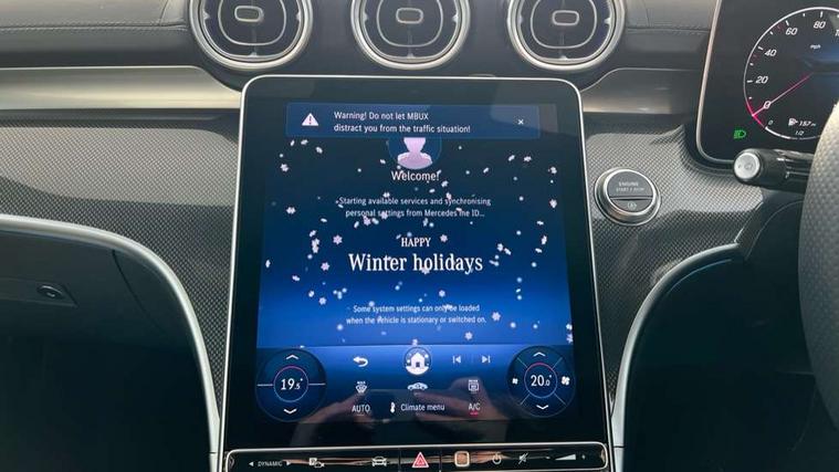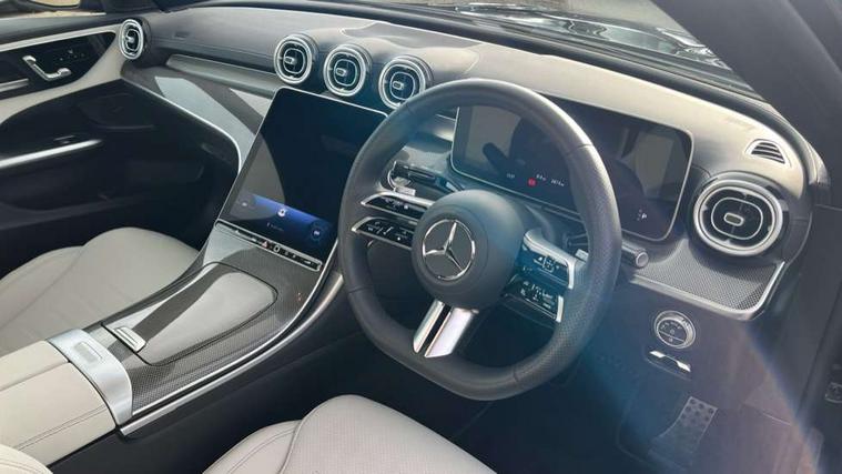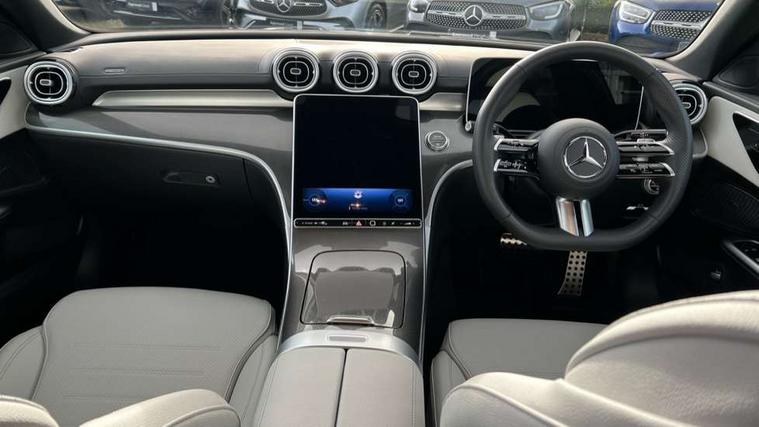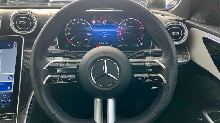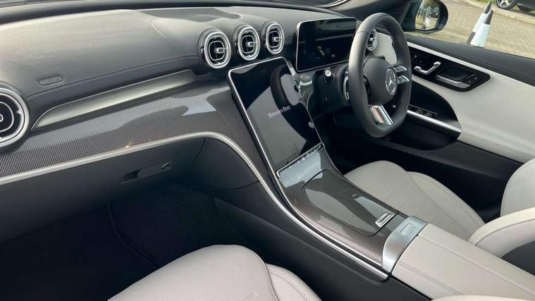 11.9" high resolution multimedia colour display, 12.3" digital instrument cluster display, Active lane keeping assist, Active parking assist with PARKTRONIC, Attention assist, Blind spot assist, Cruise control with speedtronic variable speed limiter, DYNAMIC SELECT with a choice of driving modes (Comfort, ECO, Sport, Sport+, Individual), E-call, Extended MBUX functions, Finger print sensor, Fluorescent jacket for driver, Hard disc navigation, MBUX navigation premium, Mercedes me remote services, Outside temperature gauge, Service indicator (ASSYST), Smartphone integration, Sports direct steer speed sensitive steering, Status display for rear seat belts in instrument cluster, Traffic sign assist, Wireless charging system for mobile devices, 66 litre fuel tank, 9G TRONIC 9 speed automatic transmission, Petrol Particulate Filter, Sport suspension, DAB Digital radio, MBUX multimedia system, Adaptive brake lights, Adaptive high beam assist, AMG body styling front apron, rear apron and side skirts, AMG Line exterior, Body coloured bumpers, Body coloured door mirrors, Electric windows with one touch opening/closing and obstruction sensors, Electrically adjustable and heated door mirrors, Heat insulating dark tinted glass, LED daytime running lights, LED high performance headlamps, LED Indicators, LED tail lights, LED third brake light, Radiator diamond grille with integrated Mercedes Benz star with chrome pins, Rain sensor with automatic windscreen wiper activation, Rear boot, Rear side wing doors, Two visible exhaust pipes integrated into rear bumper, 3 seat bench in 2nd row, 40:20:40 split folding rear bench seat, Ambient lighting premium, Ambient lighting with projection of brand logo, AMG floor mats, AMG line interior, Artico man-made leather upholstery, Auto Mercedes-Benz child seat recognition sensor, Black roof liner, Double cupholder in centre console, Electrically height/reach adjustable steering column, Folding rear seat backrest, Front and rear head restraints, Gearshift paddles on steering wheel, Heated front seats, Illuminated door sills with Mercedes Benz lettering, Illuminated glove compartment stowage, Multifunction sports steering wheel in nappa leather, Rear top tether child seat ISOFIX attachment, Single front passenger seat, Sports seats, Sunvisors with illuminated vanity mirrors, THERMATIC 2 zone automatic climate control, Interior light package - C Class, Memory package - C Class, Mirror package - C Class, Parking package with reversing camera - C Class, Stowage space pack - C Class, USB package plus - C Class, 3 rear 3 point seatbelts, Active bonnet pedestrian safety measure which detects an impact and raises bonnet, Active brake assist, Adaptive brake system with HOLD function and brake drying in the wet, Anti-lock braking system (ABS), Black seat belts, Brake calipers with Mercedes-Benz lettering + perforated front brake discs, Child proof door locks, Drivers knee airbag, Drivers pelvis airbag, Dual stage driver/passenger airbags, Electric parking brake, Electronic Stability Programme (ESP), Front centre airbag between driver and front passenger seats, Front side airbags, Tyre pressure monitoring system, Warning triangle and first aid kit, Window airbags for driver, front passenger and rear passenger, Antitheft alarm system, Interior monitoring system and Increased antitheft protection, Central locking with interior switch, automatic locking and crash sensor with emergency opening function, Chrome surround in electric key, Urban guard vehicle protection plus, Dashboard, instrument panel and beltlines in ARTICO man made leather in nappa look, Metal structure trim element with centre console in metal structure finish, 18" AMG 5 spoke light-alloy wheels painted in tantalite grey with high sheen finish, TIREFIT with tyre inflation compressor,