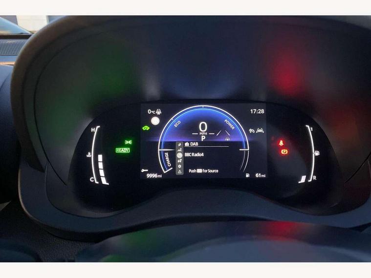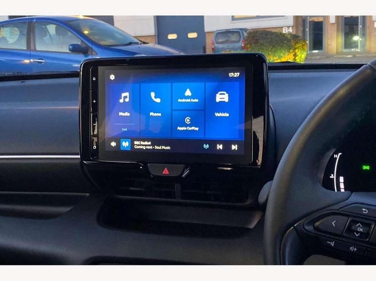 7" Digital Combimeter, Adaptive cruise control, Adjustable speed limit with speed warning, Bluetooth connectivity, Colour binocular inspired displays with digital speedometer, E-call, Electric power steering, Hybrid energy display, Lane trace assist, Multi information display switches on steering wheel, Pre-collision system (PCS), Reversing camera, Smartphone integration with Apple CarPlay and Android auto, Tailgate, Voice recognition, Vehicle Stability Control (VSC), 4 speakers, 9" Multimedia touch display, Toyota Touch 3 system with DAB radio, USB connection, Acoustic windscreen glass, Auto high beam assist, Auto windscreen wipers, Automatic headlights, Body coloured door mirrors, Electric adjustable heated door mirrors, Follow me home headlights, Front auto power windows with anti jam protection, LED daytime running lights, LED front fog lights, LED front light guide, LED Headlights, LED High mounted stop lamp, LED Indicators, LED rear light guide, Manual headlight levelling, Painted chequered front grille, Rain sensor, Rear auto power windows with anti jam protection, Rear privacy glass, Rear roof spoiler, Rear side wing doors, Rear wiper, Shark fin antenna, Turning signal integrated indicators in door mirrors, Variable front intermittent wipers, 3 adjustable rear headrests, 3 seat bench in 2nd row, 3 spoke leather steering wheel, 60/40 split folding rear seat, Active headrests, Adjustable boot height, Auto air conditioning, Coat hooks in rear grab handles, Cup holders (2 front & door), Data Communication Module (DCM) connected services, Fabric upholstery, Front armrest, Glovebox, Grey roof lining, Height adjustable driver's seat, Isofix seat fixing, Leather gearshift, Pollen filter, Shopping bag hooks, Single front passenger seat, Tilt/telescopic steering column, 3 point seatbelts on all rear seats, ABS+EBD+Brake assist, Electronic parking brake, Emergency brake light system (EBS), Front passenger airbag on/off switch, Front seatbelt reminder, Hill start assist control (HAC), Rear child proof door locks, Rear seat belt reminder, Supplemental Restraint System (SRS) 8 airbags: Driver & passenger's airbags, dual side curtain airbags, side impact airbags, front centre airbag, Toyota Safety Sense 3 with over the air updates, Tyre pressure warning system, 2x Master key, Alarm/immobiliser, Remote powered central double locking doors, Soft touch instrument panel, Space saver spare wheel,