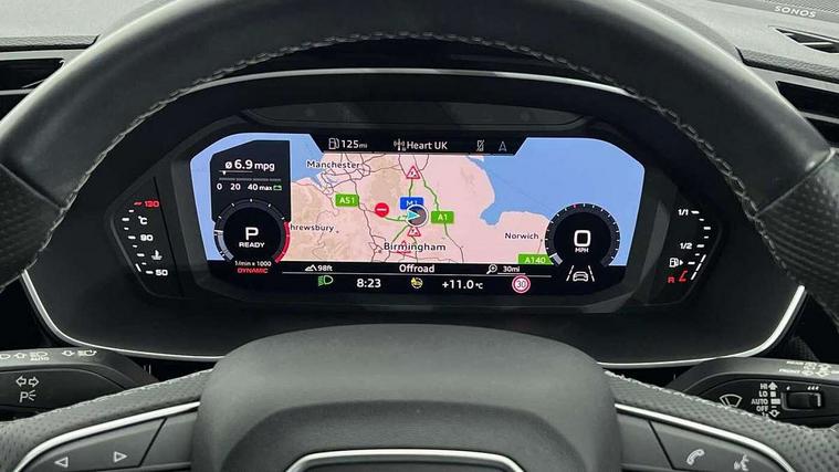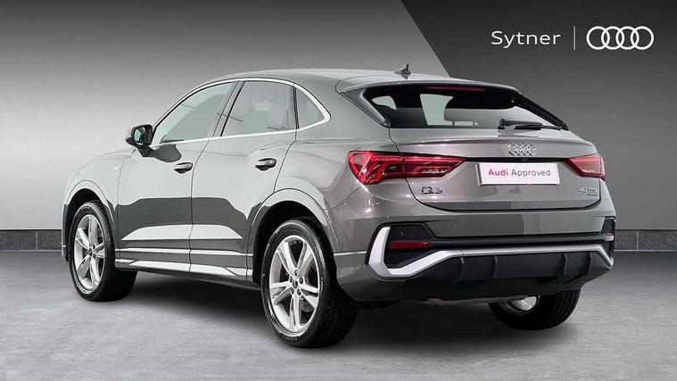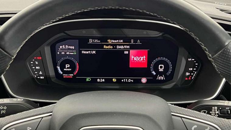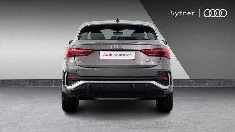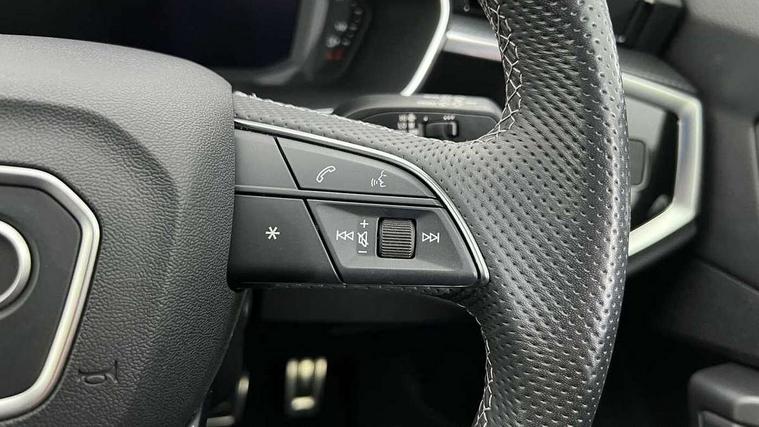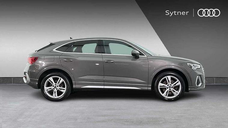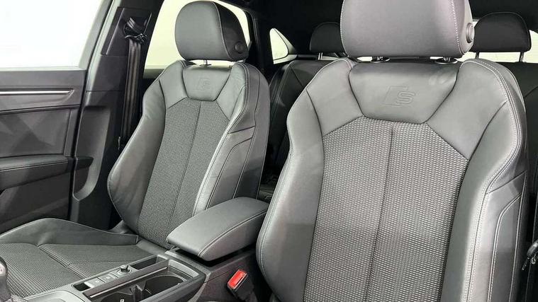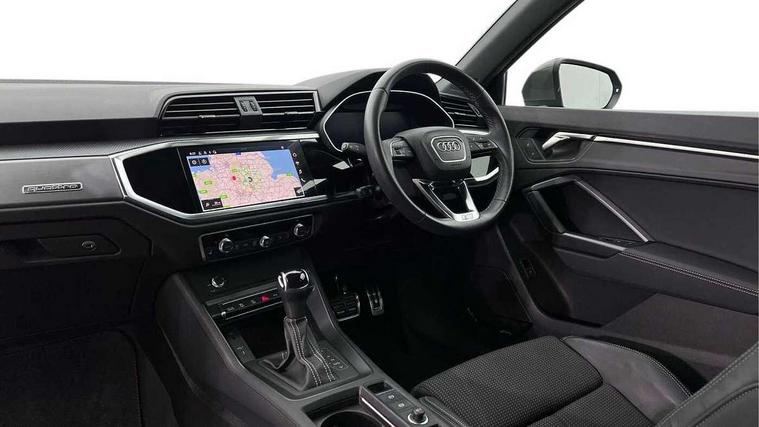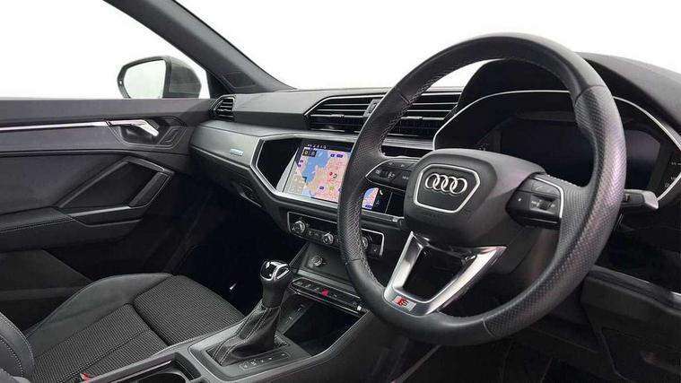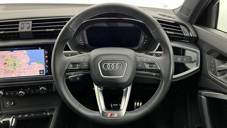 Audi drive select, Audi lane departure warning, Audi Virtual Cockpit - 10.25" display, Bluetooth interface, Camera based traffic sign recognition, Legal emergency call, MMI Navigation Plus with high resolution 10.1 inch touchscreen colour display, Power operated tailgate, Progressive steering, Service interval indicator, Smartphone interface includes wireless Apple carplay/Android Auto, Start stop system with recuperation, Voice control system with natural language interaction, Sports suspension, 2 USB-C ports with charge and data functions, 6 passive loudspeakers, DAB digital radio module, Acoustic windscreen, Aluminium window trim, Auto dimming frameless rear view mirror, Diffuser grille in grained matt black, Diffuser trim in selenite silver, Electrically folding, adjustable and heated door mirrors with integrated LED side indicators and kerb view function for passenger side, Front and rear electric windows, Front fog lights, Front side air inlets in selenite silver, Front underbody protection in manhattan grey paint finish, Grille surround in aluminium silver matt, High gloss black finish B and C pillars, LED Dynamic rear indicators, LED headlights with LED daytime running lights, LED rear lights, LED third brake light, Privacy glass dark tinted rear and rear-side windows (from B-pillar backwards), Radiator grille in anthracite black with inlay in matt aluminium silver, Rain and light sensors, Rear side wing doors, Rear underbody protection in matt black, Rear wiper, S line badges on front wings, S line front and rear bumpers and side skirts in contrasting Manhattan grey paint finish, Side skirt insert in matt Platinium grey, Variable front intermittent wipers, 12V socket in rear centre console, 3 seat bench in 2nd row, 3 spoke leather multifunction steering wheel features S badging and grips in perforated leather with contrast stitching, 40:20:40 folding with manual adjustment for 60:40 forwards/backwards position and backrest angle, Adjustable rear seat bench/backrest with centre armrest and cupholder, Black cloth headlining, Dual zone electronic climate control, Front and rear black floor mats with contrast stitching, Front and rear headrests, Front and rear roof module including reading lights, Front centre armrest, Glove compartment lighting, Height and reach adjustable steering wheel, Illuminated door sill trims with S logo, ISOFIX child seat mounting for front passenger with airbag deactivation and outer rear seat including top tether attachment point for outer rear seats, Luggage compartment light right in white, Luggage compartment sill protection in stainless steel, Manual front seats with height adjustment, Perforated leather gearknob, Single front passenger seat, Stainless steel pedals, Ambient lighting pack - Q3, Non smoking pack - Q3, 3x3 point rear seatbelts, 6 airbags - Driver, front passenger, curtain and side windows, Audi pre-sense front with pedestrain and cyclist recognition, Electrically operated child locks on rear doors, Electromechanical parking brake, Electronic stabilisation control including ABS, ASR and EDL, Front seatbelt reminder, Hill descent control, Hill hold assist, Pre sense basic, Seatbelt monitoring, Tyre pressure warning, Warning triangle and first aid kit, Anti theft alarm, Anti theft wheel bolts, Immobiliser, Remote central locking, Aluminium look interior elements, Black dashboard, Dark matt brushed aluminium inlay, Detail dashboard around MMI touch colour display in glass look, black with surround in aluminium look, Leatherette door armrest,