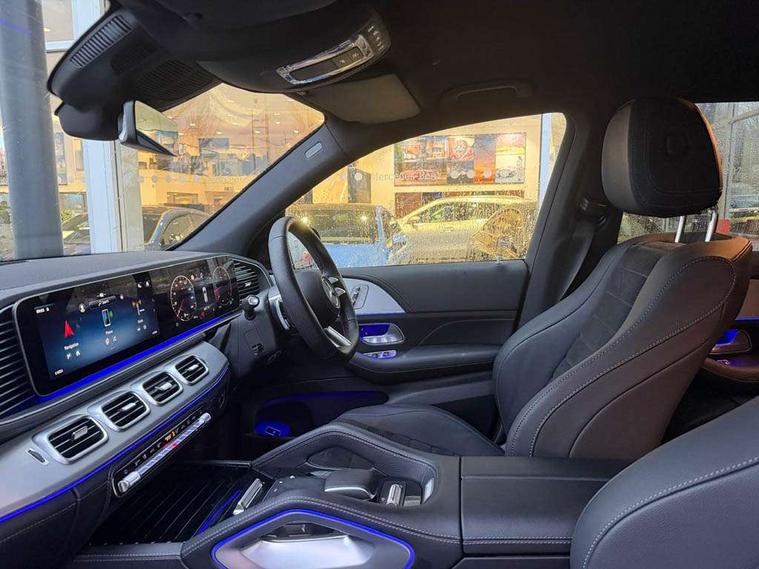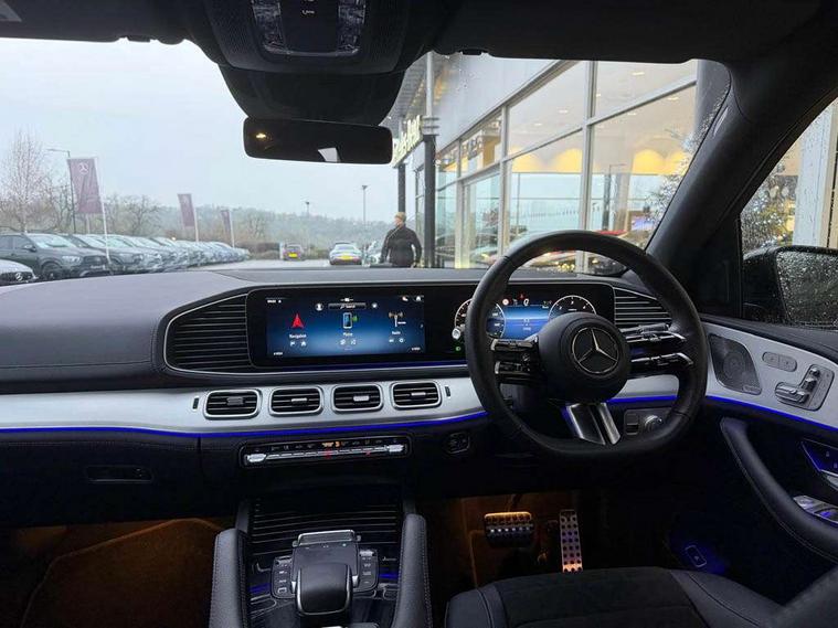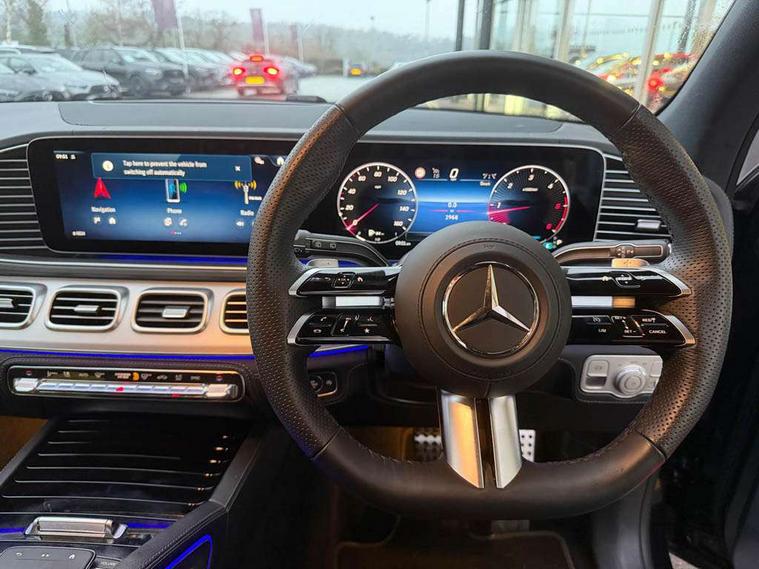 12.3 High resolution wide screen cockpit display with choice of three display styles Classic, Progressive or Sport and unique ambient lighting setting, 360 degree view camera, Active parking assist with PARKTRONIC, Attention assist, Brake wear warning display, Direct steer speed sensitive steering, DYNAMIC SELECT with a choice of driving modes (ECO, Comfort, Sport and Individual), Easy-pack tailgate - Powered opening/closing automatically, ECO start/stop function, Hard-disk navigation, MBUX voice control activated by keywords "Hey Mercedes", Mercedes Benz emergency call system, Mercedes me connect - vehicle set up and monitoring, Outside temperature display, Pre-installation for digital key transfer, Remote boot release, Service indicator (ASSYST), Status display for rear seat belts in instrument cluster, Traffic sign assist, Trip computer in multifunction display showing current fuel consumption, Wireless charging, Wireless smartphone integration including Apple CarPlay and Android auto, 85 litre fuel tank, 9G TRONIC 9 speed automatic transmission, Airmatic air suspension with adaptive damping system, Diesel particulate filter (DPF), Mild Hybrid starter alternator, Additional USB connection, Bluetooth interface for hands free and audio streaming, Burmester surround sound system, DAB digital radio tuner, Front and rear USB ports, Sound personalisation, Adaptive brake lights, AMG bodystyling front and rear aprons, Auto headlights, Automatically dimming rear view mirror, Body coloured bumpers, Electric windows with one touch opening/closing and obstruction sensors, Electrically adjustable, heated, folding exterior mirrors, Exterior styling - front bumper, radiator grille and front air intakes, Heat insulating dark tinted glass, LED 3rd brake light, LED daytime running light signet, LED rear lights, Magic vision control, Multibeam LED headlights with adaptive highbeam assist plus, Radio aerial integrated into rear window, Rain sensing windscreen wipers, Rear side wing doors, Rear wiper, Roof rail system, Top surround of side windows in polished aluminium, Transparent Bonnet, Visible twin pipe exhaust system integrated into bumper, Waistline in polished aluminium, 3 spoke flat bottomed Multifunction sports steering wheel in nappa leather, 4 way adjustable front head restraints and 2 way rear head restraints, 4 way lumbar support for driver and front passenger, 40:20:40 split folding rear seats, AMG floor mats, Artico/Microcut microfibre upholstery, Automatic child seat recognition sensor, Black fabric roof liner, Electric height/reach adjustable steering column, Electrically adjustable front seats with memory function, Front centre armrest with stowage compartment and illuminated grab handles, Gearshift paddles on steering wheel, Glove compartment - lockable, air conditioned and illuminated, Heated front seats, Interior lighting - 64 colour Ambient lighting, Luggage compartment cover, Seat occupancy sensor for front passenger seat, Second row three seats, Single front passenger seat, Sports pedals in brushed stainless steel with rubber studs, Sunvisors with illuminated vanity mirrors, THERMATIC 2 zone automatic climate control, Touchpad, Keyless go comfort package - GLE, Night package - GLE, Active bonnet, Airbags - driver and front passenger, front sidebag, pelvis bag and window airbags, Anti-lock braking system (ABS), Black seat belts, Childproof locks manually operated for rear doors and electrically operated for rear power windows, Drivers knee airbag, Electronic parking brake, Electronic Stability Programme (ESP), ISOFIX child seat points with automatic child seat recognition, Perforated front brake discs and brake calipers with Mercedes-Benz lettering, Pre safe impulse side, Three point rear seat belts, Tyre pressure monitoring system, Warning triangle and first aid kit, Alarm system/interior protection/immobiliser, Central locking with interior switch, automatic locking and crash sensor with emergency opening function, Chrome surround in electric key, Guard 360 degree vehicle protection plus, Brushed aluminium trim elements, Dashboard and door beltlines in ARTICO man made leather with contrast top stitching, 21" AMG 5 twin spoke light alloy wheels painted in bi colour, TIREFIT with tyre inflation compressor,