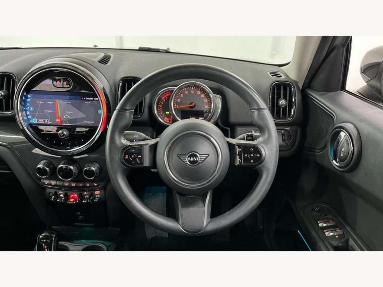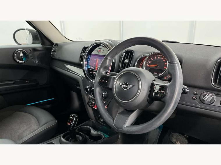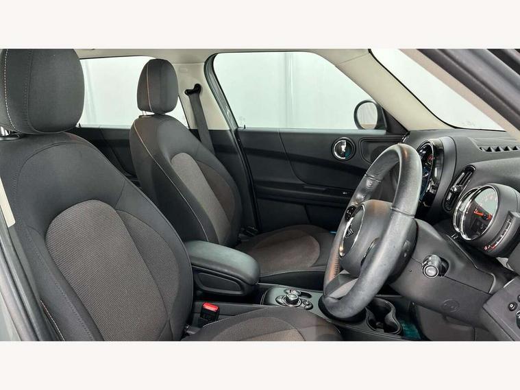 Active Guard incl speed limiting and lane departure functions with auto steering, and front collision warning with brake intervention, Automatic start/stop function with brake energy recuperation, Compatible mobile phone bluetooth with audio streaming, Cruise control with brake assist, Electro-mechanical speed dependant steering assistance, Instrument cluster, Mini E-call, On board computer, Rear parking distance control, 51 Litre fuel tank, Double Vanos system, Fully variable valve control, High precision injection, Performance Control, Steptronic transmission with double clutch, FM tuner and DAB digital radio, 3rd brake light, Body colour fuel filler cap, Day time driving lights, Door sill strips, Dynamic brake lights, Electric windows, Heated rear window, Heated windscreen washer jets, LED fog lights, LED Headlights, Left exhaust tailpipe with chrome finisher, Model logo, Model logo on Tailgate, Radiator grille, Rain sensor with auto headlights, Rear fog lights, Rear side wing doors, Rear window wiper, Side scuttle panel with integrated indicator, Split rear doors, Sun/heat protection glass, White indicator lenses, 12V socket in centre console, 3 seat bench in 2nd row, 3 spoke sport leather steering wheel + limiter function and audio controls, 360L luggage compartment capacity, 4 lashing eyes in luggage compartment, 40:20:40 split folding rear seats, Chrome interior highlights, Colour line - Carbon black, Cupholders, English handbook, Floor mats, Front headrests, Glove compartment, Headliner with grab handles and clothes hooks, Height and length steering column adjustment, Interior lighting with 12 basic colours selectable via toggle switch in roof, Isofix rear child seat preparation, Leather gearshift lever and handbrake gaiters, LED reading lights, vanity mirror lights, front foot well light and spotlight on front seats, Manual air conditioning, Mechanical seat adjustment, driver seat height adjust, forward/back and front seats backrest, Multifunction steering wheel, Passenger seat height adjuster, Rear headrests, Single front passenger seat, Storage compartments in doors, Sunvisors with vanity mirrors, Excitement pack - Countryman, Navigation pack - Countryman, 2 tone horn, 3 point seatbelts on all seats, 6 Airbags - front, side, head and seat belt tensioners, Anti-lock braking system (ABS), DSC - Dynamic Stability Control, Electronic handbrake, Front and rear disc brakes, Hill start assist, Manual rear child locks, Tyre pressure monitoring system, Alarm system with tilt sensor, monitoring doors, bonnet interior and tailgate, Auto drive away locking, Deadlocking function, Electronic vehicle immobiliser, Locking wheel bolts, Start/stop toggle with keyless go, Tool kit,