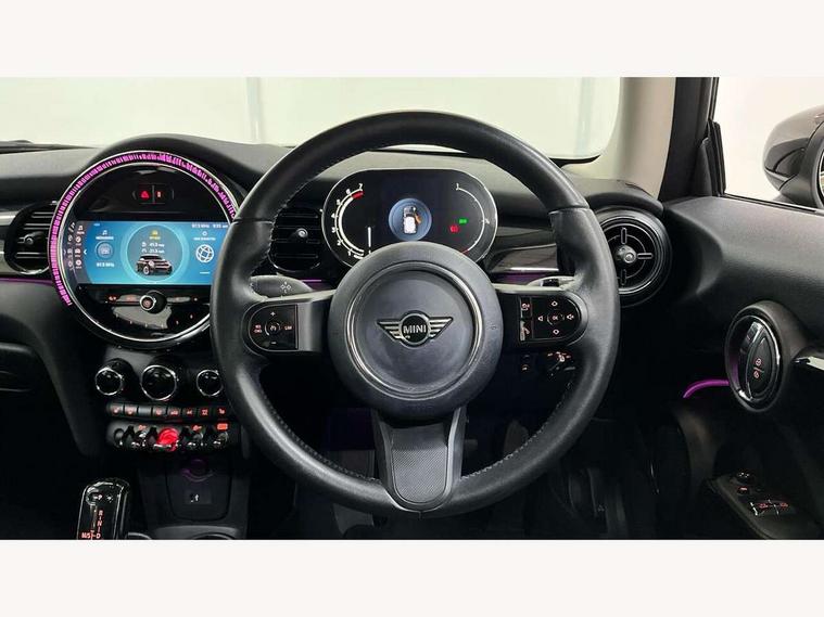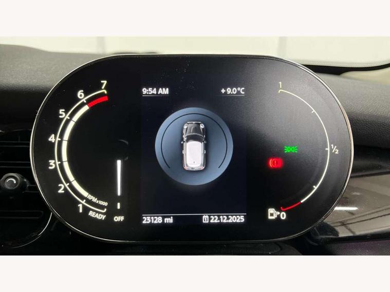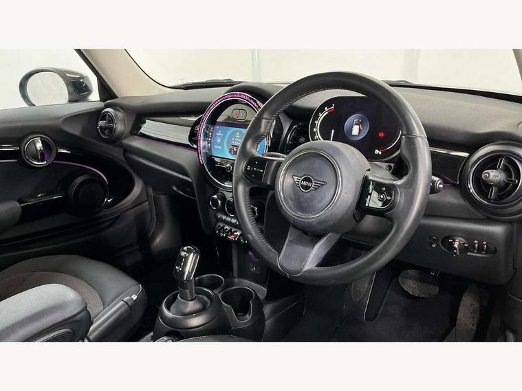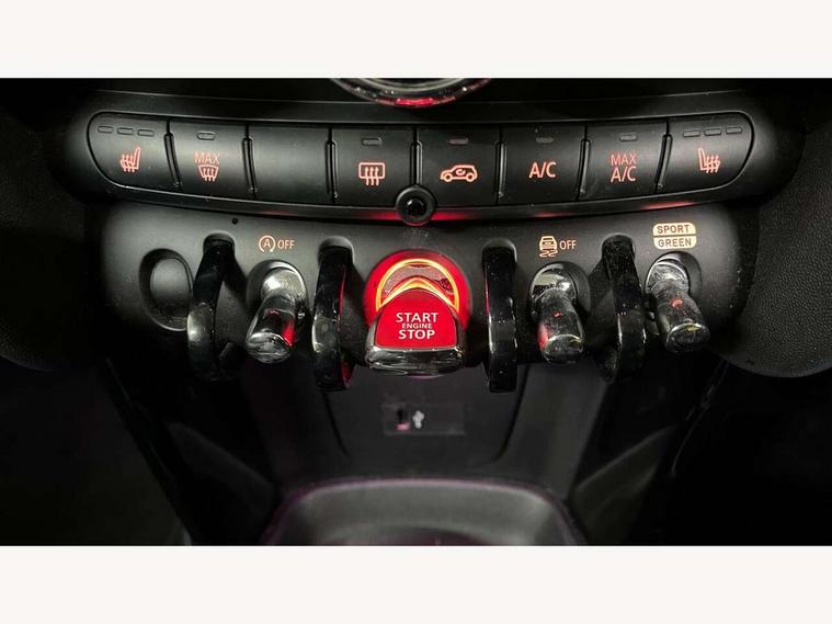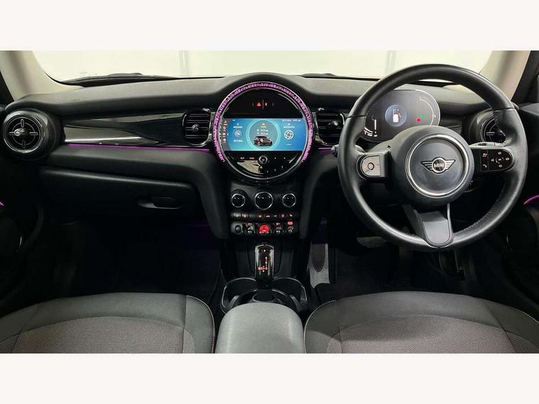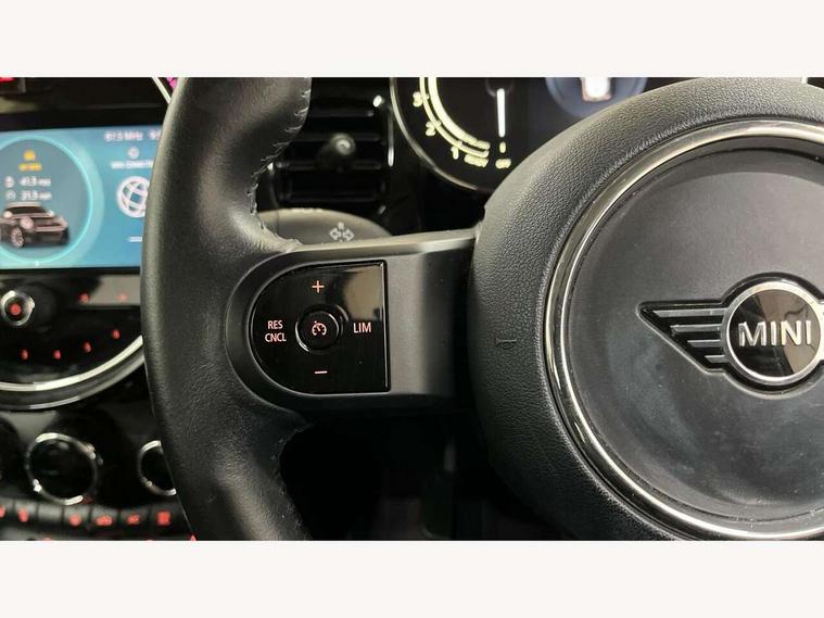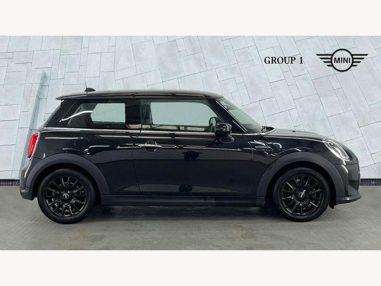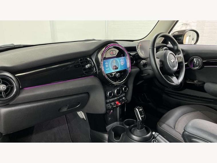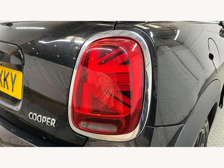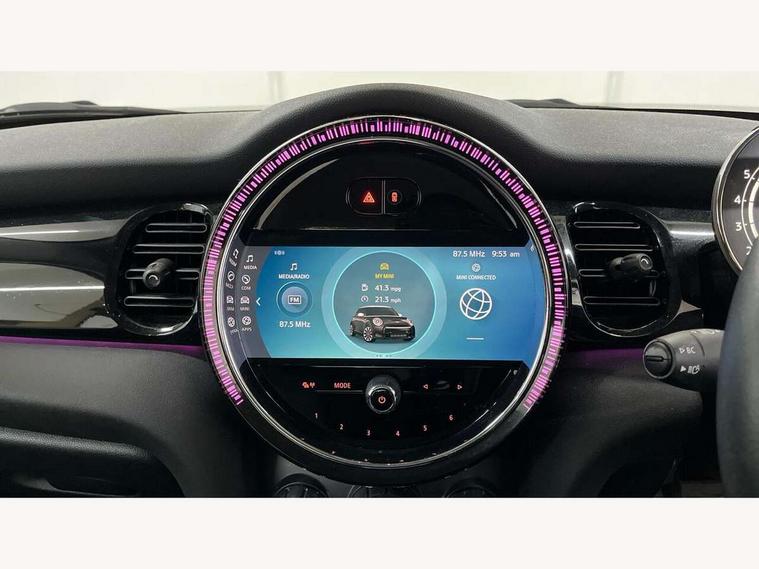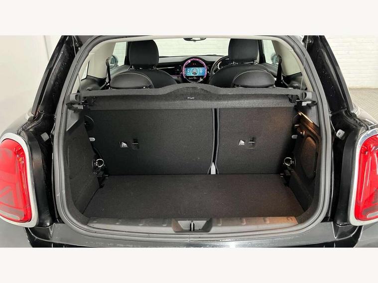 Apple CarPlay, Automatic start/stop function with brake energy recuperation, Compatible mobile phone bluetooth with audio streaming, Cruise control with brake assist, Electro-mechanical speed dependant steering assistance, Flexible car sharing preparation, Instrument cluster, Mini E-call, MINI TeleServices, On board computer, Service interval indicator, Double Vanos system, Fully variable valve control, High precision injection, Performance Control, Steptronic transmission with double clutch, 8.8" touchscreen with LED ring, FM tuner and DAB digital radio, 3rd brake light, Automatic headlight activation switch, Body colour fuel filler cap, Chrome border high gloss black slats radiator grille, Dynamic brake lights, Electric front windows, Exhaust tailpipe on left with chrome finisher, Heated rear window, Heated windscreen washer jets, LED headlight with closed ring and daytime driving lights, Metal door sill strips with MINI imprint, Model logo Cooper on right of tailgate, Rain sensor window wipers, Rear fog lights, Rear LED lights with union jack design, Rear window wiper, Side scuttle panel with integrated indicator, Sun/heat protection glass, White indicator lenses, 12V Accessory socket in centre console, 2 seat bench in 2nd row, 4 lashing eyes in luggage compartment, 60/40 split folding rear seat, Ambient lighting, Carbon black colour line - Knee roll and door armrest, Chrome interior highlights, Cupholders, Front and rear head restraints, Front and rear isofix with front passenger airbag deactivation, Front floor mats in velour, Glove compartment, Height and length steering column adjustment, Interior lighting with 12 different colours across the dashboard, underneath door bezel with illuminated laser-engraved design on central display, Leatherette gearshift lever and handbrake gaiters, LED reading lights, vanity mirror lights, front foot well light and spotlight on front seats, Manual air conditioning, Mechanical seat adjustment - forward/back & backrest for front seats and driver seat height adjust, Multifunction steering wheel, Passenger seat height adjuster, Satellite grey headlining including grab handles and clothes hooks, Single front passenger seat, Sport leather steering wheel with speed limiter and audio/communication controls, Storage compartments in doors, Sunvisors with vanity mirrors, 3 point seatbelts on all four seats, 6 Airbags - front, side, head and seat belt tensioners, Anti-lock braking system (ABS), DSC - Dynamic Stability Control, Front and rear disc brakes, Single tone fanfare horn, Tyre pressure monitoring system, Alarm system with tilt sensor, monitoring doors, bonnet interior and tailgate, Electronic vehicle immobiliser, Start/stop toggle with keyless go, Piano black interior trim, Tool kit, Tyre repair kit,