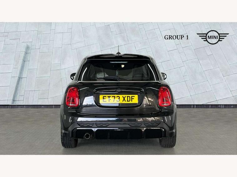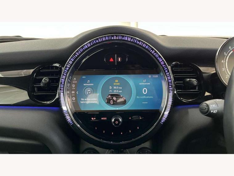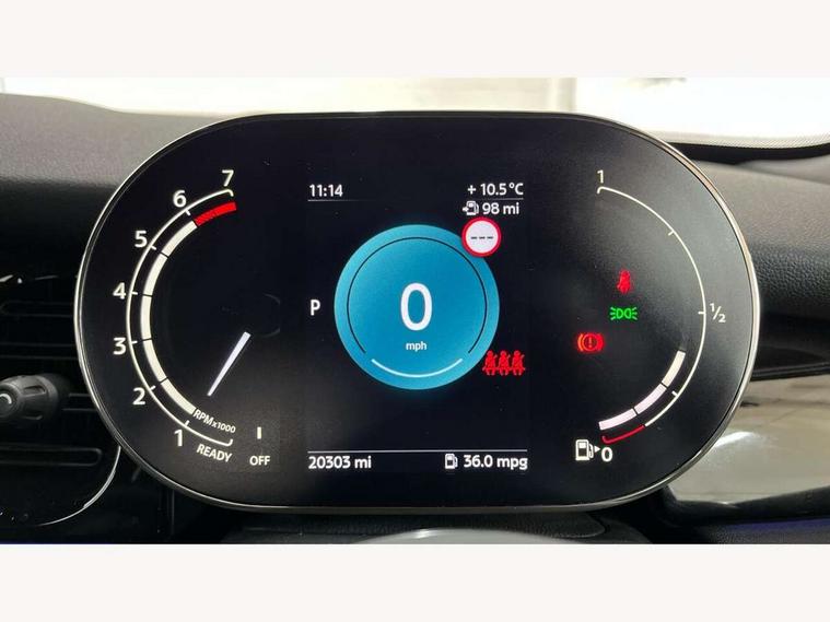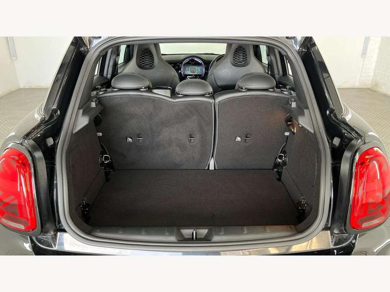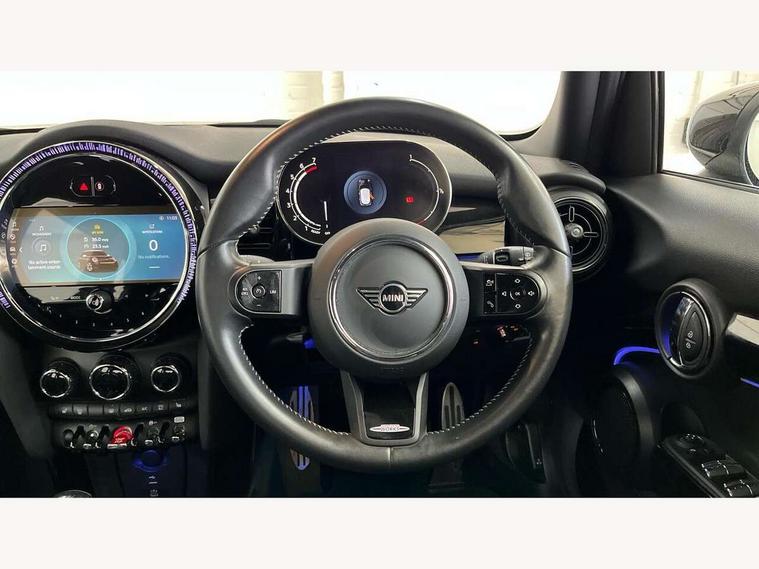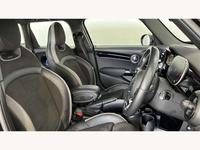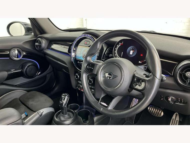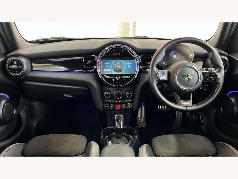 Apple CarPlay, Automatic start/stop function with brake energy recuperation, Compatible mobile phone bluetooth with audio streaming, Electro-mechanical speed dependant steering assistance, Flexible car sharing preparation, MINI Driving Modes - centre toggle switch to control driving setting (sport, mid and green), Mini E-call, MINI TeleServices, On board computer, Rear park distance control, Service interval indicator, Adaptive suspension, Double Vanos system, Fully variable valve control, Gear change indicator display, High precision injection, Performance Control, Steptronic transmission with double clutch, 8.8" touchscreen with LED ring, FM tuner and DAB digital radio, 3rd brake light, Automatic headlight activation switch, Body colour fuel filler cap, Chrome border high gloss black slats radiator grille, Dynamic brake lights, Electric front+rear windows, Exhaust tailpipe on left with chrome finisher, Heated rear window, Heated windscreen washer jets, JCW Aerodynamic kit - Front and rear bumpers with sporty JCW styling and part-painted side sills with MINI John Cooper Works door sill finishers, John Cooper Works rear spoiler, Metal door sill strips with MINI imprint, Model logo Cooper on right of tailgate, Rain sensor window wipers, Rear fog lights, Rear LED lights with union jack design, Rear side wing doors, Rear window wiper, Side scuttle panel with integrated indicator, Sun/heat protection glass, White indicator lenses, 12V Accessory socket in centre console, 3 seat bench in 2nd row, 4 lashing eyes in luggage compartment, 60/40 split folding rear seat, Anthracite headliner including grab handles and clothes hooks, Carbon black colour line - Knee roll and door armrest, Chrome interior highlights, Cupholders, Front and rear isofix with front passenger airbag deactivation, Front and rear velour floor mats, Glove compartment, Height and length steering column adjustment, Interior lighting with 12 different colours across the dashboard, underneath door bezel with illuminated laser-engraved design on central display, JCW Sport seats with integrated headrests, adjustable thigh support and John Cooper Works logo, Leatherette gearshift lever and handbrake gaiters, LED reading lights, vanity mirror lights, front foot well light and spotlight on front seats, Mechanical seat adjustment - forward/back & backrest for front seats and driver seat height adjust, Multifunction steering wheel, Single front passenger seat, Storage compartments in doors, Sunvisors with vanity mirrors, Walknappa leather steering wheel with grey seam and John Cooper Works badge on Piano Black lower steering wheel spoke, Piano black exterior pack - Mini Hatchback Cooper, 3 point seatbelts on all five seats, 6 Airbags - front, side, head and seat belt tensioners, Anti-lock braking system (ABS), Child locks on rear doors, DSC - Dynamic Stability Control, Front and rear disc brakes, Hill start assist, Single tone fanfare horn, Tyre pressure monitoring system, Alarm system with tilt sensor, monitoring doors, bonnet interior and tailgate, Electronic vehicle immobiliser, Start/stop toggle with keyless go, Piano black interior trim, Tool kit,