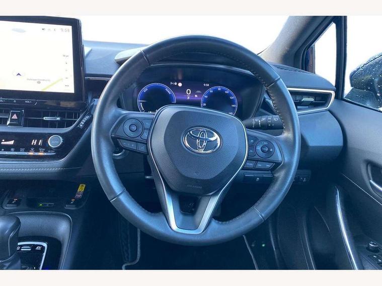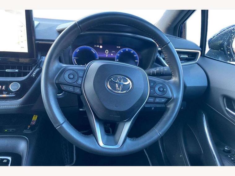 10.5" Multimedia display screen, Attention assist, Bluetooth telephone connectivity, Connected car functionality upgrade, tracker, remote status and e-care, Drive mode select (Eco, Normal), E-call, Electrically assisted power steering, EV drive indicator, Front and rear parking sensors with auto brake, Full Digital 12.3" TFT Digital Combimeter, Key reminder warning, Lane Departure Alert (LDA) switch on steering wheel, Memory on adjustable speed limiter, MyT connected services, Proactive driving assist (PDA), Reversing camera, Smart entry and push button start, Smartphone integration with Apple CarPlay and wired android auto, Tailgate, Toyota remote services, Toyota smart connect navigation, Wireless charger, Gasoline particulate filter, Vehicle Stability Control (VSC), 6 speakers, AM/FM radio, DAB Digital radio, Front USB-C in dashboard, Smart voice assist/ Voice recognition, USB and Aux in connectors + 12V front outlet, Anti-jam protection on power windows, Auto up and down function on all power windows, Automatic headlights with high beam assist, Black centre and side air vents, Black meshed front grille, Black roof rails, Black toyota logo in front, Body coloured bumpers, Body coloured door mirrors, Body coloured front spoiler, Body coloured outside door handles, Body coloured rear under guard, COROLLA alloy door scuff plates, Follow me home headlights, LED daytime running lights, LED front fog lights, LED High mounted stop light, LED multi beam headlights, LED multi reflector in headlights, LED rear combi lights with LED lightguide, Manual day/night rear view mirror, Manual headlight levelling system, New grille pattern, Noise reduction layer on front windows, Noise reduction layer on windscreen, Piano black diffuser, Power adjustable heated door mirrors, Power front windows, Power rear windows, Rain sensor, Rear side wing doors, Rear window defogger, Rear window wiper, Roof spoiler, Satin chrome insert on front air vents, Satin chrome insert on front door assist grips, Satin chrome inserts on rear passenger air vents, Shark fin antenna, Time adjustment on intermittent wiper, Turning signal integrated indicators in door mirrors, Unique lower skirt, Unique side rocker with black insert, UV-filter on driver and passenger windows, 12v power outlet - luggage side, 2 Shopping bag hooks in luggage compartment, 3 rear headrests, 3 seat bench in 2nd row, 3 spoke leather steering wheel with satin insert + gear knob, 4 tie down hooks in luggage compartment, 60/40 split folding rear seat, Adaptive cruise control (ACC) switch on steering wheel, Adjustable speed limiter switch on steering wheel, Audio, multimedia and telephone switches on steering wheel, Black armrest on centre console box, Black gear shift console, Boot light, Boot underfloor storage, Driver and front passenger personal light, Driver and passenger assist grip, Driver and passenger sun visor with mirror and light, Dual level boot floor, Dual sided deck board in boot, Dual zone automatic air conditioning with ECO mode switch, Fabric upholstery, Front and rear cup and bottle holders, Front and rear door pockets, Front head restraints, Front passenger seat, Front sliding fabric armrest, Heated seats, Illuminated entry system in room lamp, ISOFIX seat fixing (2 fixings on rear outer seats), Leather gear shift with satin chrome on gear shift console, Manual height adjustable for driver and front passenger seat, Manually tilt with sliding driver and front passenger seat, Passenger seat back pocket, Pollen filter, Power adjustable lumbar support on driver seat, Power window switches with satin chrome inserts, Rear armrest with 2 cupholders, Rear passenger coat hooks (2), Rear passenger personal lights, Remote air conditioning, Retractable tonneau cover with luggage partition net, Satin chrome inside door handles, Satin chrome surround on heater control panel, Satin chrome surround on speedometer, Side storage in boot, Sliding armrest on centre console box, Slow opening glovebox with lights, Textile floor mats, Tilt/telescopic steering column, Tonneau cover with under floor storage, Toyota easy flat system, Voice recognition switch on steering wheel, Whiplash Injury Lessening (WIL) feature (active headrest) for seats, Toyota safety sense 3 pack - Corolla, 3x3 point rear seatbelts, Adjustable driver and front passenger seat belt extender to top anchor point, Anti lock braking system + Electronic brake force distribution, Brake assist function, Child locks on rear doors, Downhill Assist Control (DAC), Electronic parking brake, Emergency brake light signal (EBS), Front passenger airbag on/off switch, Front seatbelt reminder, HAC - Hill start assist control, Rear seat belt reminder, Seatbelt pretensioners and force limiters, Supplemental restraint system (SRS) 7 airbags - dual driver, dual side curtain, side impact and driver knee airbags, Traction control, Tyre pressure warning system, Acoustic vehicle alert system (AVAS), Alarm with motion sensor and immobilizer, Power passenger window lock, Remote central locking + deadlocks, Satin chrome dash trim, Soft touch texture on upper dashboard, Stitching on lower dashboard, 16" 5 double spoke alloy wheels, Tyre repair kit, Unique wheel finish with red wheel cap,