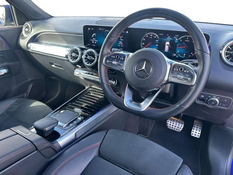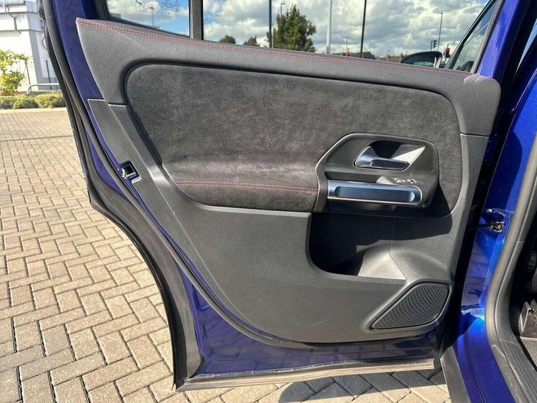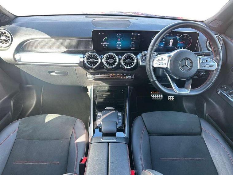 10.25" Digital instrument cluster display screen, 10.25" Digital media screen display, Active lane keeping assist, Attention assist - Monitors steering behaviour and long journey fatigue, Brake pad wear indicator warning light, Car wash mode, Cruise control with limiter, DYNAMIC SELECT with a choice of driving modes (ECO, Comfort, Sport and Individual), ECO start/stop function, Fluid level warning indicator for fuel, oil, coolant and washer fluid, Hard disk navigation, Hey Mercedes Voice activation, Lamp failure indicator, Mercedes me connect including emergency call system, accident recovery, breakdown and maintenance management, Mercedes me remote services, Outside temperature gauge, Owners manual and service booklet in English, Parameter steering system, Pre-installation of private car share, Preinstallation for parking damage notification, Radio aerial integrated into front and rear windshields, Service indicator (ASSYST), Speed limit assist, Trip computer in multifunction display with current consumption indicator, 23.8 litre AdBlue fuel tank, Comfort suspension, Rear axle multi-link, DAB digital radio tuner, MBUX multimedia system with DAB digital radio and touchpad including satellite navigation, Mercedes Benz sound system (100 W) with 6 speakers, Pre installation for Mercedes Benz Link, USB (type C) port in front stowage compartment, USB (type C) ports (2) in stowage compartment, Adaptive brake lights, Aerial for GPS, AMG bodystyling door panels black grained with chrome plated inserts, AMG bodystyling front apron with chrome splitter, AMG bodystyling rear apron with diffuser optics and chrome trim element, AMG specific front and rear bumper including underride guard in high gloss chrome, Beltline strips and weather strip in chrome, Body coloured bumpers, Body coloured door handles, Body coloured door mirror caps, Electric adjustable and heated door mirrors with integrated LED side indicators, Exhaust system with dual flow exhaust pipes (non-functional), Front and rear electric windows, Headlamp assist automatic headlamp activation, Heated glass rear windscreen + timer control, High level LED third brake light, Interior mirror with black reading lamps and frameless, LED high performance headlamps with integrated LED daytime running lights, LED tail lamp, Polished aluminium roof rails, Privacy glass with dark tinting on rear side windows and rear window, Radiator grille with pins in chrome and single louvre with chrome insert, Rain sensor windscreen wipers, Rear fog lamp, Rear side wing doors, Rear wiper, Two visible tailpipe trim elements exhaust, 3 seat bench in 2nd row, 3 spoke multifunction sport steering wheel in nappa leather, Air conditioning - Two zone thermotronic luxury automatic climate control with display, AMG sports pedals with brushed stainless steel surfaces and black rubber studs, Artico man-made leather/Microcut microfibre upholstery with red contrast stitching, Automatic child seat recognition sensor, Black floor mats with AMG lettering, Black roof lining, Fore/aft adjustment rear seats, Freight packaging with tie-down hooks, Front centre armrest with stowage, Front door sills with illuminated changeable cover, Front passenger grab handle with brushed side silver chrome, Galvanished gear shift paddles on steering wheel, Heated front seats, Height/reach adjustable steering column, Interior lighting - 64 colour Ambient lighting, Luggage net on driver/front passenger seat backrest, Net in front passenger footwell, Rear armrest with two integral cup holders for drinks, Rear seat easy entry, Single front passenger seat, Sports seats with adjustable head restraints, Stowage compartment in centre console, Stowage compartment with retractable cover, Third row of seats for two people on rear seat, Touchpad on center console, Twin front cup holders, Two outer rear seat isofix and top tether child seat fixing points, Interior lighting with light and sight pack - GLB, Mirror pack - GLB, Parking pack - GLB, Seat comfort package - GLB, 3 rear 3 point seatbelts, Active bonnet pedestrain safety measure which detects an impact and raises bonnet by 65mm, Active brake assist includes forward collision warning system with autonomous braking, Adaptive brake assist with hold function and hill start assist, Airbags - kneebag for driver, Anti-lock braking system (ABS) with brake assist, Childproof locks manually operated for rear doors and electrically operated for rear power windows, Crash responsive emergency lighting, Curve dynamic assist, Driver and front passenger head and sidebags, Driver and front passenger windowbags, Dual stage driver and front passenger airbags, Electronic parking brake, Electronic stability programme with acceleration skid control, Front and rear seatbelt reminder, Front brake callipers with Mercedes Benz lettering, Front passenger seat occupancy sensor, Tyre pressure monitoring system, Warning triangle and first aid kit, Guard 360 degree vehicle protection - Anti theft alarm system, tow away protection with visual, acoustic warning and alarm, Interior monitoring system, KEYLESS-GO starting function, Remote central locking and crash sensor with emergency opening function, Thatcham category 1 alarm system with immobiliser and interior protection, Vehicle key with decorative surround in chrome, Black air vents with chrome surround, Carbon structure trim, 19" AMG 5 twin spoke light alloy wheels painted in high gloss black with high sheen finish, Summer tyres, Tirefit tyre sealant kit,