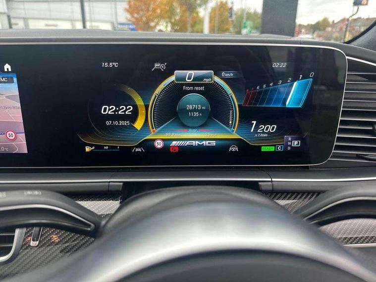 12.3 High resolution wide screen cockpit display with choice of three display styles Classic, Progressive or Sport and unique ambient lighting setting, AMG DYNAMIC SELECT with a choice of driving modes (Slippery, Comfort, Sport, Sport+ and Individual), Attention assist, Brake wear warning display, Cruise control with variable speed limiter, Direct steer speed sensitive steering, Easy-pack tailgate - Powered opening/closing automatically, ECO start/stop function, Geofencing, Hard-disk navigation, Head up Display, Hey Mercedes Voice activation, High resolution 12.3" multimedia colour display, Instrument cluster with AMG menu including RACETIMER and AMG start-up display, Mercedes me connect including emergency call system, accident recovery, breakdown and maintenance management, Outside temperature display, Pre-installation for private car sharing, Remote boot release, Service indicator (ASSYST), Smartphone integration, Status display for rear seat belts in instrument cluster, Traffic Sign Assist, Traffic sign recognition including wrong way warning function and display of posted speed limits in the instrument cluster, Trip computer in multifunction display showing current fuel consumption, 85 litre fuel tank, Active roll stabilisation, AMG ride control+ sports suspension based on Air body control air suspension with Adaptive damping system, AMG Speedshift TCT 9 speed transmission, Mild Hybrid starter alternator, Petrol Particulate Filter (PPF), Additional USB connection, Burmester surround sound system, DAB Digital radio, Dual bluetooth interface, 2 USB ports (type C), MBUX multimedia system, Adaptive brake lights, Adaptive high beam assist, Aerial for GPS, Aluminium look, illuminated running boards with rubber studs, AMG bodystyling front and rear aprons and side skirts in polished aluminium, AMG front apron with A wing strip and silver chrome front splitter plus sporty, striking air intakes with silver chrome 2 side louvres and black flics, AMG performance exhaust system, AMG specific radiator grille with vertical bars in high gloss chrome and AMG logo, BITURBO 4MATIC lettering on front wings, Body coloured bumpers, Dynamically shaped AMG rear apron with diffuser look insert and trim strip in silver chrome, Electric windows with one touch opening/closing and obstruction sensors, Exterior mirrors heated and electronically adjustable, Front green tinted glass, Illuminated front door sill panels with "AMG" lettering, LED rear lights, Multi beam LED headlights, Panoramic sunroof, Privacy glass - heat insulating dark tinted glass, Radio aerial integrated into rear window, Rain sensing windscreen wipers, Rear wiper, Roof rail system, Visible twin pipe exhaust system integrated into bumper, Waistline in polished aluminium, 3 spoke AMG multifunction steering wheel with touch control buttons, trimmed in black nappa leather with DINAMICA grip area, flattened bottom section, 4 way adjustable front head restraints and 2 way rear head restraints, 40:20:40 split folding rear seats, AMG brushed stainless steel sports pedals with rubber studs, AMG Exclusive Nappa leather upholstery, AMG floor mats in black velour with AMG lettering, AMG front sports seats, Automatic child seat recognition sensor, Central stowage compartment with 12 V socket in centre console, Chrome door pins, Climatised front seats, Comfort front headrests, Courtesy lights in rear grab handles with reading light functionality, Dinamica microfibre roof liner in black, Electric height/reach adjustable steering column, Front centre armrest with stowage compartment and illuminated grab handles, Gearshift paddles on steering wheel, Glove compartment - lockable, air conditioned and illuminated, Heated front seats, Interior lighting - 64 colour Ambient lighting, Multicontour front seats, Nappa leather door beltlines, Nappa leather upper dash trim, Seat occupancy sensor for front passenger seat, Second row three seats, Sports steering wheel, Sunvisors with illuminated vanity mirrors, Thermotronic automatic 4 zone climate control, Touchpad, AMG Drivers package - GLE 63, AMG night pack - GLE 53/63, Anti theft Protection package - GLE, Driving assistance plus pack - GLE 63, Interior chrome package - GLE, Keyless go comfort package - GLE, Memory package - GLE, Mirror package - GLE, Parking package with 360 camera - GLE, Active bonnet, Adaptive brake system with HOLD function and brake drying in the wet, Airbags - driver and front passenger, with extended adaptivity for front passenger airbag, Airbags - sidebag for driver and front passenger with combined thorax/pelvis bag, Airbags - windowbags, AMG high performance composite braking system, Anti-lock braking system (ABS), Childproof locks manually operated for rear doors and electrically operated for rear power windows, Drivers knee airbag, Electronic parking brake, Electronic Stability Programme (ESP), ISOFIX child seat attachment points two outer rear seats, Pre-Safe anticipatory safety system, Red brake callipers with AMG lettering, Red seat belts, Three point rear seat belts, Tyre pressure monitoring system and loss warning system, Warning triangle and first aid kit, Alarm system/interior protection/immobiliser, Central locking with interior switch, automatic locking and crash sensor with emergency opening function, Chrome surround electric key, Keyless entry, Dashboard and door, AMG carbon fibre, Trim - Centre console, AMG carbon fibre trim, 22" AMG cross spoke light forged alloy wheels painted in black, Summer tyres with noise reducing absorber, TIREFIT with tyre inflation compressor,