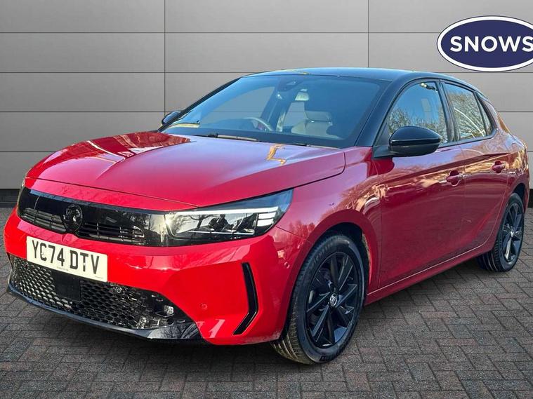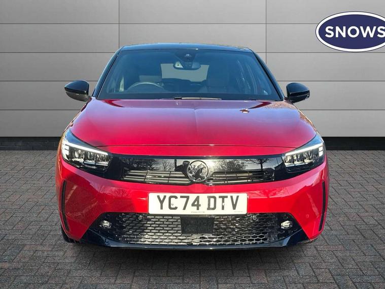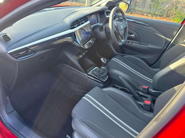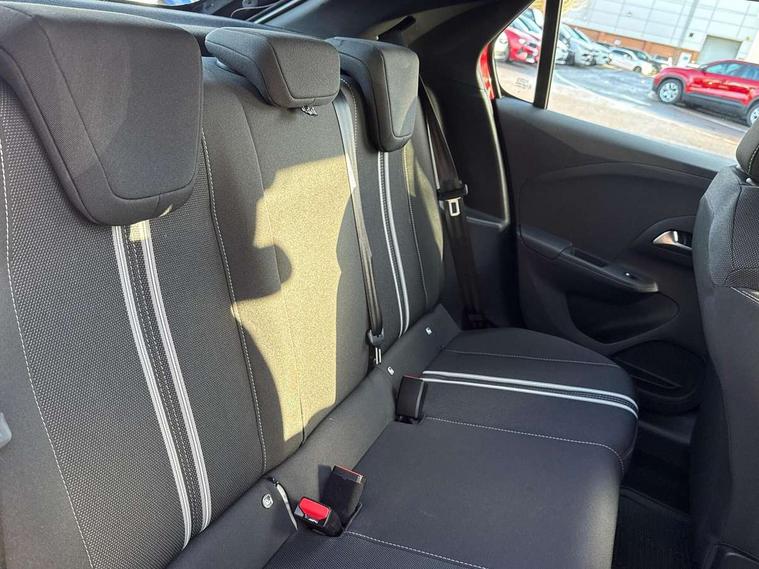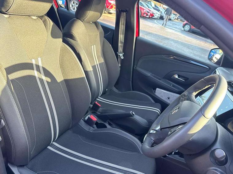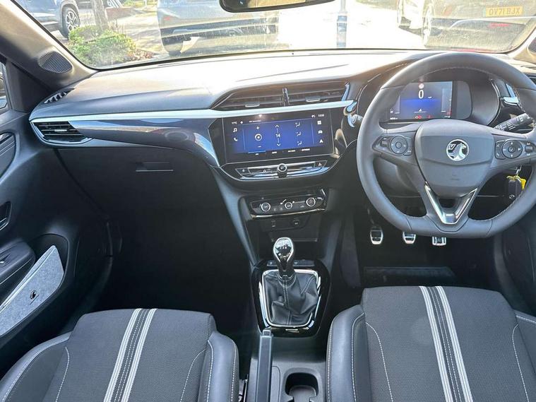130 degree rear view camera, 7 inch digital instrument cluster display, Auto tele unit 3S vehicle communication system, Breakdown call (b-call), Central facia display with digital clock, outside air temperature and audio information, Cruise control with intelligent speed limiter, Driver drowsiness alert system, E-call, Engine oil life indicator, Front and rear parking sensors, Front camera system, Instrumentation - Speedometer, rev counter, low fuel gauge warning light + water temperature gauge warning light, Lane departure warning, Lane keep assist, Lights on audible warning, Multi function trip computer, RDS with traffic programme, Service indicator, Side blind spot alert, Smartphone projection, Speed sensitive power steering, Speed sign recognition, Start/stop system, Vauxhall connect box, Wireless Apple CarPlay/Android Auto, Electronic returnless fuel system, Petrol Particulate Filter, Under body shield for aero, AM/FM stereo radio, Bluetooth A2DP audio streaming function (Advanced audio distribuition profile), DAB Digital radio, Multimedia with 10-inch touchscreen, Six speakers, Steering wheel audio, phone and cruise controls, USB type C port, 3rd brake light, Automatic headlight control system, Black DLO, Black door mirror housings, Black Griffin logo and vizor frame, Black lower side window mouldings, Black roof and A pillar, Body colour door handles, Body colour front and rear bumpers, Bonnet/headlight/wiper structure, Corsa lettering in tailgate, Dark tinted rear side windows + tailgate window, Electrically adjustable and heated door mirrors, Electrically folding door mirrors, Electrically operated front and rear windows with safety auto reverse and one touch up/down facility, Electrochromic automatic anti-dazzle rear view mirror, Flexible roof mounted aerial, Glazed tailgate and heated rear window with wash/wipe facility, Hazard warning lights, Headlamps for left side traffic, High beam assist, High gloss black finish B pillar, Intelli-LED headlights, LED daytime running lights, LED tail lamp, Rain sensitive windscreen wipers, Rear fog lamp, Rear reversing lights, Rear side wing doors, Rear wiper, Solar heat absorbing windscreen and windows, Sports front and rear body styling for upper and lower bumper design, Two speed windscreen wipers with variable intermittent wipe, Windscreen and side window demist vents, 12V power sockets, 3 bench rear seats in 2nd row, 3 spoke flat bottomed steering wheel with satin chrome effect bezel, 4 speed fan with illuminated controls, 4 way manual co-driver seat reach fore/aft, backrest upright/recline, 6 way manual adjustable driver seat height up/down, reach fore/aft, backrest upright/recline, 60/40 split folding rear seat, Air conditioning with air recirculation facility, Banda cloth upholstery, Black headliner, Cabin particulate filter - removes dust, airborne particles and pollen, Driver/passenger sunvisors with vanity mirrors + covers, Four adjustable facia vents, Front centre armrest with storage, Front cupholder, Front headrests, Height adjustable head restraints, Illuminated glovebox with lid, Interior courtesy light, Internal chrome door handles, LED boot light, Polyurethane gear knob/lever, Reach and rake adjustable steering column, Rear cupholder, Rear headrests, Right hand drive (RHD), Rubber pedals, Single dome lamp with dual front reading lamps, Single front passenger seat, Sports style front seats, Two litre open door pockets, 3 rear 3 point seatbelts, Anti-lock braking system (ABS), Automatic emergency braking with pedestrian detection, Cornering brake control, Deactivation switch for front passenger's airbag, Drag torque control, Driver and front passenger airbags, front seat side impact airbags, full size curtain airbags, EBD - Electronic brakeforce distribution, Electrical child lock system in rear door latch, Electronic Stability Programme (ESP), Emergency brake assist, Forward collision alert, Front seatbelt unfastened audible warning and warning light, Hill hold and start system, ISOFIX child seat mountings incorporating top tether anchor points located on second row rear seats, Manual handbrake, Seatbelt pretensioners, Single tone horn, Straight line stability control, Traction control, Tyre deflation detection system, Tyre pressure monitoring system, 2 keys one folding with integral remote, Electronically protected audio equipment, Engine deadlock and immobiliser, Freewheeling door locks, Locking wheel nuts, Remote control central locking, Remote control security alarm system, Remote locking fuel filler flap, Steering column lock, Visible vehicle identification number, Silent white fascia with blanc banquise insert, 17" Diamond-cut hi-gloss black alloy wheels,
