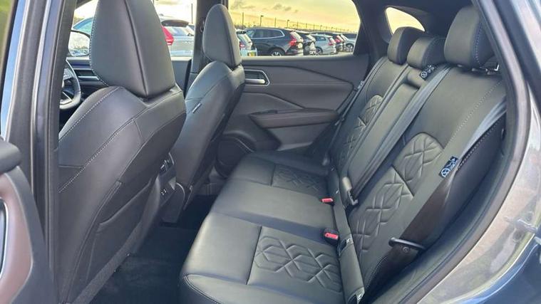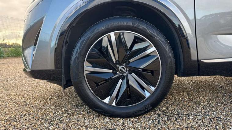 2 front USB-C ports, 2 rear USB-C ports, 360 degree Intelligent around view monitor with moving object detection, Advanced windscreen head up display, Blind spot warning, Drive assist, Drive assist custom mode, Drive modes (sport, normal, eco), Driver drowsiness and attention warning, Electric speed sensitive power steering, Emergency and breakdown call, Emergency lane keep assist, Emergency Stop Signal (ESS), Engine start/stop button, Event data recorder, Front and rear parking sensors, Full Digital 12.3" TFT Digital Combimeter, Google virtual personal assistance, Hands free power tailgate, Idle stop/start system, In-car WIFI hotspot, Intelligent Cruise control (ICC), Intelligent driver alert system, Intelligent forward collision warning, Intelligent lane intervention, Intelligent speed assist, Lane departure warning system, Nissan connect 12.3 inch touchscreen infotainment system, Nissan connect navigation with google maps, Nissan connect services 2.0 (Google Automotive System), Outside temperature sensor, Rear cross traffic alert, Remote control services - door locks, lights, horn and car locator, Reversing detection, Traffic sign recognition with legal speed adjustment, Trip computer, Wireless Apple CarPlay/Android Auto, Wireless charging pad, Limited slip differential, 6 speakers, AM/FM audio system with DAB, Bluetooth audio streaming, Auto dimming frameless rear view mirror, Auto rear wiper when reversing, Body colour mirror caps, Body coloured door handles, Bodyside mouldings, Chrome side window finisher, Electric auto folding door mirrors, Electrically adjustable and heated door mirrors with LED turn indicator, Follow me home headlights, High beam assist, Intelligent auto headlights, LED 3rd brake light, LED daytime running lights, LED headlights with adaptive driving beam, LED rear lights, LED sequential turn lights, One touch front and rear electric windows with remote opening and closing, One touch passenger window, Partially body coloured bumpers, Rain sensing wipers, Rear privacy glass, Rear roof spoiler, Rear side wing doors, Rear styling plate, Reverse tilting door mirrors, Shark fin antenna, Silver roof rails, Splash free rain sensing wipers, Super RED rear LED lights, Super UV and infrared cut glass, Thermaclear heated windscreen, 12v power socket in dashboard and luggage, 3 bench rear seats in 2nd row, 3 rear headrests, 60/40 split folding rear seat bench, Chrome interior door handles, Dark headlining, Driver and passenger sunvisors with illuminated vanity mirrors, Driver seat back pocket, Dual zone automatic climate control with pollen filter, Electrically adjustable driver seat, Electrically adjustable lumbar support for driver, Fixed Glass roof with electric sunshade, Front centre console and armrest, Front cupholders, Front door with bottle holders, Heated front seats, Heated steering wheel, Height adjustable front headrests, Height adjustable passenger seat, Leather shift knob, Luggage board system, Luggage space lighting, Manual adjustable lumbar support for passenger, Multifunction steering wheel, Passenger seat back pocket, Quilted/PVC upholstery, Rear door bottle holders, Rear seat armrest with 2 cupholders, RGB ambient light (Full area coverage), Single front passenger seat, Smooth leather steering wheel, Tilt/telescopic adjustable steering wheel, Two rear isofix child seat anchorage points with top tether, 3x3 point rear seatbelt pretensioners + load limiters, ABS with EBD and brake assist, Autonomous emergency braking, Child locks on rear doors, Curtain and front side, far side airbags, Driver and passenger airbags, Driver, passenger and 2nd row rear seat belt reminder, Electric handbrake with auto hold function, Front seatbelt pretensioners + load limiters, Height adjustable front seatbelts, Hill start assist, Intelligent blind spot intervention, intelligent front emergency braking, Intelligent rear automatic braking, Tyre pressure monitoring system, Vehicle dynamic control, Engine immobiliser, Intelligent key with walk away lock and approach unlock functions, Remote central door locking with deadlocking, Thatcham alarm, 19" Diamond cut alloy wheels, Tyre puncture repair kit,