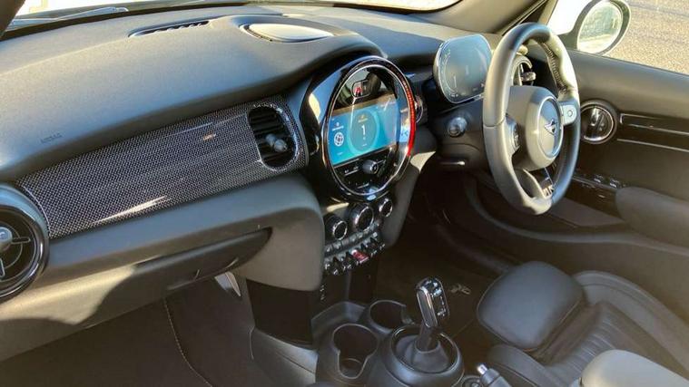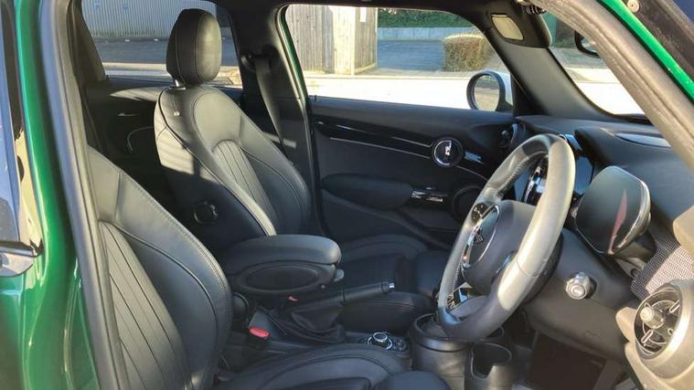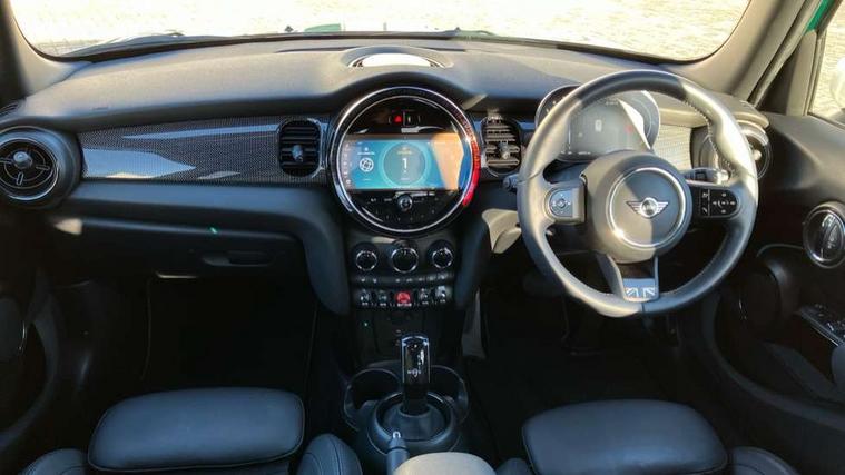 Apple CarPlay, Automatic start/stop function with brake energy recuperation, Compatible mobile phone bluetooth with audio streaming, Electro-mechanical speed dependant steering assistance, Flexible car sharing preparation, MINI Driving Modes - centre toggle switch to control driving setting (sport, mid and green), Mini E-call, MINI TeleServices, On board computer, Rear park distance control, Service interval indicator, Double Vanos system, Fully variable valve control, Gear change indicator display, High precision injection, Performance Control, Steptronic transmission with double clutch, 8.8" touchscreen with LED ring, FM tuner and DAB digital radio, 3rd brake light, Automatic headlight activation switch, Body colour fuel filler cap, Chrome line exterior - radiator grille bars, tailgate handle, lower front grille grating and rear central fog-light, Dynamic brake lights, Electric front+rear windows, Heated rear window, Heated windscreen washer jets, Metal door sill strips with MINI imprint, Model logo Cooper on right of tailgate, Rain sensor window wipers, Rear fog lights, Rear LED lights with union jack design, Rear side wing doors, Rear window wiper, Side scuttle panel with integrated indicator, Sun/heat protection glass, White indicator lenses, 12V Accessory socket in centre console, 3 seat bench in 2nd row, 4 lashing eyes in luggage compartment, 60/40 split folding rear seat, Anthracite headliner including grab handles and clothes hooks, Carbon black colour line - Knee roll and door armrest, Chrome interior highlights, Chrome line interior - air vents, gear lever base, door handles and speakers in doors, Cupholders, Front and rear head restraints, Front and rear isofix with front passenger airbag deactivation, Front and rear velour floor mats, Glove compartment, Height and length steering column adjustment, Interior lighting with 12 different colours across the dashboard, underneath door bezel with illuminated laser-engraved design on central display, Leatherette gearshift lever and handbrake gaiters, LED reading lights, vanity mirror lights, front foot well light and spotlight on front seats, Mechanical seat adjustment - forward/back & backrest for front seats and driver seat height adjust, MINI yours badge on exterior pillar, Multifunction steering wheel, Single front passenger seat, Storage compartments in doors, Sunvisors with vanity mirrors, Walknappa leather steering wheel with grey seam and MINI Yours badge on Piano Black lower steering wheel spoke, 3 point seatbelts on all five seats, 6 Airbags - front, side, head and seat belt tensioners, Anti-lock braking system (ABS), Child locks on rear doors, DSC - Dynamic Stability Control, Front and rear disc brakes, Hill start assist, Single tone fanfare horn, Tyre pressure monitoring system, Alarm system with tilt sensor, monitoring doors, bonnet interior and tailgate, Electronic vehicle immobiliser, Start/stop toggle with keyless go, Tool kit,
