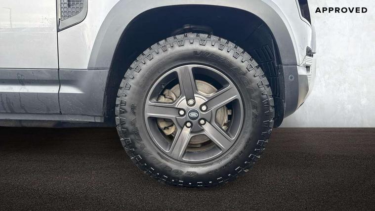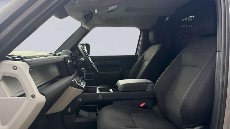 Customer Configurable Autolock, 11.4" touchscreen, 360 parking aid, 3D Surround Camera with 360 View, 180 Rear View, Front Traffic Detection, Forward Vehicle Guidance, Tow Hitch Assist and clear sight Ground View, Brake Hold, Driver condition monitor, Electric power assisted steering (EPAS), Lane keep assist, Less wireless charger, Low traction launch, Pivi pro connected, Traffic sign recognition adaptive speed limiter, Trip computer, Tyre pressure monitor, Wade Sensing, Android Auto, Apple CarPlay, DAB Radio (Digital Audio Broadcasting), Sound system with 140W and 4 speakers, Alpine lights, Assisted tailgate, Automatic headlights and rain sensitive front wipers, Centre high mounted stop light, Electric heated/power fold door mirrors with approach lights and auto dimming driver side, Electric windows with one touch open/close and anti-trap, Exterior signage panel, Follow me home lighting, Heated rear window with timer, Heated windscreen, LED tail light, Privacy glass, Puddle lights, Rear fog lights, Rear wash wiper, Side-hinged tailgate, Standard roof, Standard tread plates, 40:20:40 fixed rear seats, 8 way heated semi powered front seats with manual headrest, Additional lashing points, Cabin lighting, Carpet mats, Dual zone climate control, Durable rubber cabin flooring, Fabric upholstery, Footwell lights, Full height bulkhead behind row 1 seats, Glovebox storage, High sided rubber mats, Loadspace cover, Loadspace hooks, Loadspace rubber mat, Lockable and illuminated underfloor storage compartment (x1 under boot floor), Manual adjustable steering column, Overhead stowage for sunglasses, Rear centre headrest, Rear reading light, Sunvisors with illuminated vanity mirrors, Twin front cupholders, Upgraded loadspace LED lighting, Online pack - Defender with data plan, Brake pad wear indicator, Electronic traction control, Emergency braking, Front airbags, with passenger seat occupant detector, Power operated child locks, Remote for (e-Call, Optimised assistance call, InControl app, Climate, beep and flash and door), Seat belt reminder, Intrusion sensor, Locking wheel nuts, 8 speed automatic transmission, ABS and EBA, All wheel drive, CBC - (Cornering brake control), Coil suspension system, Dynamic stability control, Electronic brake force distribution, Electronic park brake, Gradient acceleration control, Hill Descent Control, Hill start assist, Particulate filter (DPF), Push button start, Roll stability control, Trailer stability assist, Twin speed transfer box (high/low range),