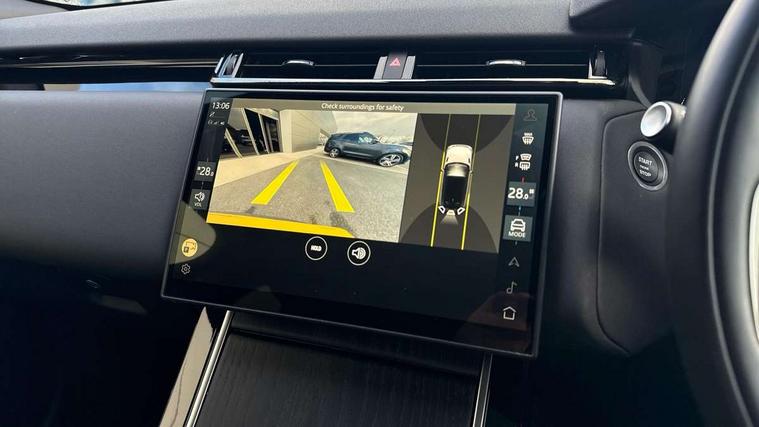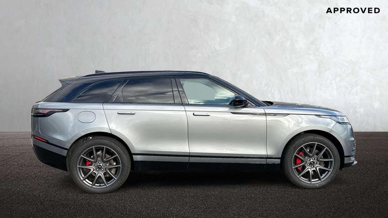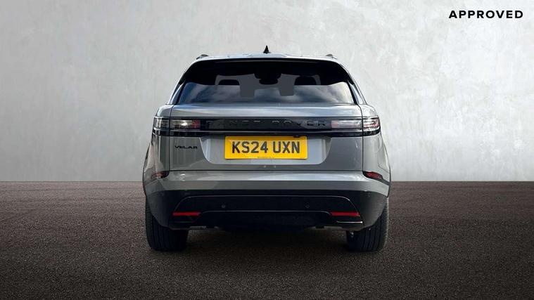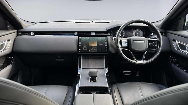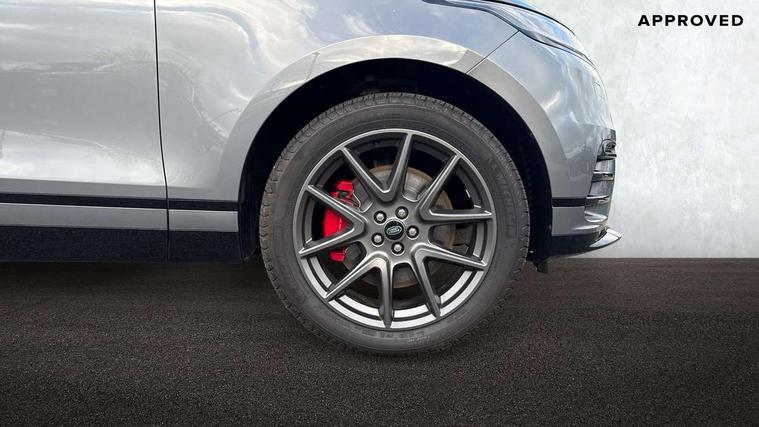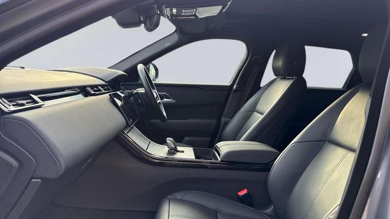 Android Auto, Apple CarPlay, Blind spot assist, Bluetooth connectivity, Brake pad wear indicator warning light, Driver condition monitor, eCall emergency call system, Front and rear parking aid, InControl remote, Land Rover InControl apps, Lane keep assist, Pivi pro with connected navigation, Rear traffic monitor, Service indicator, Speed proportional electronic power assisted steering (EPAS), Traffic sign recognition with adaptive speed limiter, Trip computer, Voice control system, Wireless device charging, 7kw on board charger, 8 speed automatic transmission, AC/DC charging, Adaptive dynamics, All terrain progress control, Coil suspension system, Home charging cable, Open differential with torque vectoring by braking, Public charging cable, Single speed transfer box, DAB radio, Steering wheel mounted controls, 3rd brake light, Acoustic laminated windscreen, Auto dimming interior rear view mirror, Auto high beam assist, Automatic headlamp levelling, Automatic headlights, Body coloured bumpers, Boot protection plate, Electric windows with one touch open/close and anti trap, Flush deployable exterior door handles, Follow me home headlights, Heated rear window with timer, Heated washer jets, Heated windscreen, LED headlights with signature DRL, Metal front tread plates, Metal load space scuff plates, Power fold, auto-dimming, heated door mirrors with memory and approach lights, Rain sensor windscreen wipers, Rear animated directional indicators, Rear fog lights, Rear side wing doors, Rear wash/wipe, Tailgate/boot lid spoiler, Trailer stability assist, Velar badge, 14 way electrically adjustable front seats with driver's memory function, 3 seat bench in 2nd row, Ambient lighting, Bright metal pedals, Carpet mats, Driver/passenger sunvisors with illuminated vanity mirrors, Ebony morzine headlining, Electrically adjustable steering column, Heated steering wheel, Isofix system on outer rear seats, Loadspace cover, Overhead lighting console, Overhead stowage for sunglasses, Passive front headrests, Rear air vents, Rear centre headrest, Single front passenger seat, Twin front cupholders, Twin sliding front centre armrest, Online pack with data plan - Velar, Power socket pack 2 - Velar, 380mm front brakes and 325mm rear brakes, 3x3 point rear seatbelts, Anti-lock braking system (ABS), Cornering brake control, Curtain airbags, Customer configurable autolock, Door side intrusion beams, Driver airbag, DSC - Dynamic Stability Control, Electronic brake force distribution, Electronic parking brake, Electronic traction control, Emergency braking, Front and rear seatbelt reminder, Hill descent control, Hill launch assist, Low traction launch, Passenger airbag, Power operated child locks, Rear airbags, Roll stability control, Side airbags, Tyre pressure monitoring system (TPMS), Unpainted brake calipers, Global lock and unlock switch on driver door, Immobiliser, Intrusion sensor, Keyless entry, Lock only switch on front passenger door, Locking wheel nuts, Perimetric alarm, Remote central locking, All season tyres,
