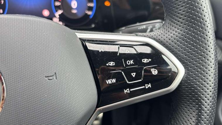 Adaptive cruise control (ACC) with speed limiter and front assist (reacting to vehicles pedestrians and cyclists), Car2X communication, Digital cockpit pro - 10.25" high resolution TFT dash display screen with customizable menus and information, Driver alert system, Dynamic road sign display, eCall - Emergency call service for SOS calls to emergency response, Lane assist, Mobile phone interface with wireless inductive charging function, Multifunction camera for distance control, PAS, Speedo, rev counter, electronic odometer, trip, service interval display, exterior temperature and fuel gauge, Start/Stop function, USB-C ports in the front and rear centre console with increased charging performance, Warning buzzer and light for front seatbelts unfastened, Wireless app connect, Petrol Particulate Filter, XDS electronic differential lock for improved traction and handling, Premium USB cable in choice of either Apple or Android smartphone compatibility, Auto dimming rear view mirror, Automatic headlamp activation with Coming home and Leaving home feature, Automatic headlights, Body colour door handles, Body colour door mirrors with integrated indicators, Body colour rear roof spoiler, Electrically heated and adjustable door mirrors with memory feature, Front and rear electric windows, Heat insulating glass windscreen, Heated rear windscreen, High level 3rd brake light, Highway light, LED License plate illumination, R Line body coloured bumpers, Rain sensor, Rear fog light on one side and reversing lights on both sides, Rear lights incorporating LED technology, Rear side wing doors, Rear tinted glass 65% light absorbing from B pillar backwards, Rear windscreen washer and wiper with interval delay, Welcome light, 12V socket in front centre console, 12V socket in luggage compartment, 3 rear head restraints, 3 seat bench in 2nd row, Ambient lighting - Customisable 30 colour ambient lighting, Ambient lighting, exterior illuminated styling elements at the sides, Black roof lining, Brushed stainless steel pedals, Chrome plated surround to electric mirror button, window switch and air vent surrounds, Drivers and front passengers sun visors with vanity mirrors, Front + rear carpet mats in recycled material, Front centre armrest with storage compartment, Front cupholders x 2, Front passenger seat, Front reading lights x 2 incorporating LED technology, Front seat lumbar support adjuster, Front sports seats, Glovebox, Height adjustable front seats, Height and reach adjustable steering wheel, Isofix child seat preparation for 2 rear child seats and front passenger seat, Luggage compartment lighting, R Line door and side trim panel, R Line front seats integrated head restraints, R-Line leather wrapped multi function sports heated steering wheel, Removable luggage compartment cover, Sardegna cloth upholstery with front and outer rear seats Art Velour inner sides of bolsters, Split folding backrest with centre armrest and unsplit rear seat bench, Titanium black instrument panel, Woven fabric storage compartments in front and rear doors, 3 point height adj front seatbelts + pretensioners, 3 rear three point seatbelts, ABS, Child locks on rear doors, Driver and front passenger airbag with front passenger airbag deactivation, Drivers and front passengers safety optimised head restraints, Electronic parking brake with auto hold, ESC (Electronic Stability Control), Extended pedestrian protection measures, Front and rear passengers curtain airbag system including front side airbags, Front centre airbag, Front disc brakes, Front side airbags with curtain airbags, Rear disc brakes, Two tone horn, Tyre pressure monitoring system, Alarm with interior protection and deactivation via infotainment system, Electronic engine immobiliser, Carbon grey decorative inserts in dash and front door trim panels, High gloss black centre console, Space and weight saver spare wheel,