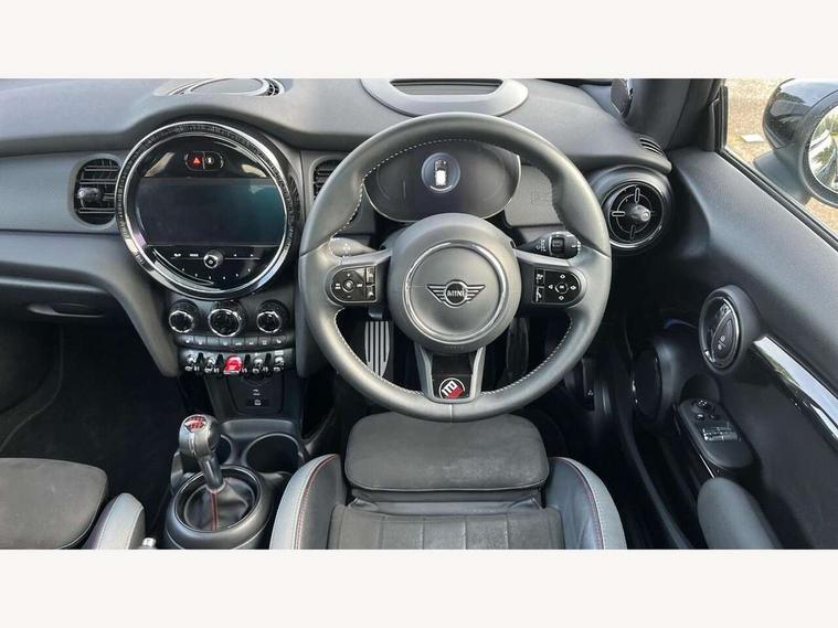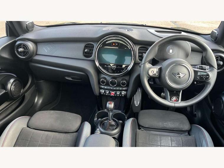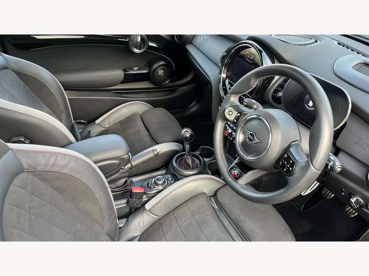 Apple CarPlay, Automatic start/stop function with brake energy recuperation, Compatible mobile phone bluetooth with audio streaming, Electro-mechanical speed dependant steering assistance, Flexible car sharing preparation, Instrument cluster, Mini E-call, MINI TeleServices, On board computer, Service interval indicator, 6 speed manual transmission, Double Vanos system, Fully variable valve control, High precision injection, Performance Control, Sport suspension, FM tuner and DAB digital radio, 1 To 6 B-Pillar and trunk badge, 1 To 6 centre running bonnet stripe, 1 To 6 door entry sills, 1 To 6 exterior striping geometrie, 1 To 6 one of 999 lettering on the left of the steering wheel and panoramic sunroof, 1 To 6 side scuttle with piano black accent, 3rd brake light, Automatic headlight activation switch, Bespoke 1 To 6 badging on the C-pillar, Body colour roof and mirror caps, Bonnet scoop, Darkened rear glass, Dynamic brake lights, Electric front windows, Heated rear window, Heated windscreen washer jets, JCW Aerodynamic kit - Front and rear bumpers with sporty JCW styling and part-painted side sills with MINI John Cooper Works door sill finishers, John Cooper Works rear spoiler, LED headlight with closed ring and daytime driving lights, Metallic paint, Rain sensor window wipers, Rear fog lights, Rear LED lights with union jack design, Rear window wiper, Side scuttle panel with integrated indicator, Sun/heat protection glass, Waistline finisher in Piano black, White indicator lenses, 1 To 6 3D printed cover in passenger side, 1 To 6 badge on lower spoke nappa leather sports steering wheel, 1 To 6 floormat piercing, 1 To 6 interior striping geometrie/badge, 12V Accessory socket in centre console, 2 seat bench in 2nd row, 4 lashing eyes in luggage compartment, 60/40 split folding rear seat, Ambient lighting and the glowing bezel surrounding on the central instrument, Anthracite headliner including grab handles and clothes hooks, Carbon black colour line - Knee roll and door armrest, Chrome interior highlights, Cupholders, Dinamica/Leather upholstery with JCW sport seats, Edition is rounded off by special key caps in the 1 To 6 logo design, Front and rear isofix with front passenger airbag deactivation, Front floor mats in velour, Glove compartment, Height and length steering column adjustment, Integrated headrests, adjustable thigh support for seats, JCW 1 To 6 manual SZ stick shift, Leatherette gearshift lever and handbrake gaiters, LED reading lights, vanity mirror lights, front foot well light and spotlight on front seats, Mechanical seat adjustment - forward/back & backrest for front seats and driver seat height adjust, Multifunction steering wheel, Passenger seat height adjuster, Red accent in cockpit, Rubberised stainless steel pedals, Single front passenger seat, Storage compartments in doors, Storage pocket on back of front seats, Sunvisors with vanity mirrors, Piano black exterior pack - JCW, Premium plus pack - Hatchback JCW, 3 point seatbelts on all four seats, 6 Airbags - front, side, head and seat belt tensioners, Anti-lock braking system (ABS), DSC - Dynamic Stability Control, Front and rear disc brakes, Red brake callipers with John Cooper Works logo, Single tone fanfare horn, Tyre pressure monitoring system, Alarm system with tilt sensor, monitoring doors, bonnet interior and tailgate, Electronic vehicle immobiliser, Start/stop toggle with keyless go, Piano black interior trim, 1 To 6 wheel cap, 18" John Cooper Works circuit spoke alloy wheels in jet black, Tool kit, Tyre repair kit,
