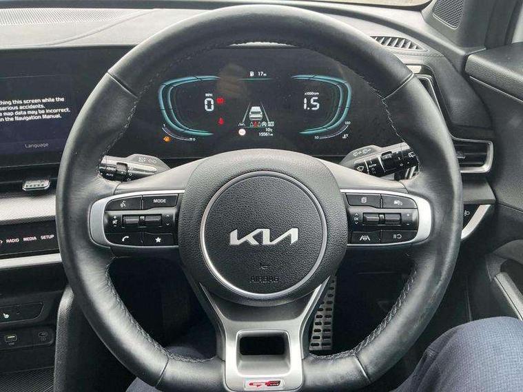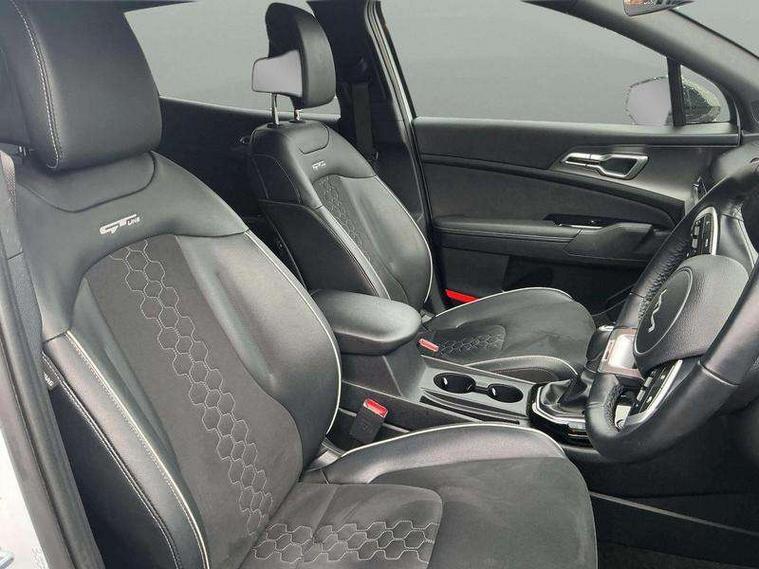 12.3" Touchscreen navigation system, 2 rear USB-C ports, 4.2" driver display screen, Apple car play/Android Auto, Cruise control + speed limiter, Drive mode selector, Driver attention warning, E-call, Emergency stop signalling system, Forward collision avoidance assist (FCA) - city/pedestrian/cyclist/junction covering, Front and rear parking sensors, Intelligent speed limit assist, Kia Connect (UVO), Lane Following Assist (LFA), Lane keep assist, Low washer fluid warning, Motor driven power steering, Rear view monitor, Reversing camera system integrated into centre fascia screen, Tailgate, Trip computer, Windscreen washer level indicator, 1x USB-C port in front, 6 speaker audio system, Bluetooth audio streaming, DAB Radio with MP3, Steering wheel mounted audio controls, USB C type charging ports on centre console, USB port for connection of a media device, All round electric windows with drivers and front passenger auto up/down function, Auto dimming rear view mirror, Automatic headlight control system, Automatic window defogger, Black and body coloured bumpers, Body colour exterior door handles, Body colour radiator upper garnish and door garnish, Electrically adjustable/heated/folding door mirrors with LED indicators, Front and rear chrome skid plates, Gloss black door mirrors, Gloss black radiator grille, Gloss black side sill and wheel arch body mouldings, Glossy black roof rack, GT-Line exterior styling, Heated rear window, High beam assist, Interior electrochromic mirror, LED daytime running lights, LED front fog lamps, LED headlamps (low and high beam - MFR type), LED High mounted stop light, LED rear combination lamp, Rain sensing wipers with aero blades, Rear fog lamp, Rear privacy glass, Rear side wing doors, Rear spoiler, Rear wiper, Satin finished beltline, Silver window surround, Tinted rear glass, Trailer stability assist, 12V power socket in front centre fascia and luggage compartment, 2nd row personal lamps, 3 seat bench in 2nd row, 3 x passenger assist grips, 40/20/40 split folding rear seat, All-round height adjustable headrests, Alloy pedals, Automatic air conditioning, Black headlining, Centre console storage box, Cupholders in rear armrest, Door courtesy lamps, Drink holder at centre armrest, Driver and front passenger side sunvisors with illuminated vanity mirrors, Driver's seat manual height adjust, Drivers seat power lumbar support, Front and rear door storage, Front cabin, rear & luggage compartment lights, Front passenger's seat manual height adjustment, Front seat and rear pockets, Gear shift indicator, Glovebox illumination, GT-Line Interior Styling, Heated front seats, Heated steering wheel, ISOFIX Child seat top tethers and anchor fixings outer rear seats, Leather steering wheel, Luggage area load cover, Luggage area parcel shelf, Luggage board, Luggage compartment under floor storage, Luggage net with hooks, Manual adjust steering wheel, Metal paint interior door handles, Overhead console lamp, Rear air conditioning, Rear cabin light, Rear coat hooks, Single front passenger seat, Suede leather upholstery, Ventilation ducts to rear compartment, Active front headrests, All round 3-point seatbelts, Anti-lock braking system (ABS), Dual front side airbags, Dual horn, Dynamic brake control, Electronic parking brake with auto hold function, Electronic stability control with downhill brake control, Front passenger airbag cut-off switch, Front seatbelt pretensioners + load limiters, Height adjustable front seatbelts, Hill start assist control (HAC), Impact sensing auto door unlocking, Multi collision brake assist, Rear airbags, Rear door child safety locks, Rear seat alert system, Seatbelt reminder warning, Traction control, Twin curtain airbags, Twin front airbags, Tyre pressure monitoring system, Vehicle stability management, Customisable automatic door locking, Customisable automatic door unlocking, Door deadlocks, Engine Start/Stop Button with Smart Entry System, Locking wheel nuts, Smart key with motion sensor, Speed sensitive auto door locking, Thatcham category 2 security alarm and immobiliser, Visible vehicle identification number, Aluminium pattern finish centre fascia and door garnish, 19" GT-Line alloy wheels, Tyre mobility kit,