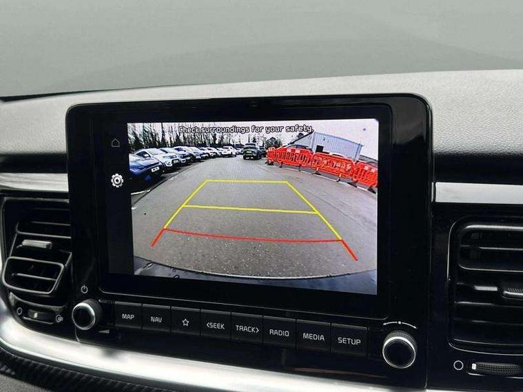 4.2" supervision colour cluster display, 8" touchscreen navigation, Apple car play/Android Auto with voice control, Blind spot collision avoidance rear, Blind spot collision warning, Drive mode selector, Electric power steering, Emergency call service, Emergency stop signalling system, External temperature display, Forward Collision-Avoidance Assist (FCA) - City/Pedestrian/Cyclist, Front parking sensors, Intelligent speed limit assist, Kia connected services featuring TomTom live, Lane keeping assist system (LKAS), Driver attention warning (DAW) and High beam assist (HBA), Rear parking sensor, Reversing camera system, Smart cruise control, Trip computer, UVO connect, Intelligent Stop and Go, Audio system with 6 speakers, Bluetooth with music streaming, Front USB port, Rear USB port, Steering wheel mounted controls, Aero blade type windshield wipers, All round electric windows with drivers auto up/down function, Auto dimming rear view mirror, Auto headlights, Automatic defog system, Automatic headlights control, Black side sill, door garnish and wheel arch trims, Black/body colour bumpers, Body coloured exterior door handles, Chrome side window trim, Electrically adjustable/heated/folding door mirrors with LED indicators, Front and rear silver skid plates, Gloss black door mirrors with matt black lower housing, GT-Line body kit, Headlight levelling device, Heated rear window, High gloss black and satin radiator grille, LED Bi-function projection headlights with static bending, LED daytime running lights, LED front fog lights, LED rear combination lights, Privacy glass - Rear windows and tailgate, Rain sensing front wipers, Rear fog lights, Rear side wing doors, Rear wash/wipe, Roof coloured rear spoiler with high mounted braking light, Roof rails, Shark fin antenna, Solar windshield glass, Speed variable front wipers, Tinted glass, Welcome and follow-me home light functionality, Windscreen Washer Level Warning, 12V power point front, 3 seat bench in 2nd row, 60/40 split folding rear seat, Air filter, All-round height adjustable headrests, Aluminium pedals, Automatic air conditioning, Centre armrest storage box, Centre console with cupholders, D-Cut perforated leather trimmed steering wheel, Dash illumination dimmer switch, Driver's seat height adjuster, Dual Height Luggage Area Floor, Front and centre cabin lights, Front and rear door map pockets with bottle holder, Gear shift indicator, Glovebox illumination, GT-Line cloth/faux leather upholstery, Heated front seats, Heated steering wheel, ISOFIX Child seat top tethers and anchor fixings outer rear seats, Leather trimmed gearshift, Luggage area light, Luggage area parcel shelf, Luggage net, Luggage net with hooks, Overhead console lamp, Overhead console with sunglasses cases, Passenger front seatback pockets, Passenger seat height adjuster, Satin chrome interior door handles, Single front passenger seat, Sunvisors with vanity mirror illumination (Driver and front passenger), Tilt/telescopic adjustable steering wheel, ABS with Electronic Brakeforce Distribution (EBD) and Brake Assist System (BAS), All round 3-point seatbelts, Electronic stability control (ESC) and vehicle stability management (VSM), Front passenger airbag cut-off switch, Front seatbelt pretensioners + load limiters, Height adjustable front seatbelts, Hill start assist control (HAC), Impact sensing auto door unlocking, Manual child lock in rear doors, Rear seat Occupancy alert, Seatbelt reminder warning, Twin curtain airbags, Twin front airbags, Twin front side airbags, Tyre pressure monitoring system, Alarm system, Door deadlocks, Engine immobiliser, Locking wheel nuts, Smart key with engine start/stop button, Speed sensitive auto door locking, Visible vehicle identification number, High gloss black centre fascia, 17" GT-Line alloy wheels, Tyre mobility kit,