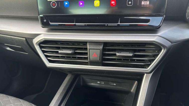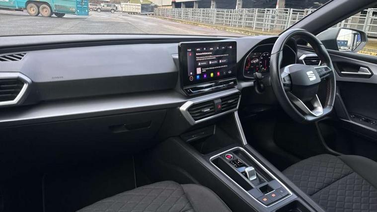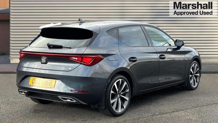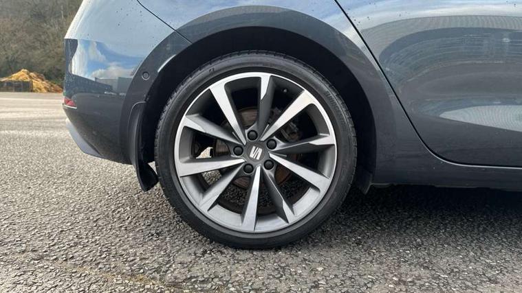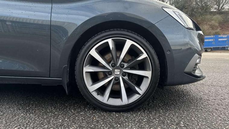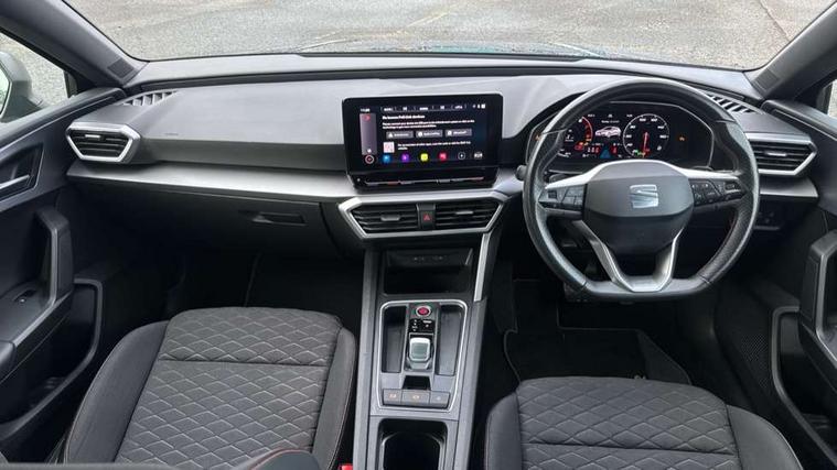 Digital cockpit, Front assist with forward collision warning braking reaction to vehicles, pedestrians and cyclists, Full Link Smartphone Integration with Mirror Link, Apple Car Play, Google Android Auto with USB Type C cable for Apple and Android compatibility, Lane keeping system, Lockable tailgate, Park assist (inc front/rear parking sensors), Rear view camera, RPM, trip computer, outside temp gauge, instrument light brightness, low fuel warning light, lights on reminder, gearshift indicator, Service interval indicator, Start/stop system with regenerative braking, Sports suspension, XDS electronic differential lock and dynamic traction support, Auxiliary input socket, Auto dimming rear view mirror, Body colour door handles, Body coloured bumpers, Cosmo grey exterior mirrors with integrated LED indicators, Dark tinted rear windows, Electric front/rear windows, Electrically adjustable, heated and folding door mirrors, Illuminated aluminium front door sill, LED front fog lamps with cornering function, LED Headlights with LED tail lights dynamic turn signals and high beam assist, Metallic paint, Rain sensing wipers, Rear fog lamps, Rear wash/wipe, Separate daytime running light with automatic headlight control and coming home feature, 12v power point in centre console, 60/40 split rear bench seat with armrest, Black interior roof, Cloth upholstery, Driver seat lumbar adjustment, Driver/passenger manual seat height adjustment, Dust/pollen filter, Flat bottomed perforated leather steering wheel with red stitching and FR logo and leather gear shift paddles, Folding boot cover, Front and rear reading lights X 4, Front centre armrest, Front passenger seat lumbar adjustment, Front seatback storage pockets, Height adjustable front and rear headrests and third rear headrest, Height/reach adjust steering wheel, Interior lighting with LED lighting in sunvisor, glovebox and rear headlining, ISOFIX points in outer rear seats with top tether anchorage points, Luggage tie-down hooks, Sunvisors with covered illuminated mirror, Three zone climate control, Wraparound lighting, Dynamic and Comfort pack - Leon FR First edition, Media system plus with navigation - Leon, Safety and Driving pack (L) - Leon, 3 point seatbelts on all rear seats, ABS, Brake control system - ESC and brake booster, Child proof door locks, Driver and front passenger airbags with front passenger airbag de-activation, front side, curtain, driver knee airbags, Electronic parking brake with auto hold, Front seatbelt pretensioners, Hill hold control, Seat belt reminder for front and rear seats, Tiredness recognition system, driver alert system, Tyre pressure monitoring system, Anti theft alarm system with interior monitoring in cab, backup horn and towing protection, KESSY Advanced - Keyless start, keyless entry with SAFELOCK, Locking wheel bolts, Wireless phone charging, Chrome interior detailing, 18" Performance machined alloy wheels with 92Y tyres, Tyre repair kit,