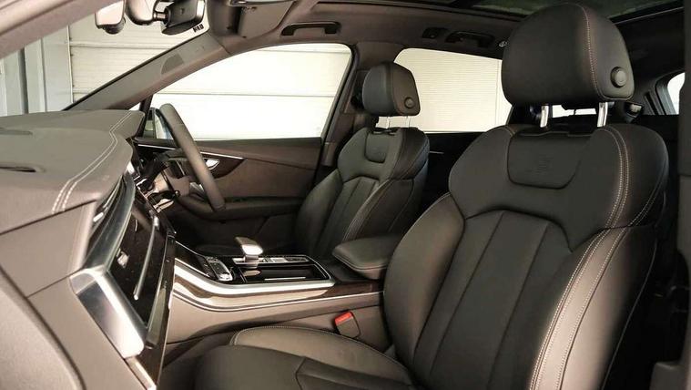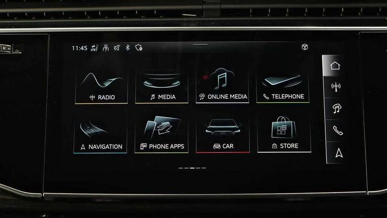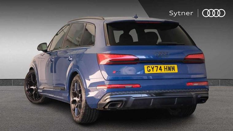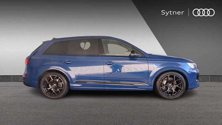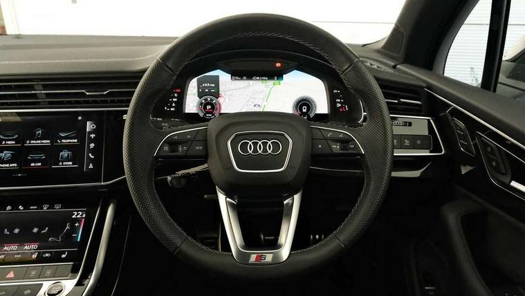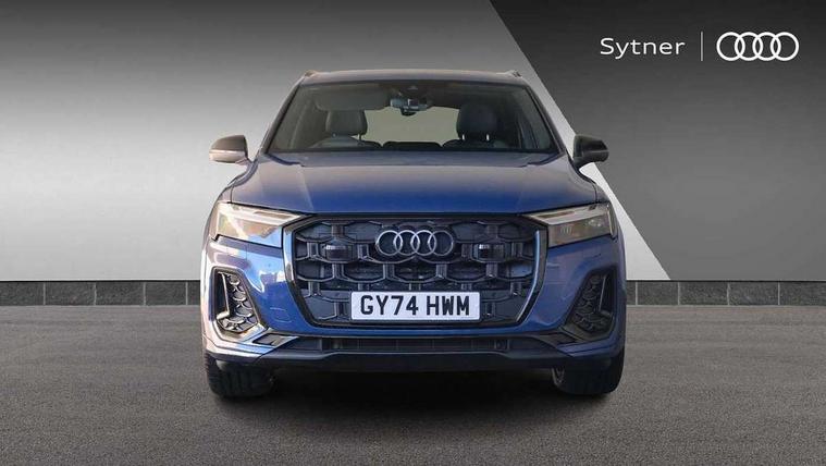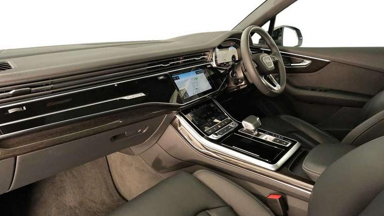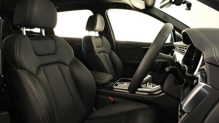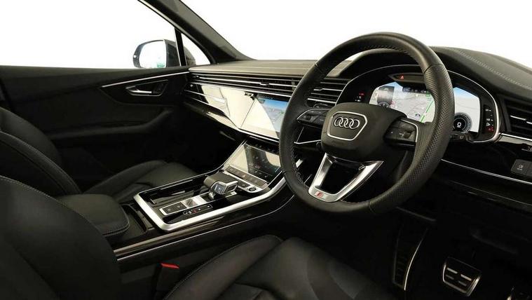 Audi connect safety and service (e-call), Audi connect with Amazon Alexa Integration, Audi drive select (Auto, Comfort, Dynamic, Efficiency, Individual, Off-road and All road), Audi phone box light with wireless charging, Audi virtual cockpit - 12.3" high-resolution LCD display with fully customisable instrument cluster, Bluetooth interface, Camera based traffic sign recognition, Electromechanical power steering, MMI navigation plus with MMI touch screens includes 10.1" and 8.6" screens with haptic feedback, Natural voice recognition, Operating buttons in Matte black, Parking system plus with 360 degree display (front, rear and side sensors) - acoustic and visual park assist system, Power operated tailgate, Rear view camera, Smartphone interface includes wireless Apple carplay/Android Auto, Start/stop system, 48V Mild hybrid technology, Adaptive air sports suspension, Quattro all wheel drive with self locking centre differential, Audi music interface - front 2 USB-C ports with charger and data functions, Audi sound system with 6 channel amplifier, 180 watt amplifying capacity and 10 loudspeakers including subwoofer, DAB digital radio module, Audi Beam uses LEDs to project S emblem with red rhombus onto the ground when opening the side doors (front/rear), Auto dimming frameless rear view mirror, Black exhausts, Black roof rails, Electrically adj heated/folding + automatically dimming exterior mirrors with memory + automatic kerb side function for passenger side exterior mirror, Heat insulating glass in windshield, Integrated LED indications in door mirrors, LED 3rd brake light, LED daytime running lights, LED rear tail lights, Loading edge protection in stainless steel, Matrix LED headlights with dynamic front and rear indicators, Privacy glass - dark tinted rear and rear side windows from B-pillar backwards, Rear side wing doors, Rear wiper, 2 seat bench in 3rd row, 2 zone automatic climate control, 3 seat bench in 2nd row, 7 seat layout with ISOFIX points for the front passenger seat and rear passenger seat, Black cloth headlining, Comfort front centre armrest, Electric adjustable front seat with 4 way lumbar support, driver memory functionality, Folding rear seats, Front head restraints, Front/rear floor mats, Heated front seats, Illuminated door sill trims with S logo, ISOFIX child seat mounting for front passenger seat and 2 outer rear seats with top tether child seat mounting for all 3 rear seats, LED interior ambient lighting, Luggage compartment cover, Luggage compartment sill protection in stainless steel, Rear head restraints, Single front passenger seat, Stainless steel pedals, Sunvisors with illuminated vanity mirrors, Black styling pack plus - Q7, 3 point seatbelts on all rear seats, Audi pre sense front, Child locks on rear doors, Convenience key with safelock and gesture tailgate, Driver and front passenger, front side and curtain airbags, Electromechanical parking brake, Electronic Stabilisation Control (ESC) including ABS, ASR and EDL, Extended pedestrian protection measures, Hill hold assist, Seatbelt reminder, Tyre pressure loss indicator, Warning triangle and first aid kit, Anti theft alarm with tow away protection, Anti-theft wheel bolts and wheel loosening detection, Keyless Go, Remote central locking, Polished oak trim with grey finish inlay, Tool kit, Tyre repair kit,