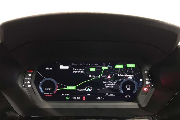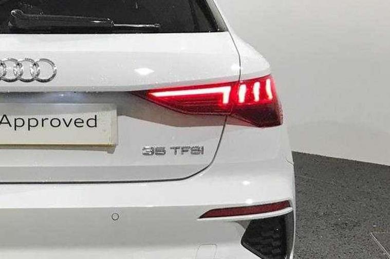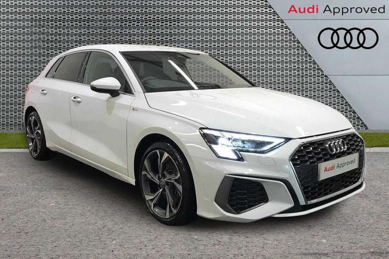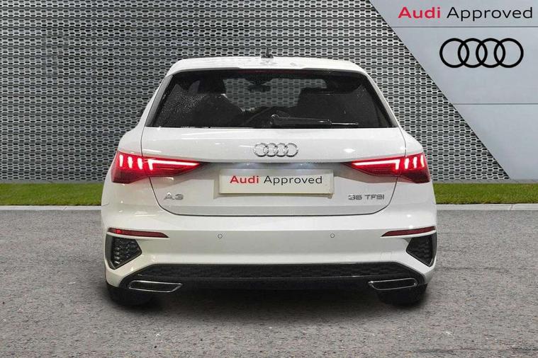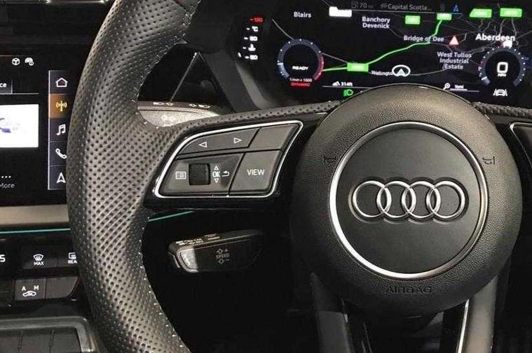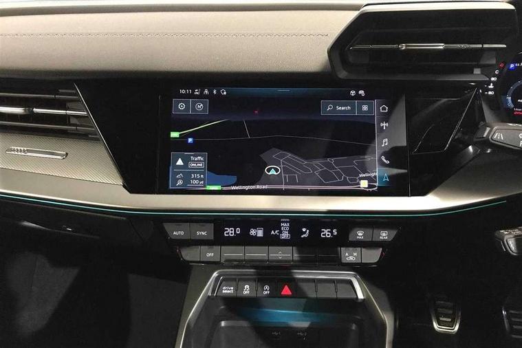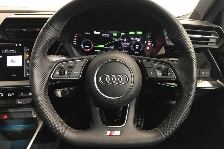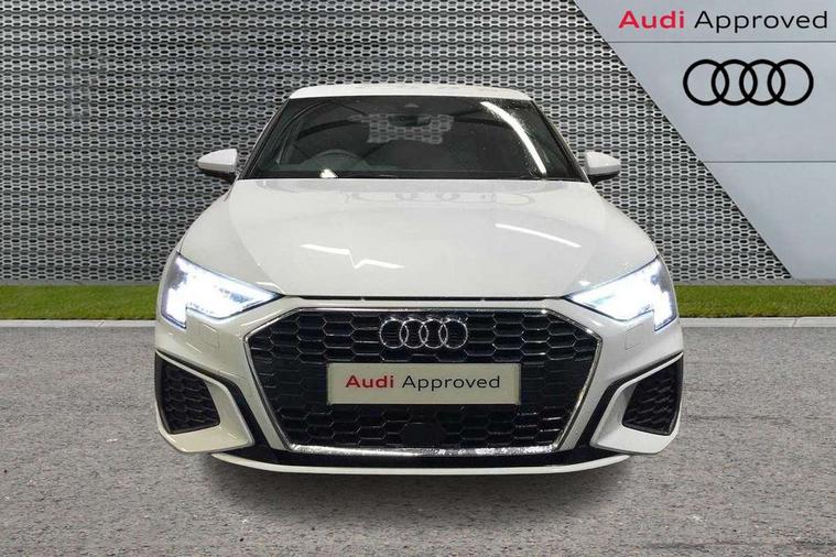 Audi drive select (Auto, Comfort, Dynamic, Efficiency and Individual), Audi smartphone interface, Audi Virtual Cockpit - 10.25" digital and colour instrument cluster, Automatic start/stop system with recuperation, Bluetooth interface, Collision avoidance assistant, Cruise control, e-Call (emergency call), Electromechanical power speed sensitive steering, Lane departure warning system, MMI Navigation Plus with high resolution 10.1" colour touch screen display, Rear parking sensors, Service indicator, Trip computer, Voice control system with natural language interaction, 2xUSB-C connection with data and charging functions, 6 passive loudspeakers, DAB Digital radio, 3rd brake light, Acoustic glass windscreen, Aluminium window trim, Auto dimming frameless rear view mirror, Electrically adjustable/heated/folding/auto dimming door mirrors with integrated LED indications + kerb view function for passenger side, Front electric windows, Illuminated aluminium inserts front door sills with S logo, LED daytime running lights, LED headlights with LED rear lights and dynamic rear indicators, Light and rain sensors, Privacy glass - dark tinted rear window, rear door and side windows, Rear electric windows, Rear side air outlets in grained matt black, Rear side wing doors, Rear wiper, S line bumpers, S roof spoiler, 12V socket and storage compartment in front centre console, 3 seat bench in 2nd row, 40/20/40 split folding rear seat bench with cupholder, Black cloth headlining, Dual zone electronic climate control, Front and rear centre armrest in leather, Front and rear headrests, Front/rear floor mats, Height and reach adjustable steering wheel, Illuminated vanity mirror, Interior lighting - glove compartment light and right hand side, Luggage compartment floor covering, Manual boot compartment lid, Manually adjustable front seats, Seat side bolsters, Single front passenger seat, Stainless steel pedals and front footrest in black, Twin leather upholstery with front sports seats S embossed logo, Aluminium interior elements pack - A3 Sportback, S line styling pack - A3 Sportback, 3x3 point rear seat belts, Audi pre sense front, Driver and front passenger airbag with passenger airbag deactivation, Electronic Stabilisation Control (ESC) including ABS, ASR and EDL, First aid kit with warning triangle and 2 safety vests, Front side airbags with head airbags and interaction airbag, Pre-sense front with pedestrian and cyclist detection, Seatbelt monitoring, Tyre pressure loss indicator, Anti theft alarm, Anti-theft wheel bolts, Immobiliser, Manual child locks, Remote control central locking, Accent surfaces in the dashboard and centre console in platinum grey silk effect paint finish, Dark spectrum aluminium inlays,
