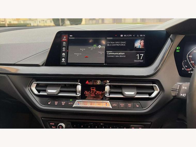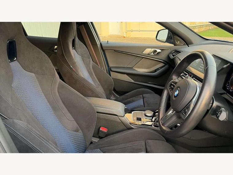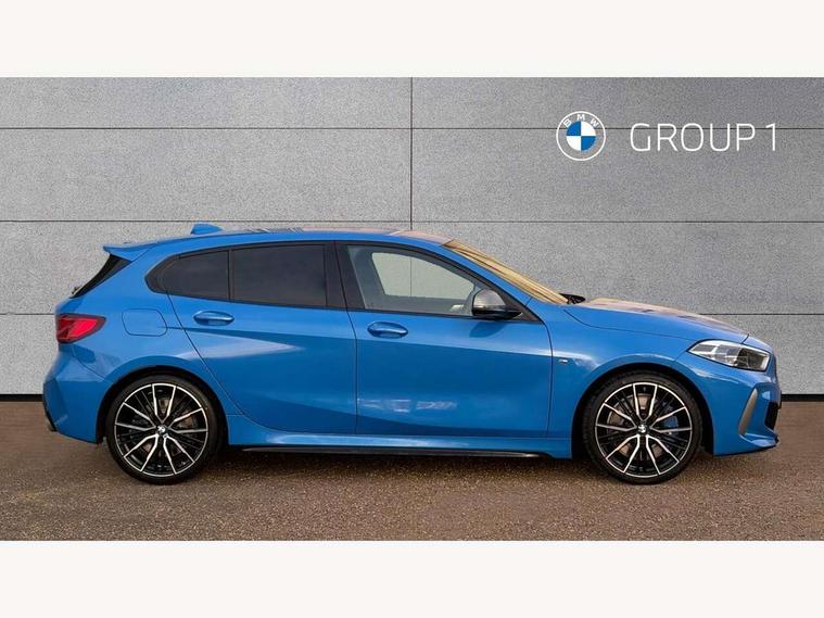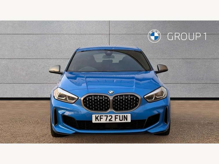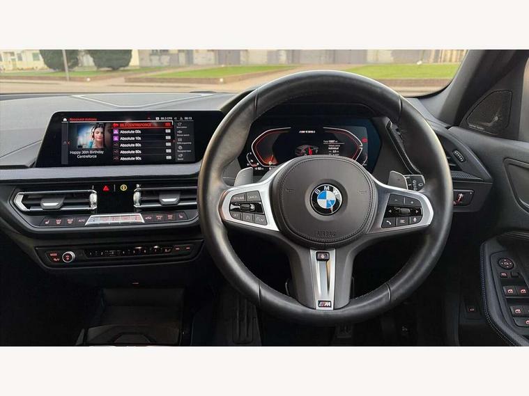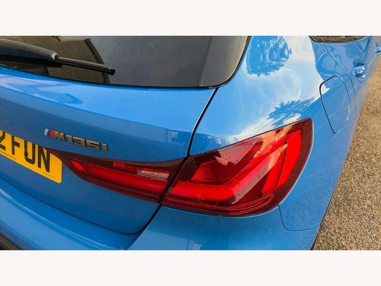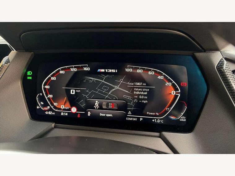 Active guard plus, Attentiveness assist, BMW ConnectedDrive online services, BMW Teleservices, Check Control warning system for monitoring of lights and door/luggage compartment open warning, Cruise control with brake assist, Eco pro mode, Electric power steering, Electro hydraulically controlled multi-plate clutch transfers drive to rear axle and with power take-off device located on the front differential., Energy efficient operating strategy, Front axle single joint with specific axle kinematics to minimise drive influences on steering + provide increased rigidity agile driving behaviour, Gearshift time display in manual mode, Integrated owners handbook, Lane departure warning system, M Sports steering with M135i xDrive specific settings, Oil sensor for level and grade, On board computer, Optimum shift indicator, Personal Profile, Pull away assistant, Rigidly mounted rear subframe - Multi link construction with separate spring / damper configuration and excellent driving characteristics, Speed limit Info including no-overtaking indicator, Speed limiter, Sporty fast gear shifting in sport mode, Aluminium lightweight construction, Anti roll bar front and rear, Balancer shaft, Double VANOS, Drive Performance Control, Eight speed sport automatic transmission with gearshift paddle switches, Electronic differential lock, Electronic selector lever, Engine cover with M performance designation, High precision injection, Larger fuel tank capacity (50 litres), Launch control, M135i specific heavily de-throttled engine intake air guide, M135i specific high-performance cooling package, M135i specific larger turbocharger with integrated divert-air valve, Petrol Particulate Filter, Twin tube gas filled shock absorbers with degressive characteristic curve, VALVETRONIC engine management, Variable, stepless and infinitely adjustable distribution of drive torque between the front and rear axles, xDrive intelligent all wheel drive with M135i specific reinforced components, DAB Digital radio, Auto dimming rear view mirror, Automatic headlight beam throw control, Automatic windscreen wipers and automatic headlight, Body colour door handles, Body colour roof trims, Cerium grey exterior mirror caps, Direction indicator side lights in exterior mirrors, Exhaust tailpipe, Cerium Grey with bevelled finish - twin, round 100mm, left and right split, Fading support, Folding side mirrors with auto dimming/folding wing mirrors with auto dimming, Follow me home headlights, Front and rear bumper system with replaceable deformation elements, Front and rear electric windows with open and close fingertip control, anti trap facility and comfort closing, Front door sill finishers with M135i designation, Green tinted heat protection glazing, Heated, electrically adjustable exterior mirror aspheric on driver side, convex on passenger side, High gloss shadowline window frame, Recess cover mirror frames and B/C pillar embelisher trim, High level third brake light, Integrated front windscreen with washer jets, Kidney grille frame in Cerium Grey with Mesh design, LED daytime running lights, LED eyebrow turn indicators, LED front fog lights, Lightweight engineering, M logo designation side in cerium grey, M Performance exhaust system with valve control and minimised exhaust back pressure, M Performance specific setup, M Sport spoiler, Matt black air guide grilles, Matt black wheel arch trim, Model designation on electric bootlid includes xDrive designation for M135i xDrive, Nearside reverse light in rear light cluster, Preparation for high beam assistant, Rear fog lights, Rear side wing doors, Rear window wiper, Reinforced crank drive, new pistons and adapted con rods, Shark fin antenna, Trailer stabilisation logic, Visible VIN plate, Welcome lighting, 12V power socket in front centre console with blanking plug, 3 rear seat head restraints, 3 seat bench in 2nd row, 3 spoke sports leather steering wheel with black leather and stitching, pearl chrome decorative finish, specific M Badge, Anthracite headlining, Black boot net with lashing eyes, Cargo function on 2nd seat row, Child seat ISOFIX attachment for two outer rear seats and front passenger seat with anchorage points, Conditioned based service, Driver and front passenger seat heating, Folding rear clothes hook, Four grab handles integrated in roof lining, Front and rear door pockets with bottle holders, Front and rear side armrest integrated into door trim, Front armrest, Front integrated head restraints, Front M sports seats, Glove compartment, Luggage compartment for bag hooks on left and right, foldable luggage compartment liner and four lashing eyelets, Manual adjust steering wheel, Multi-function controls for steering wheel, Single front passenger seat, Storage compartment in centre console, Sun visors with vanity mirrors and insert tab, Two front centre console cupholders, Two zone automatic air conditioning, Velour floor mats, Additional interior lighting pack - 1 Series M135i, BMW live cockpit professional pack- 1 Series, Connected pack professional - 1 Series, Interior lights pack - 1 Series, M Sport exterior styling aerodynamics pack - 1 Series 135i, 2 tone horn, 3 point seatbelts on all seats, front pyrotechnic belt tensioners, stopper and belt force limiters, rear coded belt buckles, Airbags - Front driver/passenger, front and rear curtain head protection, front side, manual deactivation of front passenger airbag, Anti lock braking system (ABS) with brake assist, BMW emergency call, Brake drying, Braking readiness, Child proof locking system in rear door, City braking function, Comfort modes, Cornering brake control, Crash sensor activating central locking release, hazard warning lights, fuel cut off, interior lighting + activation of safety battery terminal clamp, Driver and front passenger seat belt security check, Dynamic stability control + (DSC+), Dynamic Traction Control - DTC, Electrically operated hand brake including automatic hold function, Front and rear