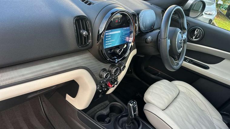 Active Guard incl speed limiting and lane departure functions with auto steering, and front collision warning with brake intervention, Automatic start/stop function with brake energy recuperation, Electro-mechanical speed dependant steering assistance, Instrument cluster, MINI Driving Modes - centre toggle switch to control driving setting (sport, mid and green), Mini E-call, MINI TeleServices, On board computer, Double Vanos system, Fully variable valve control, High precision injection, Performance Control, Steptronic sport transmission with double clutch and steering wheel paddles, FM tuner and DAB digital radio, 3rd brake light, Bonnet scoop, Chrome fuel filler cap, Day time driving lights, Dynamic brake lights, Electric windows, Heated rear window, Heated windscreen washer jets, LED fog lights, Metal door sill strips with Cooper S imprint, MINI yours exterior badge in C-Pillar, driver and passenger side, Model logo, Model logo on Tailgate, Rain sensor with auto headlights, Rear fog lights, Rear side wing doors, Rear window wiper, Side scuttle panel with integrated indicator, Split rear doors, Sun/heat protection glass, White indicator lenses, 12V socket in centre console, 3 seat bench in 2nd row, 360L luggage compartment capacity, 4 lashing eyes in luggage compartment, 40:20:40 split folding rear seats, Anthracite headlining with grab handles and clothes hooks, Chrome interior highlights, Colour line - Carbon black, Cupholders, English handbook, Front headrests, Glove compartment, Height and length steering column adjustment, Interior lighting with 12 basic colours selectable via toggle switch in roof, Isofix rear child seat preparation, Leather gearshift lever and handbrake gaiters, LED reading lights, vanity mirror lights, front foot well light and spotlight on front seats, MINI Yours fine walk nappa leather steering wheel with contrast stitching in silver and MINI Yours badge, Multifunction steering wheel, Rear headrests, Single front passenger seat, Storage compartments in doors, Sunvisors with vanity mirrors, Excitement pack - Countryman, Navigation plus pack - Countryman, 2 tone horn, 3 point seatbelts on all seats, 6 Airbags - front, side, head and seat belt tensioners, Anti-lock braking system (ABS), DSC - Dynamic Stability Control, Electronic handbrake, Front and rear disc brakes, Hill start assist, Manual rear child locks, Tyre pressure monitoring system, Alarm system with tilt sensor, monitoring doors, bonnet interior and tailgate, Auto drive away locking, Deadlocking function, Electronic vehicle immobiliser, Locking wheel bolts, Start/stop toggle with keyless go, Tool kit,